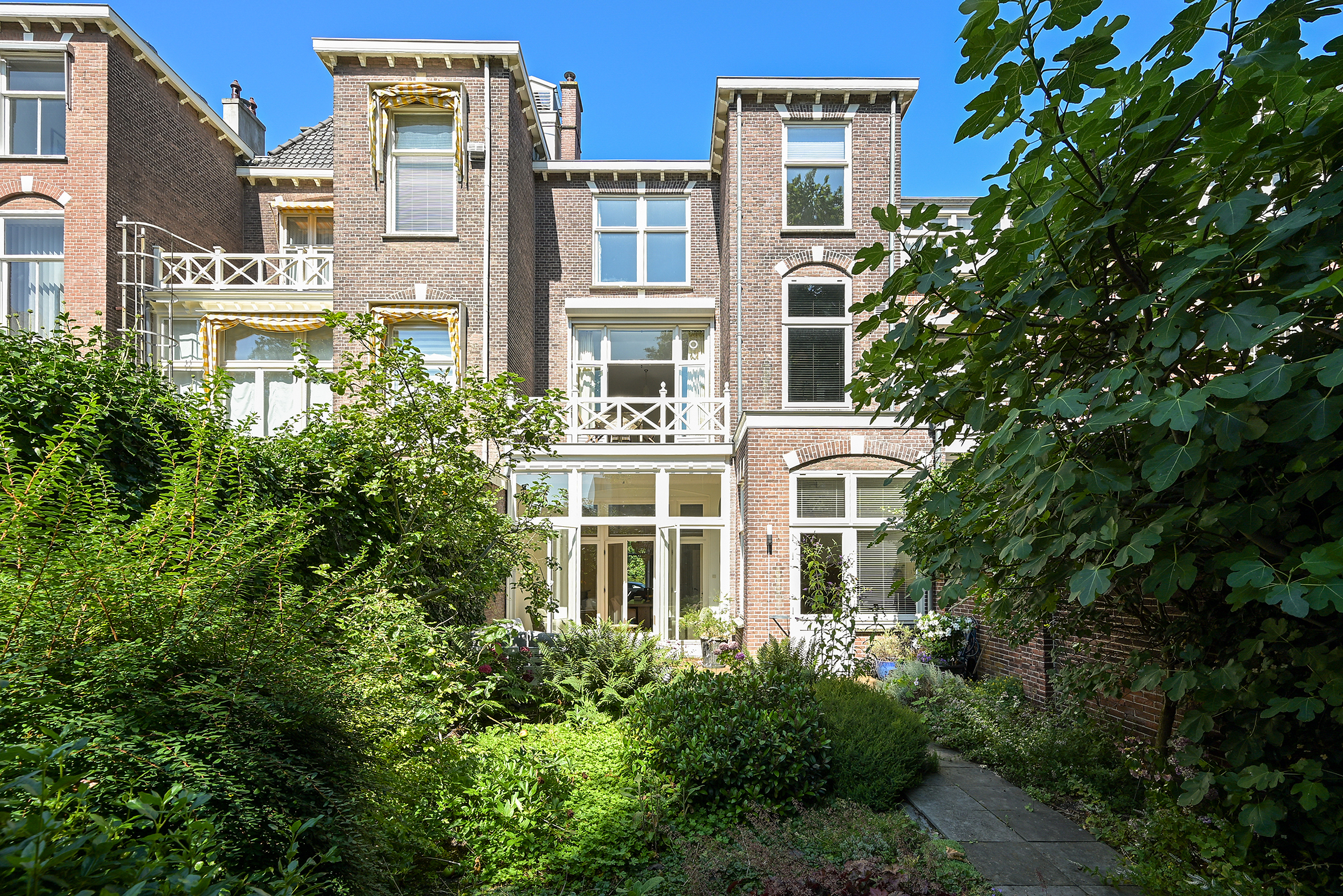 Imposing, well-maintained, and spacious (ca. 289m2) three storey townhouse featuring an unobstructed view from the front plus a secluded sunny back garden with separate back entrance.