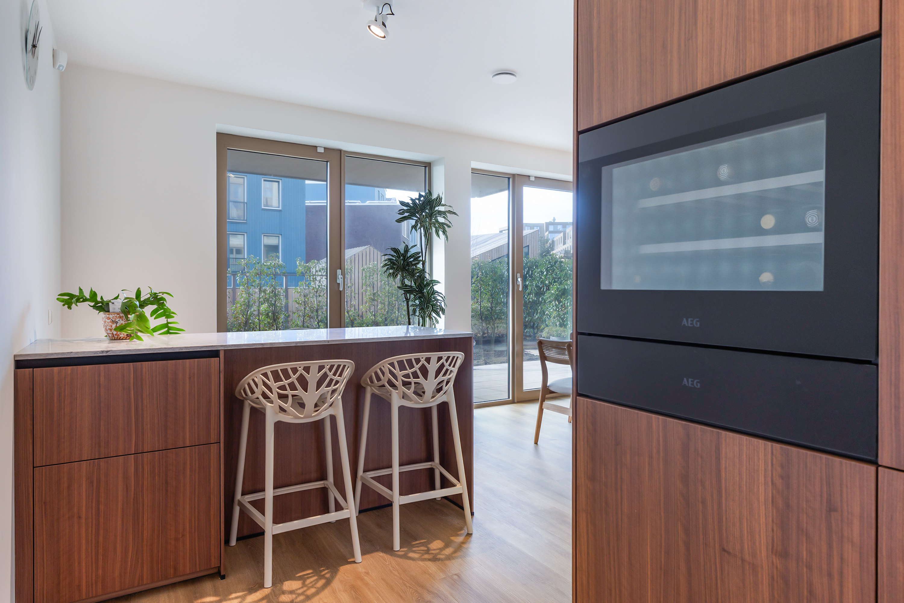 With 123 m² of living space and an unconventional, spacious layout, the apartment exudes refinement and comfort. All living areas are equipped with underfloor heating and cooling. The property is exceptionally energy-efficient and gas-free, benefitting from a heat pump and an advanced heat recovery system that even reuses warmth from shower water. Delivered in 2025, it boasts an A+++ energy label.
