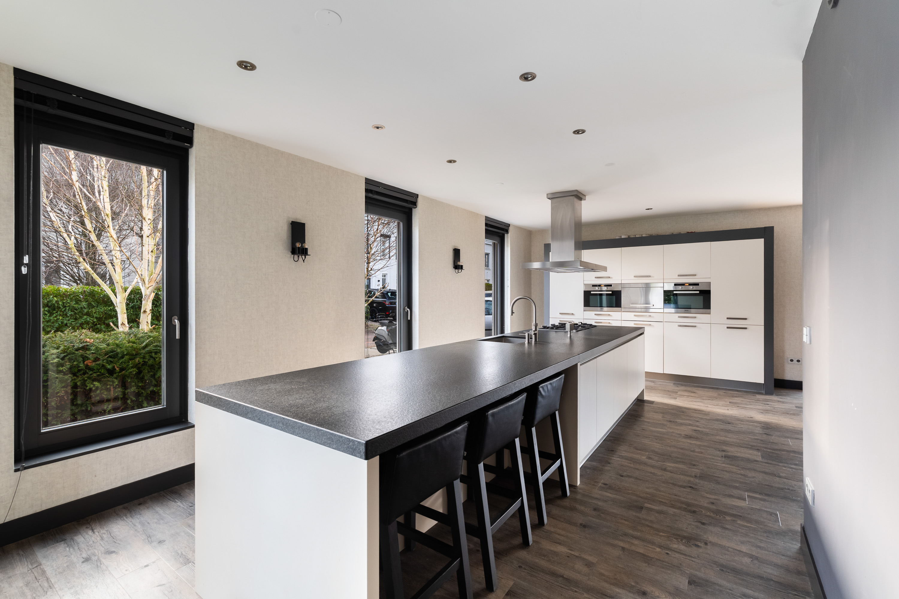In addition, the kitchen features a Quooker and a water purification system for drinking water. The entire house is fitted with a central water softening system.