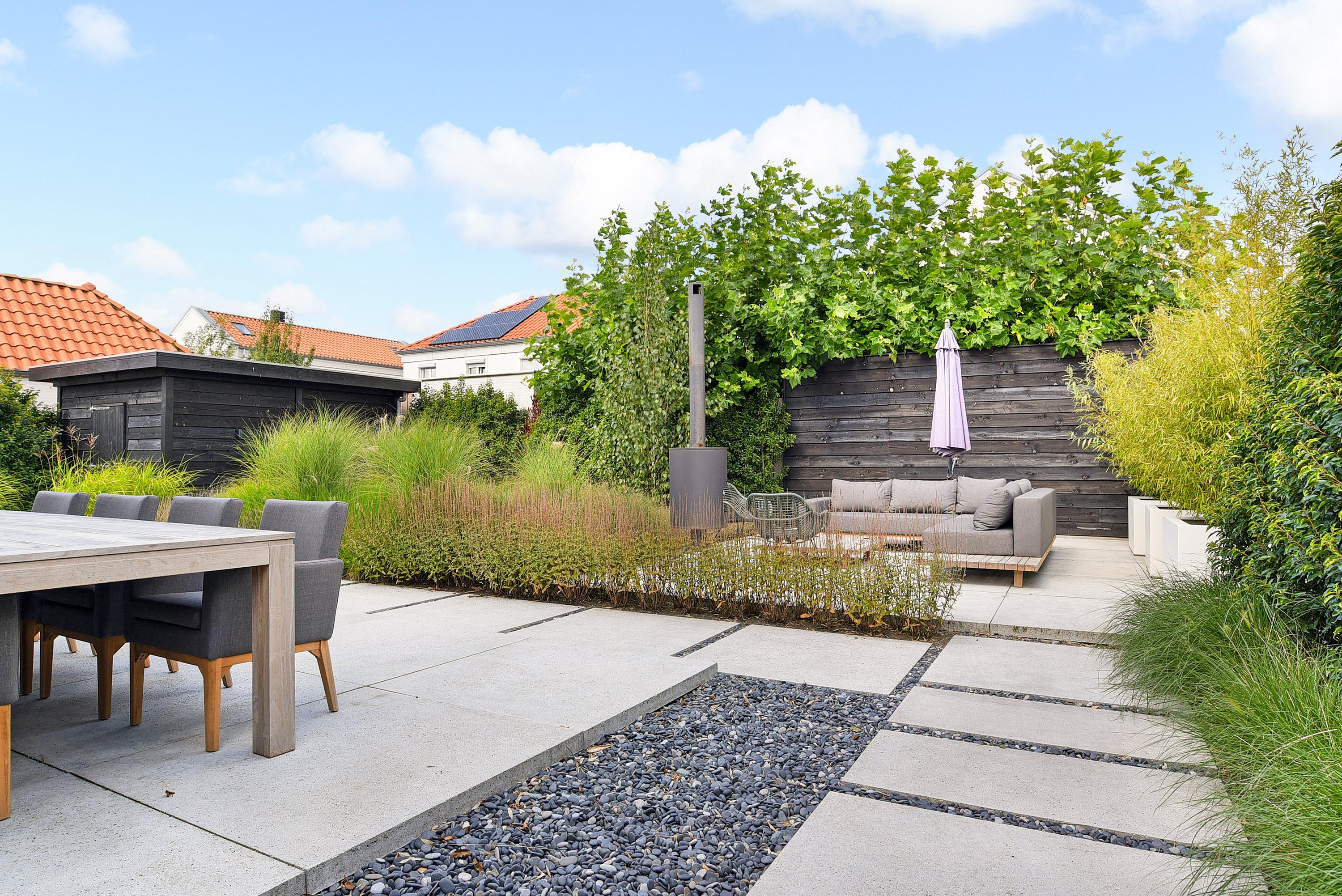 French doors provide access to the beautifully landscaped garden that surrounds the property. Multiple terraces, partly covered, allow you to choose sun or shade at any time of day. Mature greenery ensures optimal privacy.