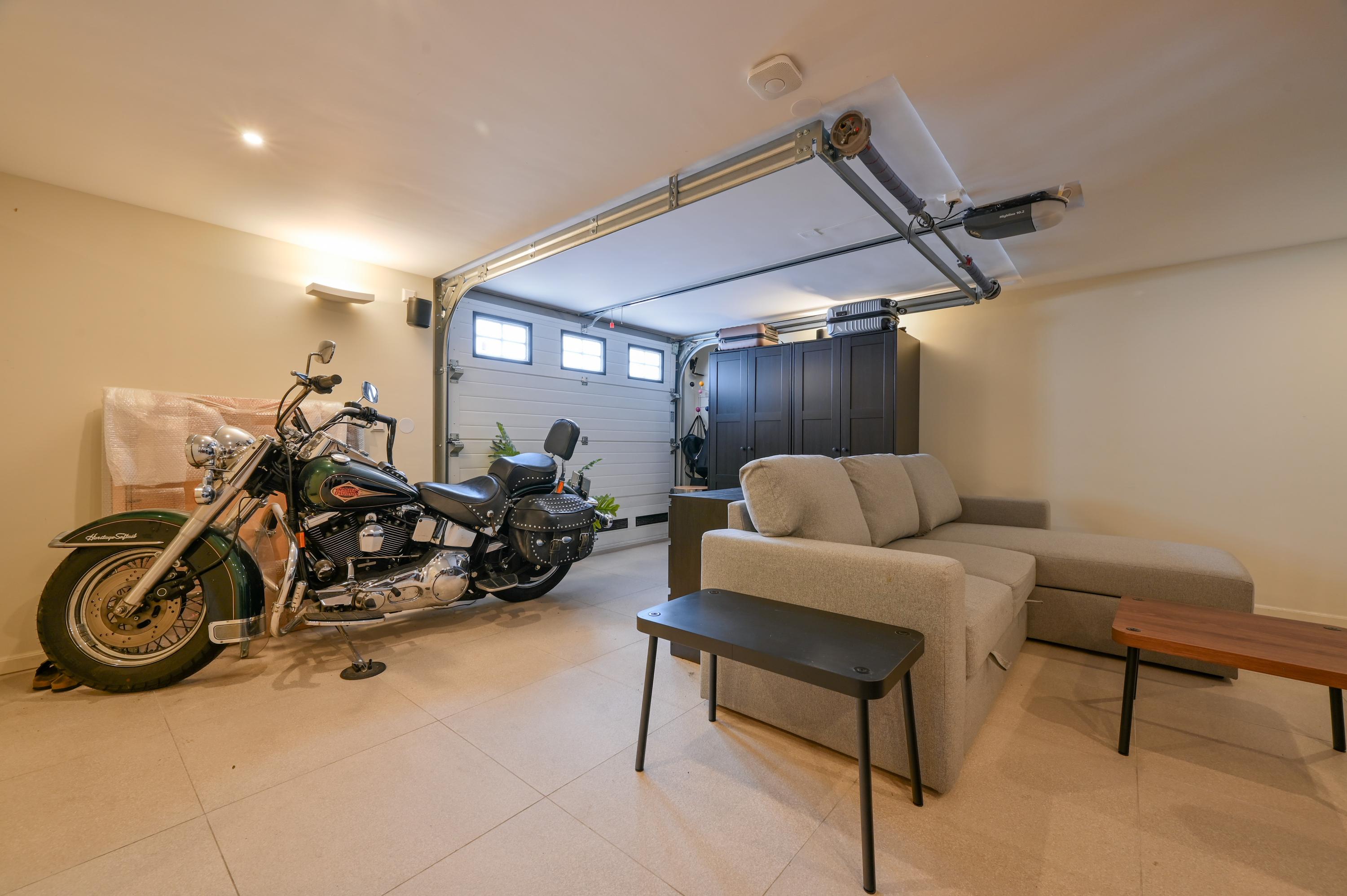 The garage is currently used as a studio; therefore, in deviation from the standard measurement guidelines, the square meters of auxiliary indoor space have been added to the living area.