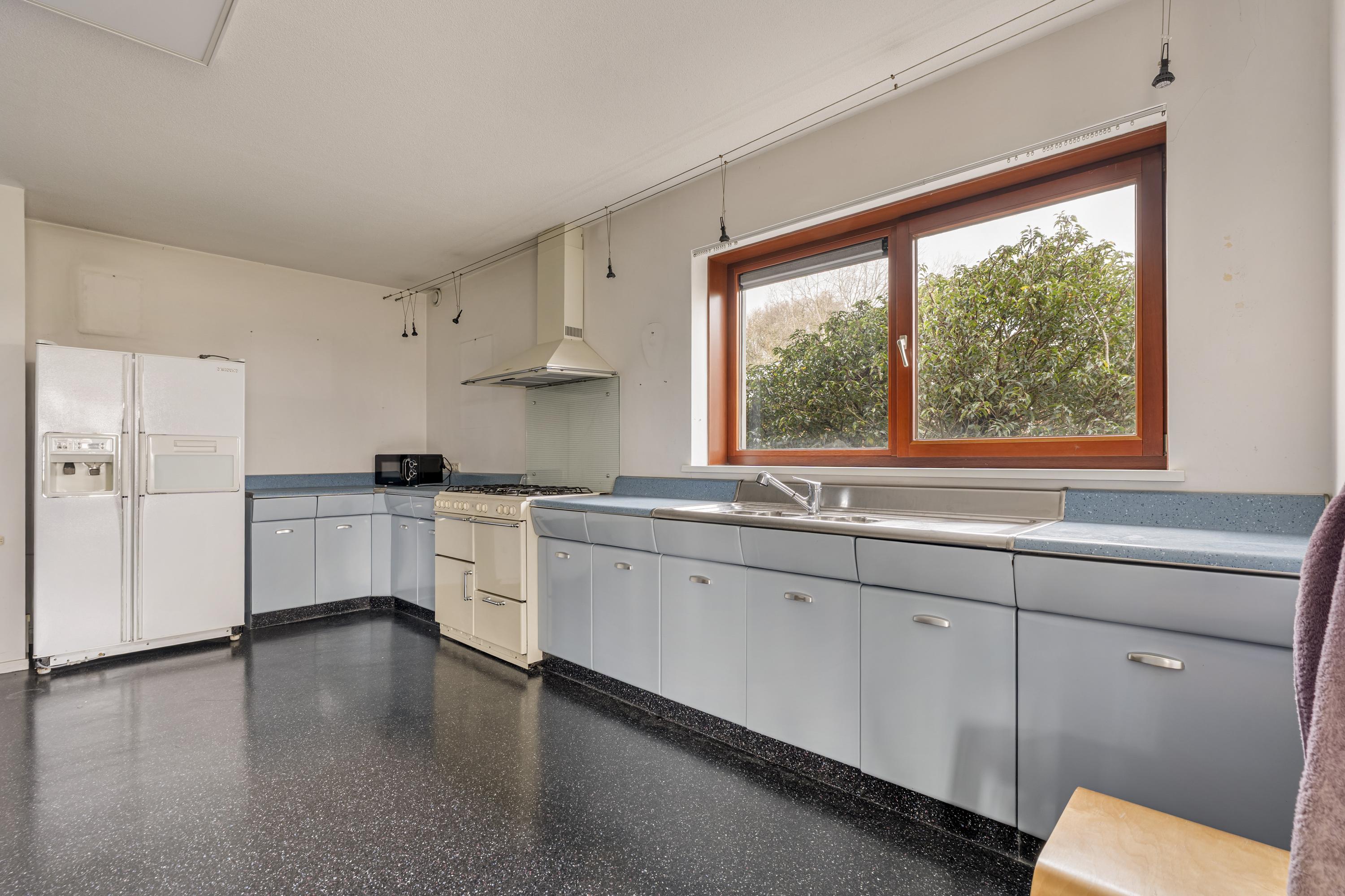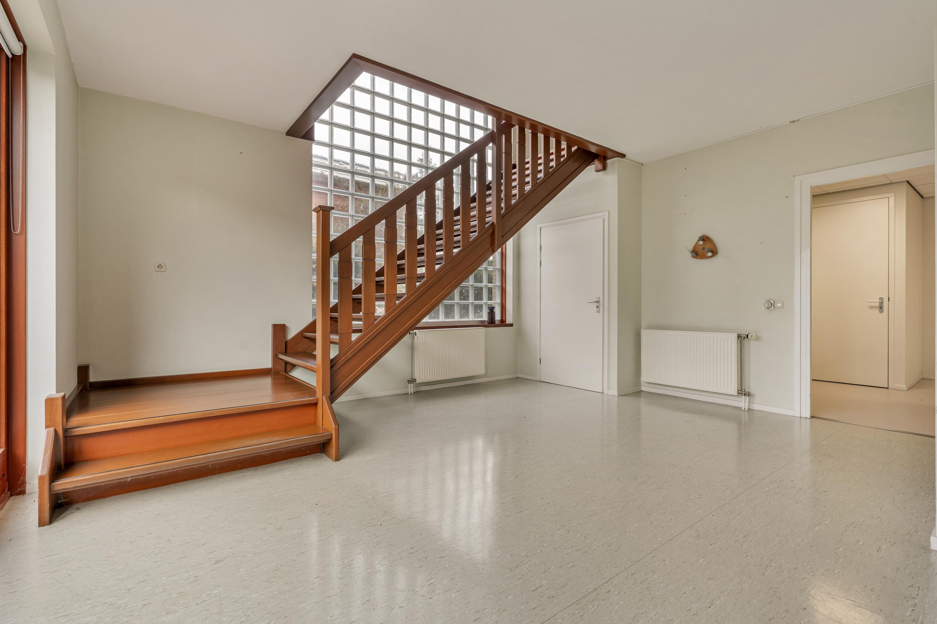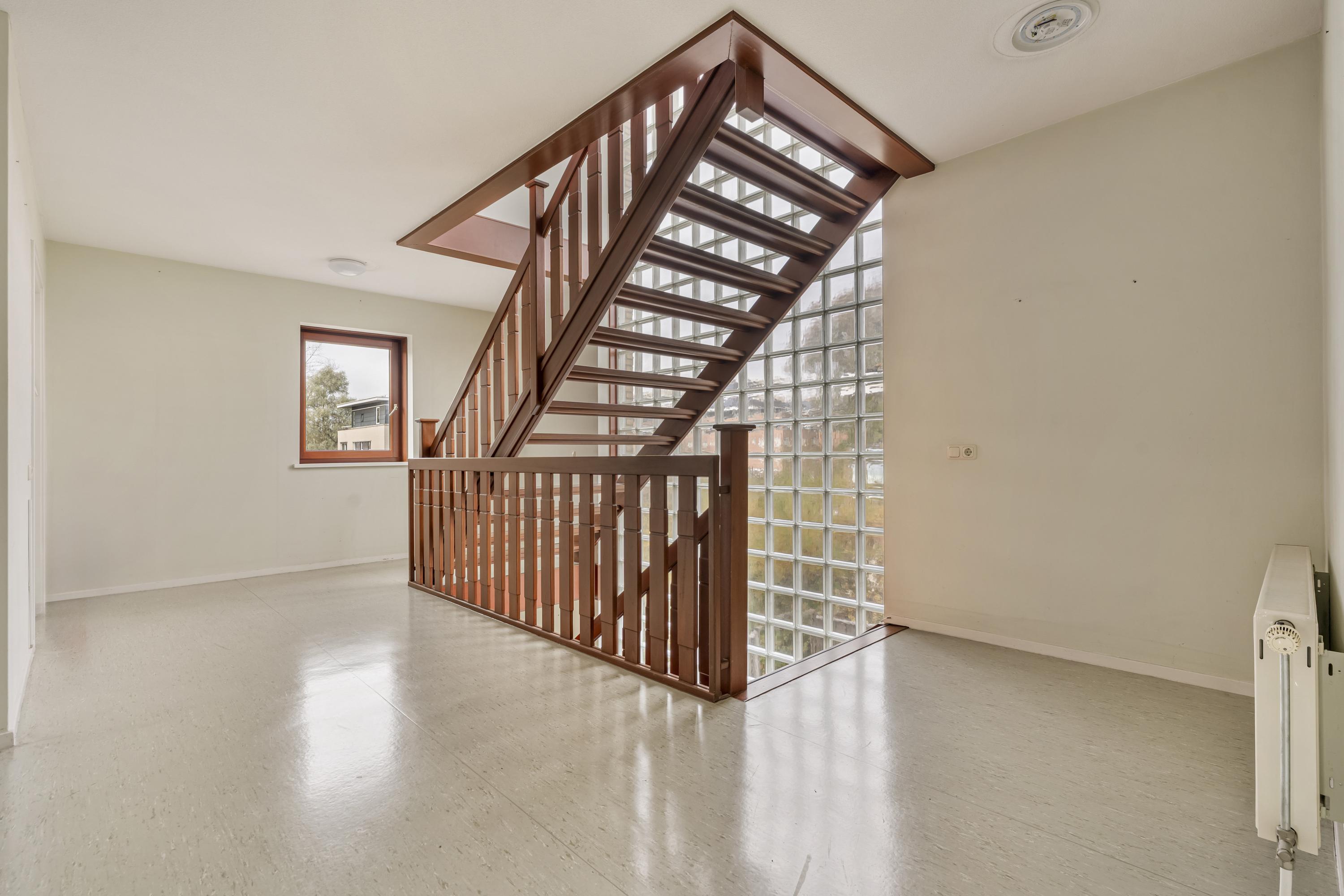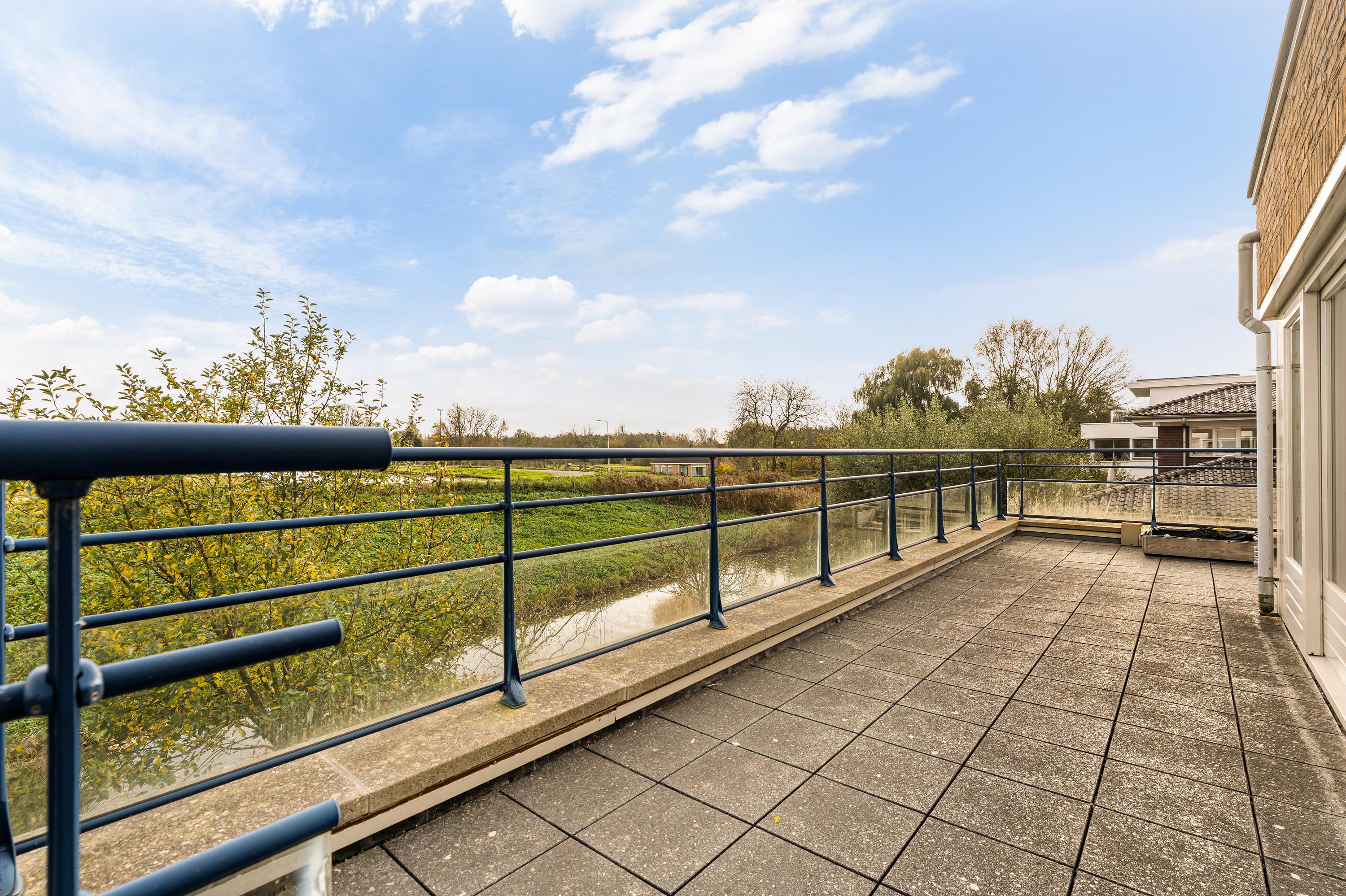 The first floor is accessed via a wide landing and offers three generous living areas. At the rear of the home is an exceptionally large room currently used as a living room, with an adjacent bright kitchen area. From this living floor you step directly onto the generous balcony, which can also be reached from the garden. From here, the view over the Middelpolder is truly spectacular.