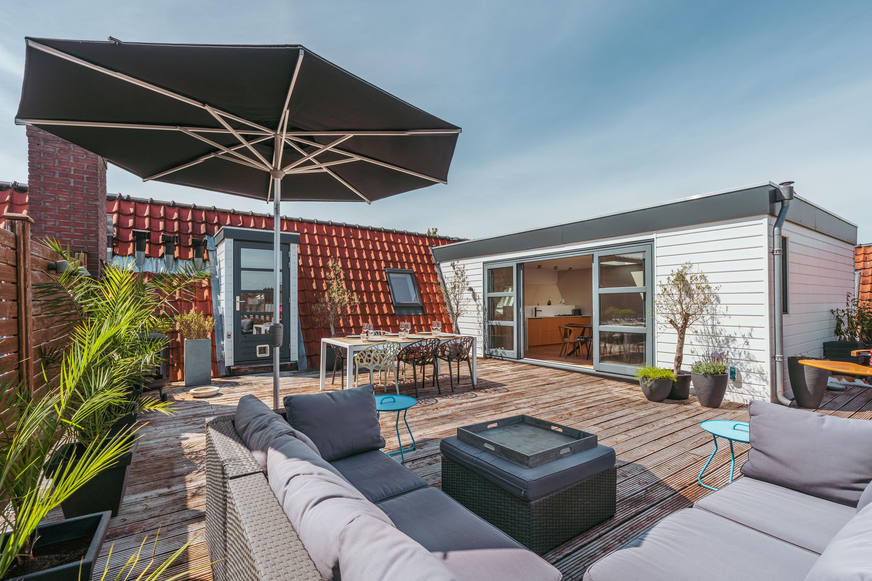 At this quiet location, just around the corner from the lively Beethovenstraat, you will find this stylish upper house full of light and character. Spread over three floors, this property offers approx. 334 m² of living comfort, with five spacious bedrooms, a generous living room with open kitchen and no fewer than four outdoor spaces – including an impressive 60 m² roof terrace.