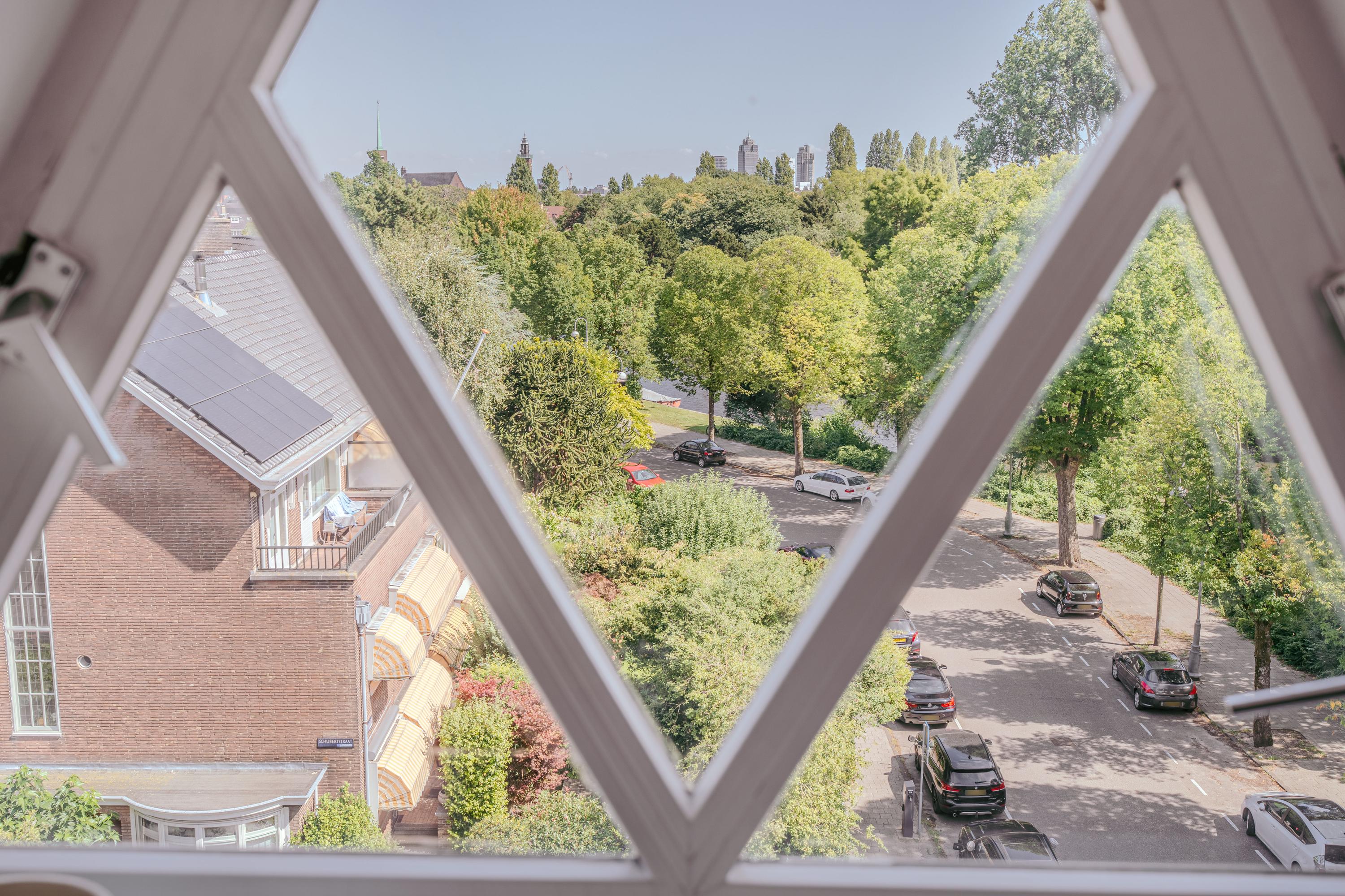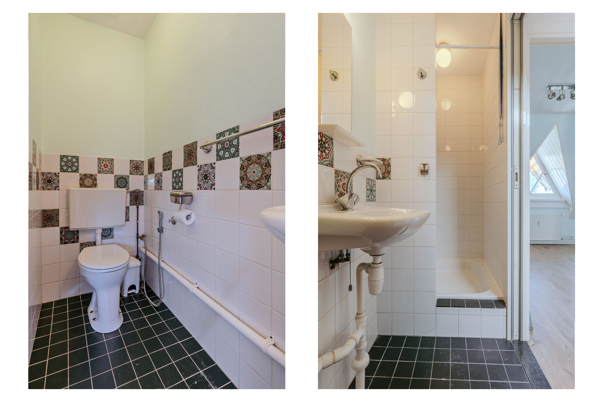Through the communal entrance, you reach the front door of the apartment on the third floor. From the spacious hallway, you walk directly into the centrally located open kitchen. This kitchen is equipped with an induction cooktop, extractor hood, sink, Quooker, ample storage space, and a convivial bar, making it the heart of the living floor. Adjoining the kitchen is the generous living room, a charming space with large windows and a characteristic bay window that allow abundant natural light and offer beautiful views over the water and the Beatrixpark. Two decorative fireplaces add further character to the room, while the built-in cabinets provide practical storage. The original stained-glass details in the doors highlight the authentic charm of the apartment. At both the front and rear are two spacious bedrooms, one ideally suited as a master bedroom and the other as a guest or study. The bathroom is practically designed with a bathtub, shower, and double washbasin. A separate toilet is located in the hallway.