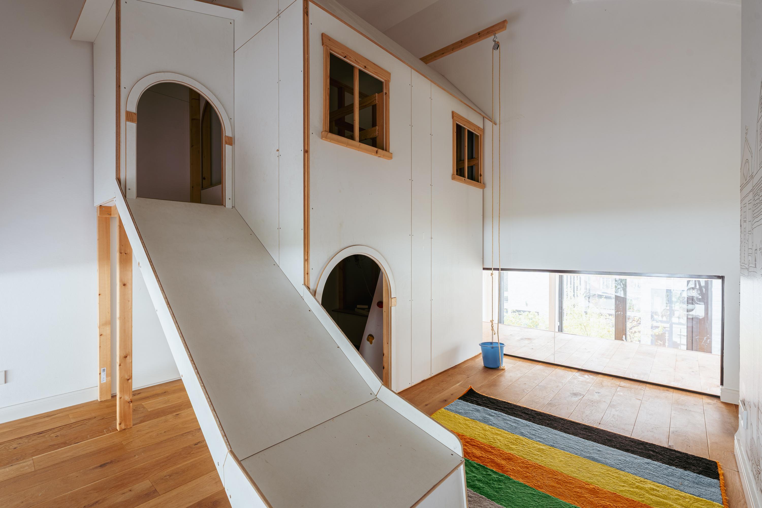 Via the staircase from the first floor, you reach a split-level area currently designed as a unique children’s play area with an open view of the living room below. This creative space is a true eye-catcher and highlights the family-friendly character of the home.