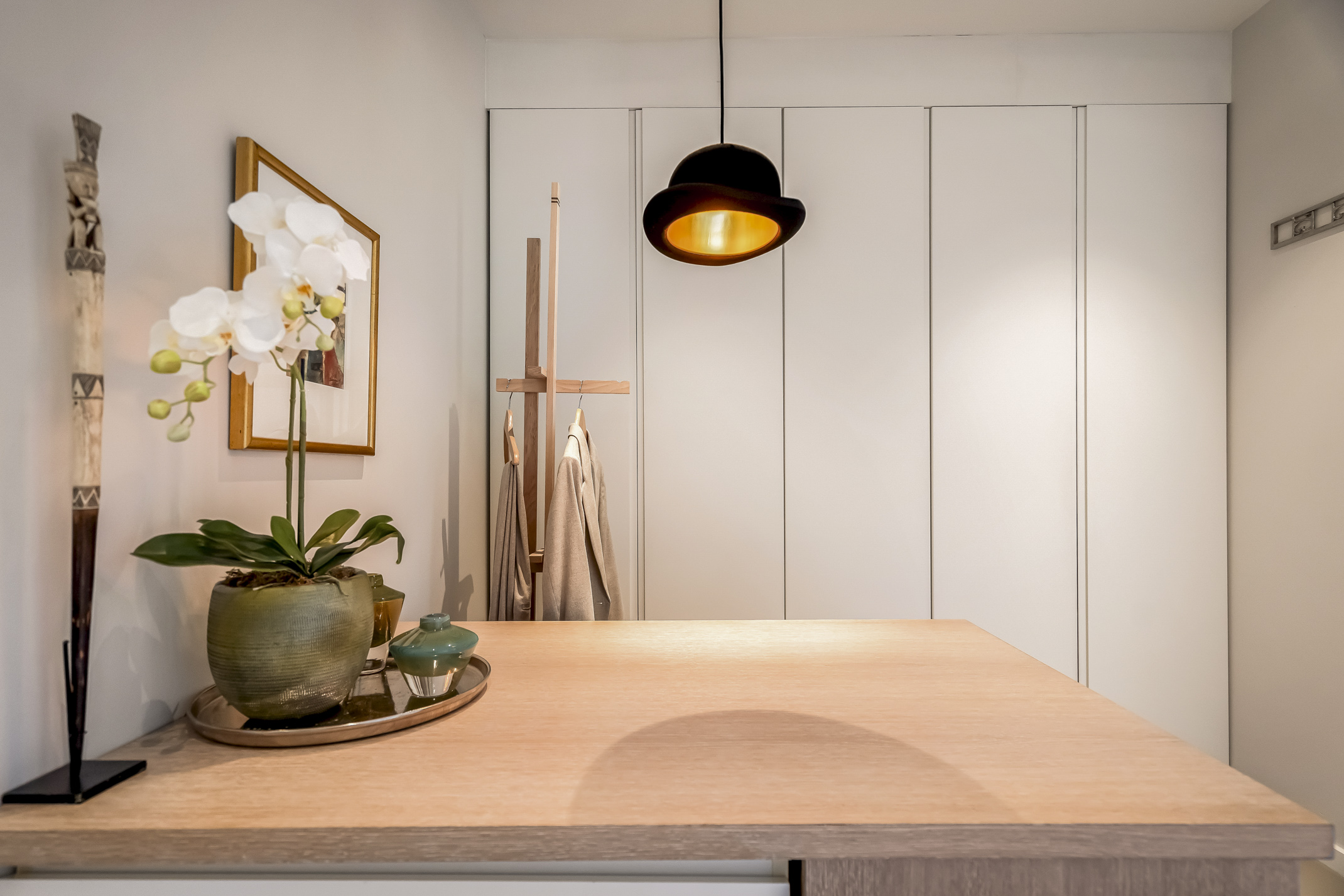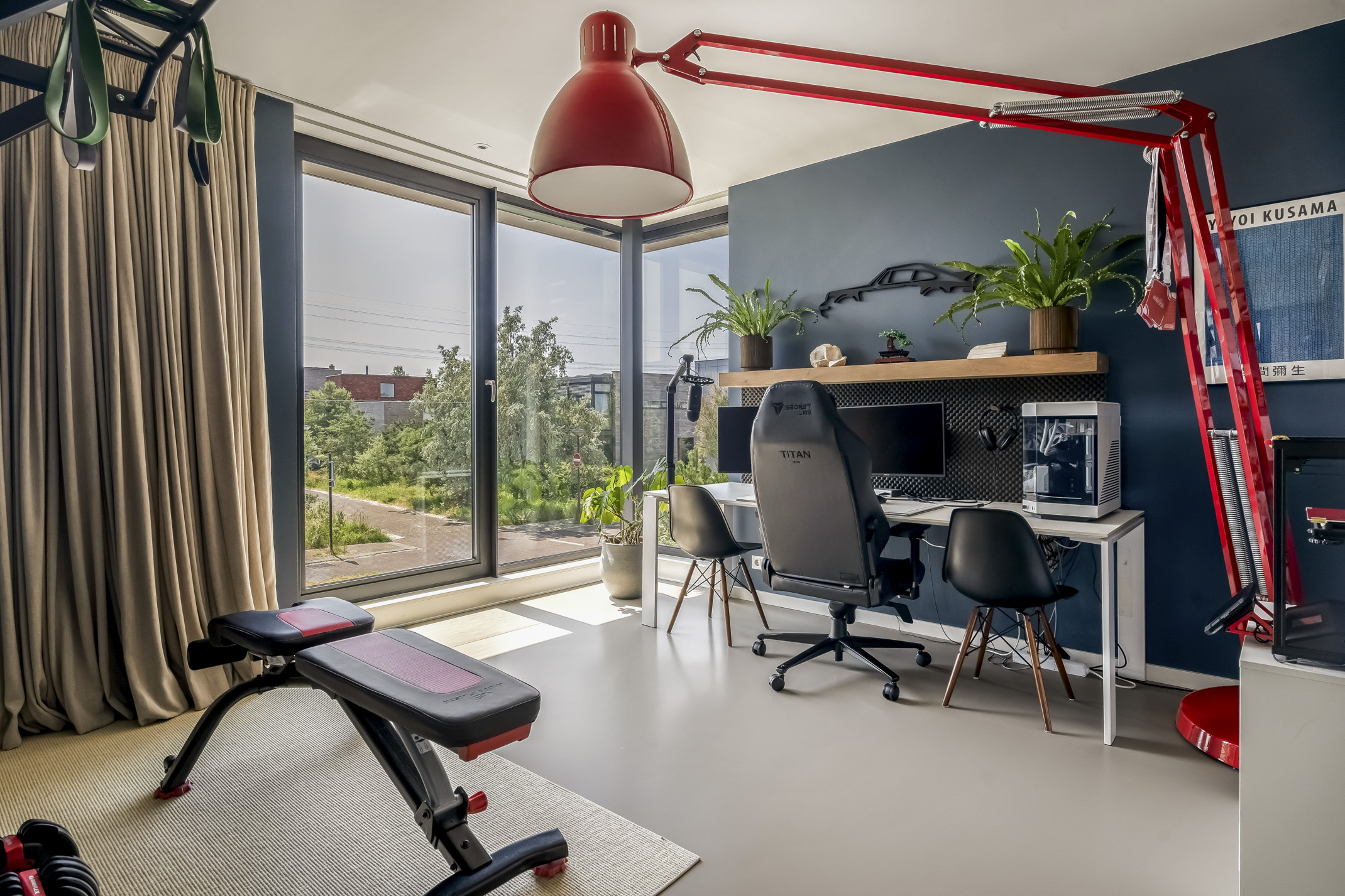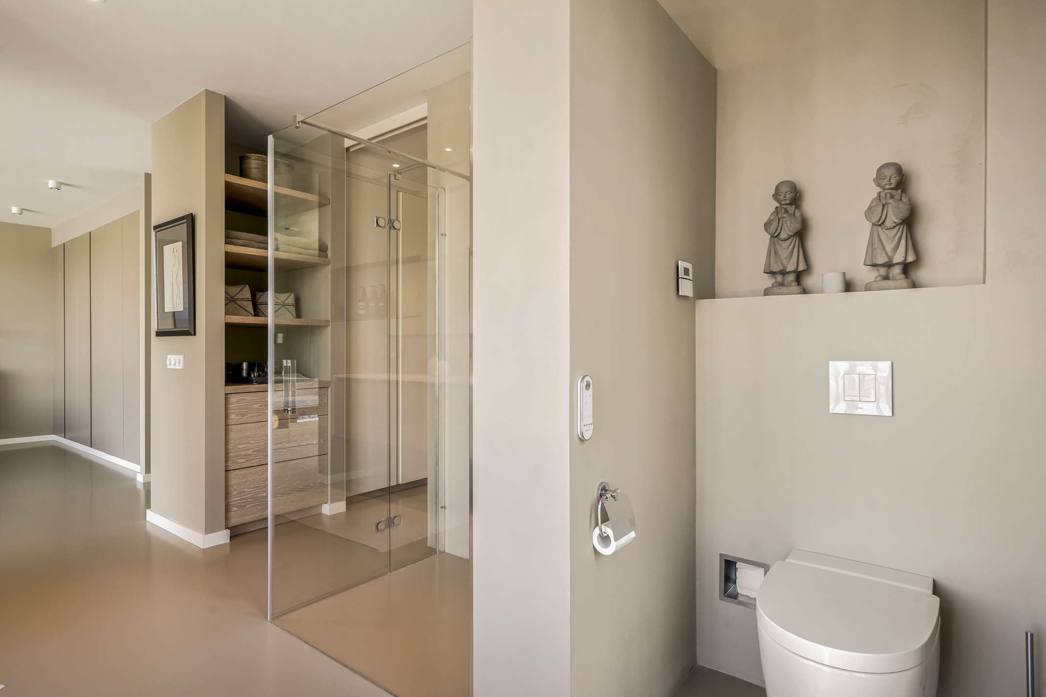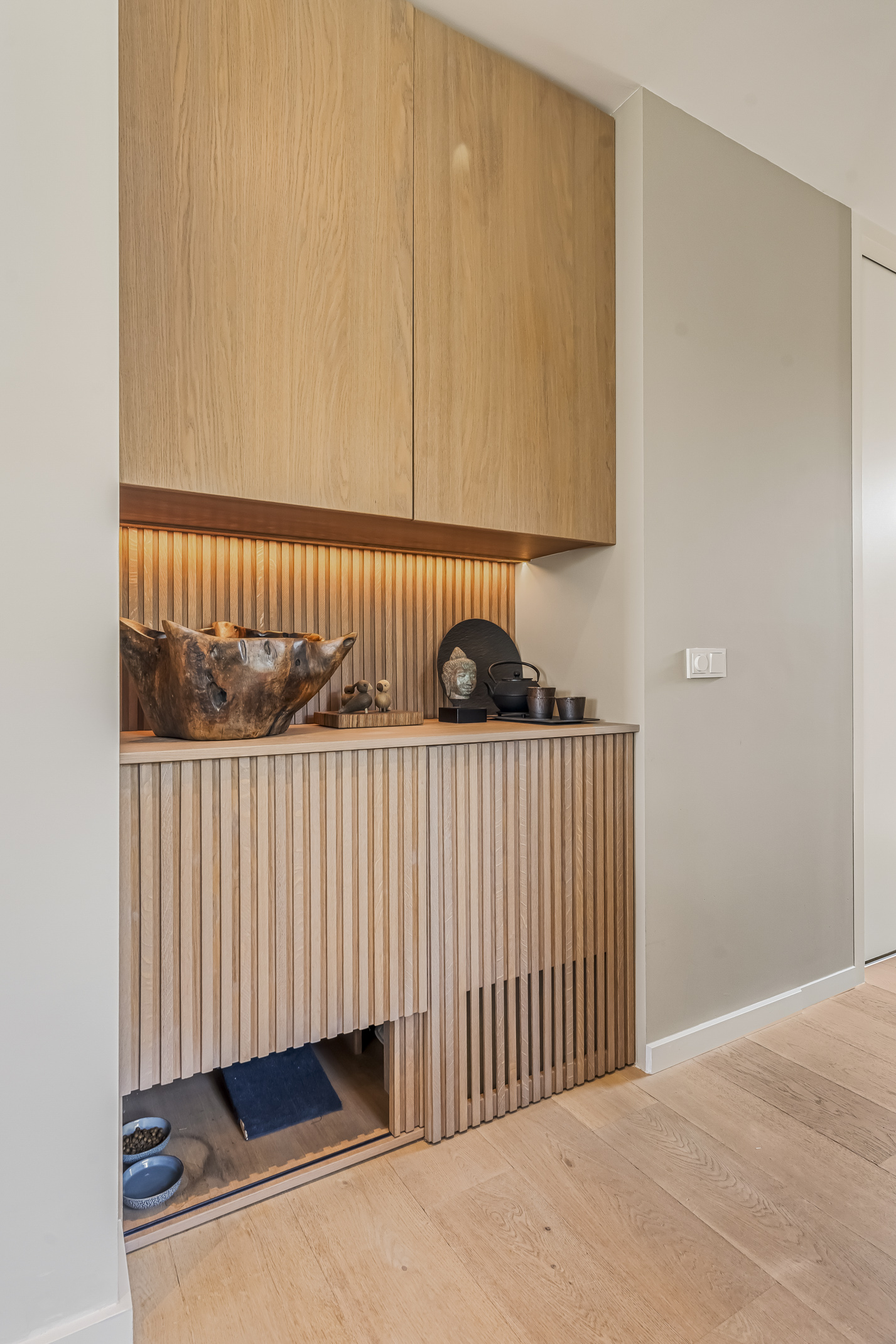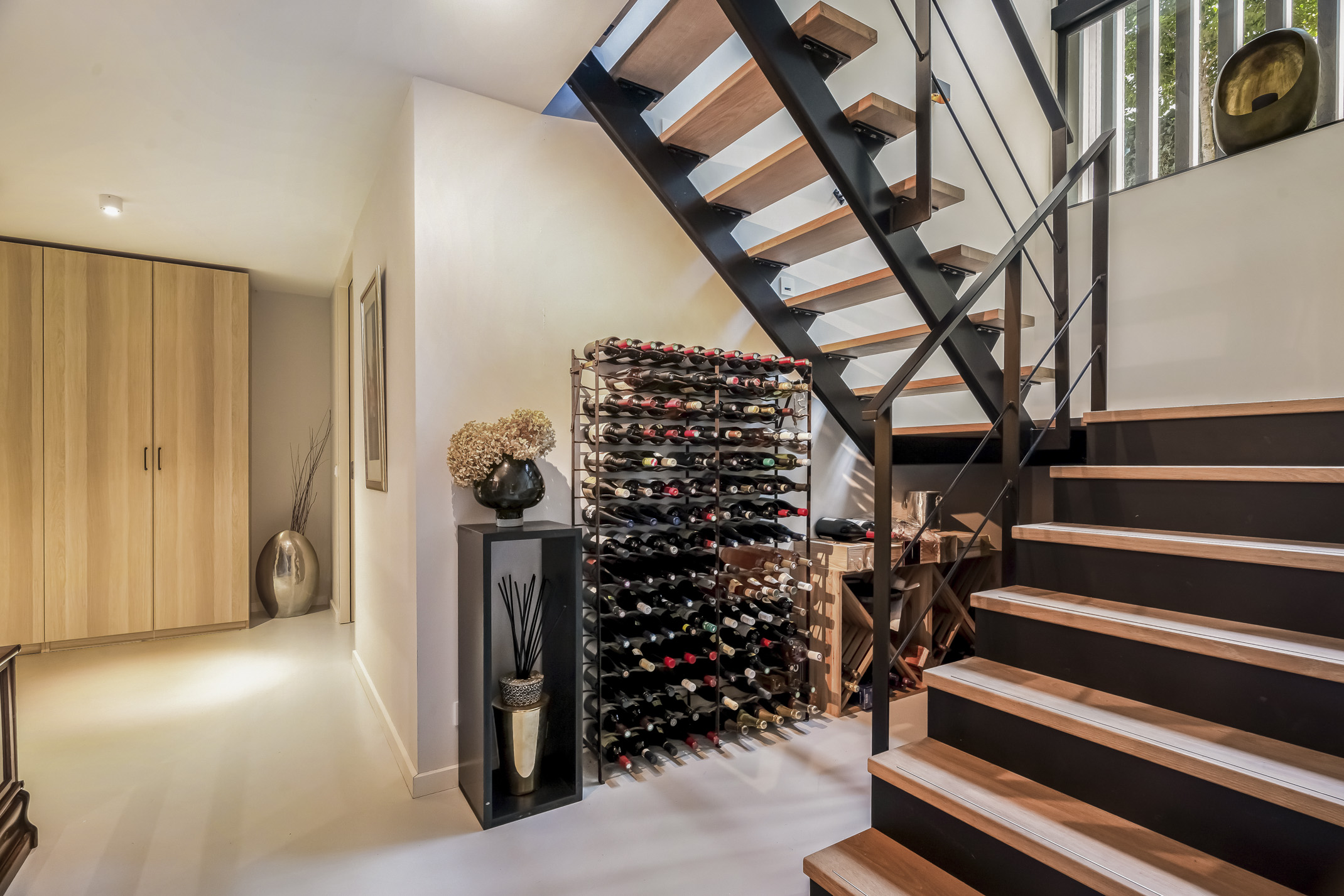 The luxurious kitchen is a dream for any chef, equipped with all modern appliances such as a Quooker, a Bora induction cooktop with integrated extraction system, dishwasher, extra large fridge and freezer, steam oven and a combi-oven. The coffee bar separates the kitchen from the study. There is also an outdoor kennel accessible from inside for your beloved pet.