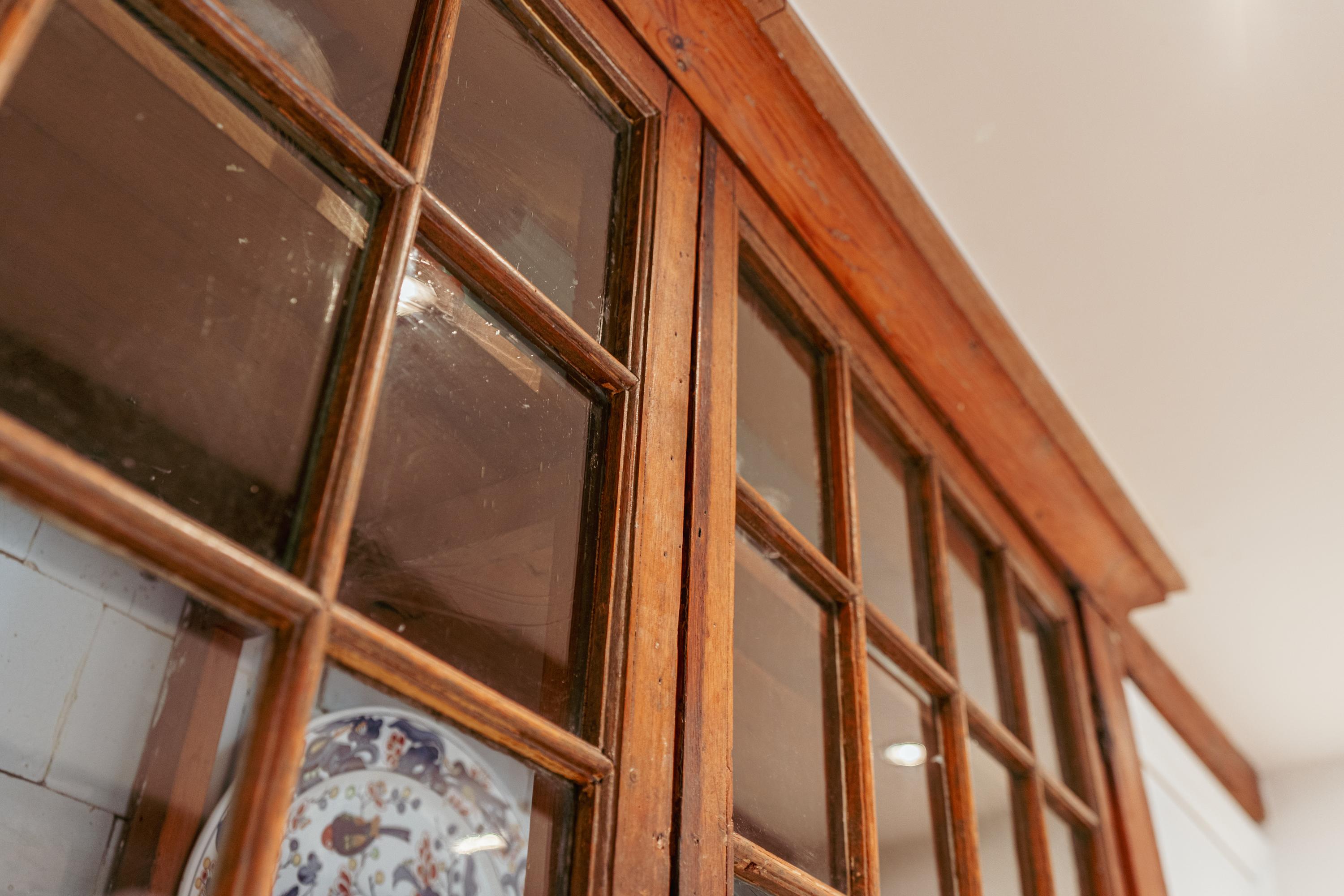 At the front of the apartment is a spacious room, ideal as a home office or separate dining room. This room also has its own private entrance from the communal hallway. At the rear is the living room overlooking the inner garden. Both rooms feature characteristic wooden beams and high windows, creating a pleasant influx of daylight.