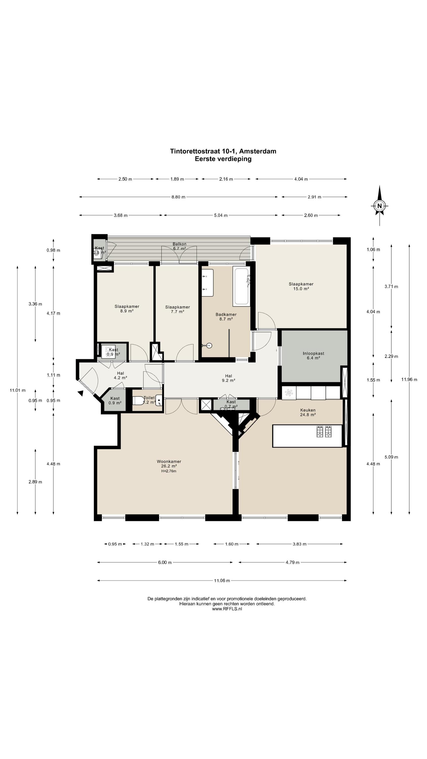 Luxurious and modern apartment of approx. 124 m², complete with a balcony, located on the beloved Tintorettostraat. This beautiful home offers a spacious living area with an open-plan kitchen, three bedrooms, a generous custom-made walk-in closet, and a stylish, high-end bathroom. The entire apartment is finished with premium materials and refined details, resulting in an exceptionally sophisticated look and feel.