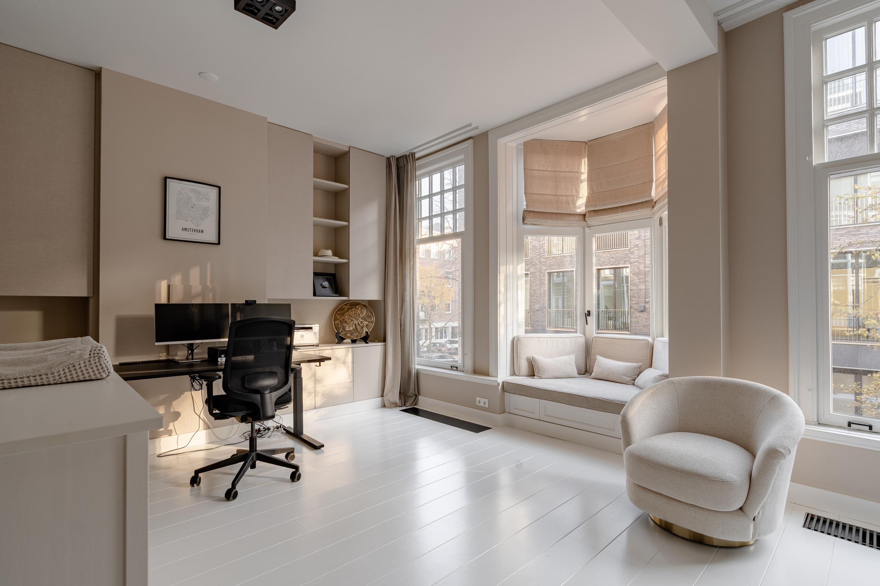 Situated in one of the most sought-after locations in Amsterdam Zuid, this spacious and elegantly finished freehold property of approximately 190 m² spans three floors and features a generous rear garden, two balconies, and a practical basement. With its bright living area, modern kitchen, four well-proportioned bedrooms and two luxurious bathrooms, this home offers exceptional living comfort for families and anyone seeking space in a prime Amsterdam Zuid location.