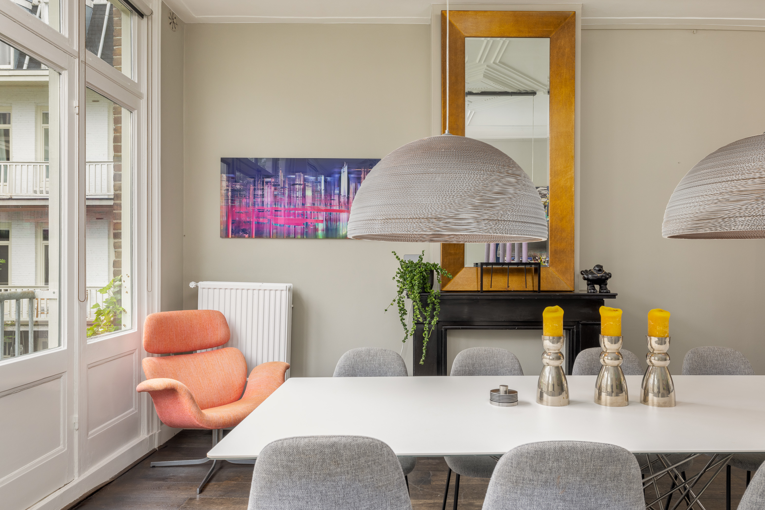 The apartment is located in one of the most charming spots on Valeriusstraat in Amsterdam Oud-Zuid, between Valeriusplein and Amstelveenseweg. The Vondelpark, as well as the many (neighborhood) shops, lunchrooms, restaurants, and supermarkets, are in the immediate vicinity of this beautiful house. By bike, you can reach the city center and Zuid station in 10 minutes. Various primary and secondary schools and the VU Medical Center are easily and quickly accessible. Additionally, The British School of Amsterdam is just a 2-minute walk from the house. Valeriusstraat is a one-way street. The neighborhood is well connected to public transportation, with taxi, tram, and bus connections at Haarlemmermeerstation within walking distance, and you can reach the A10 Ring Road (S108) by car in 5 minutes. A parking permit for one car can be obtained immediately.