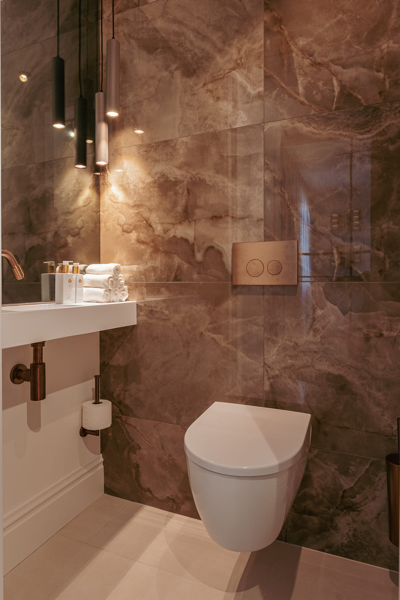 Via the communal staircase, you reach the entrance to the property on the third floor. From your private entrance, a neatly renovated staircase leads up to the apartment on the fourth floor. Upon entering, you immediately notice the warm and stylish ambiance, thanks to carefully chosen materials, atmospheric lighting, and impeccable finishes. The apartment has been renovated to a high and luxurious standard, with great attention to detail. Modern black steel doors combined with classic elements give the home a contemporary yet timeless feel, something that runs consistently throughout the property.