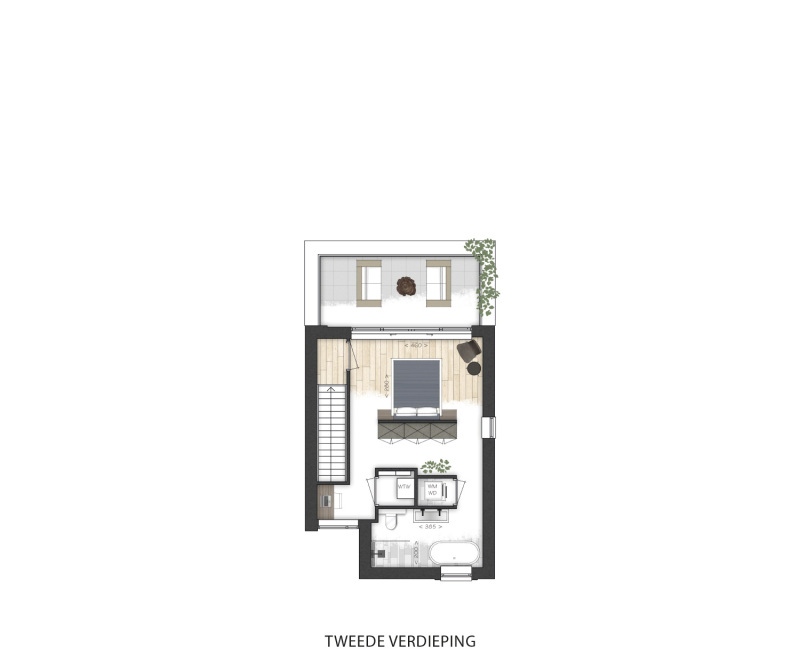 Outside, you will find a garden with jetty, above a terrace as an additional outdoor living area. Lovely to spend that summer day in the garden or on the terrace with friends and family. Soon the barbecue will be on, first an aperitif. Fantastic that your home in Bonheur also has all the possibilities to enjoy the outdoors.
