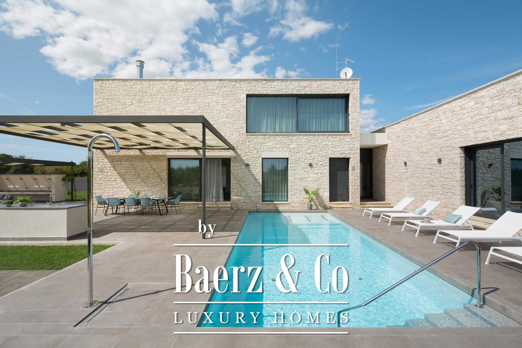 Luxury villa Bale Croatia is offered as a complete package, balancing polished living with meaningful investment scope in Istria’s serene landscape. The property comprises a 363 m², five-star villa constructed in 2021, set on a 1,424 m² plot, accompanied by a contiguous 1,791 m² parcel with approval for an additional villa. Together, these well-positioned lands total 3,215 m², providing both seclusion and expansion possibilities.