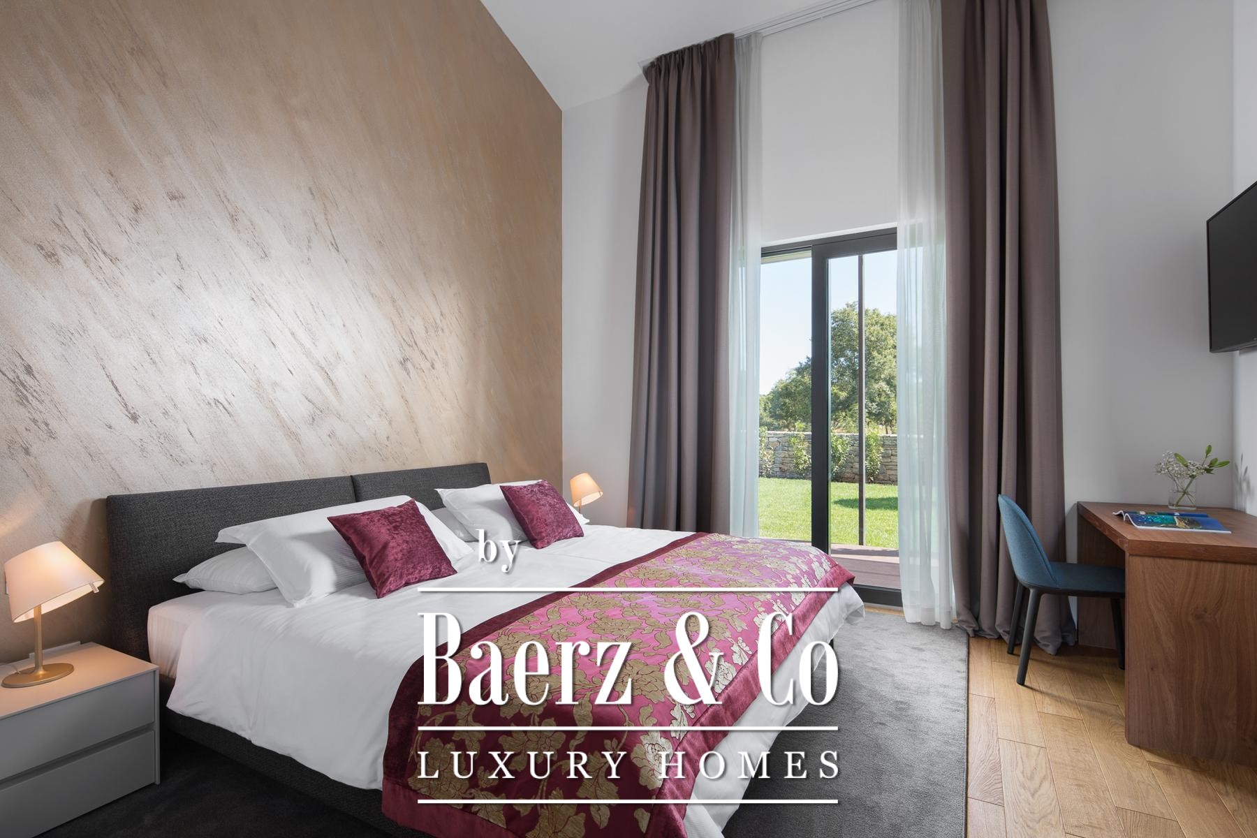 The villa is offered fully furnished, with a landscaped garden and three covered parking spaces, ready for private use or continued premium rental. The adjacent open, buildable land grants potential for a private enclave or expanded luxury hospitality. For discerning investors, this property merges leisure, architectural clarity, and strategic growth in a discreet Croatian setting.