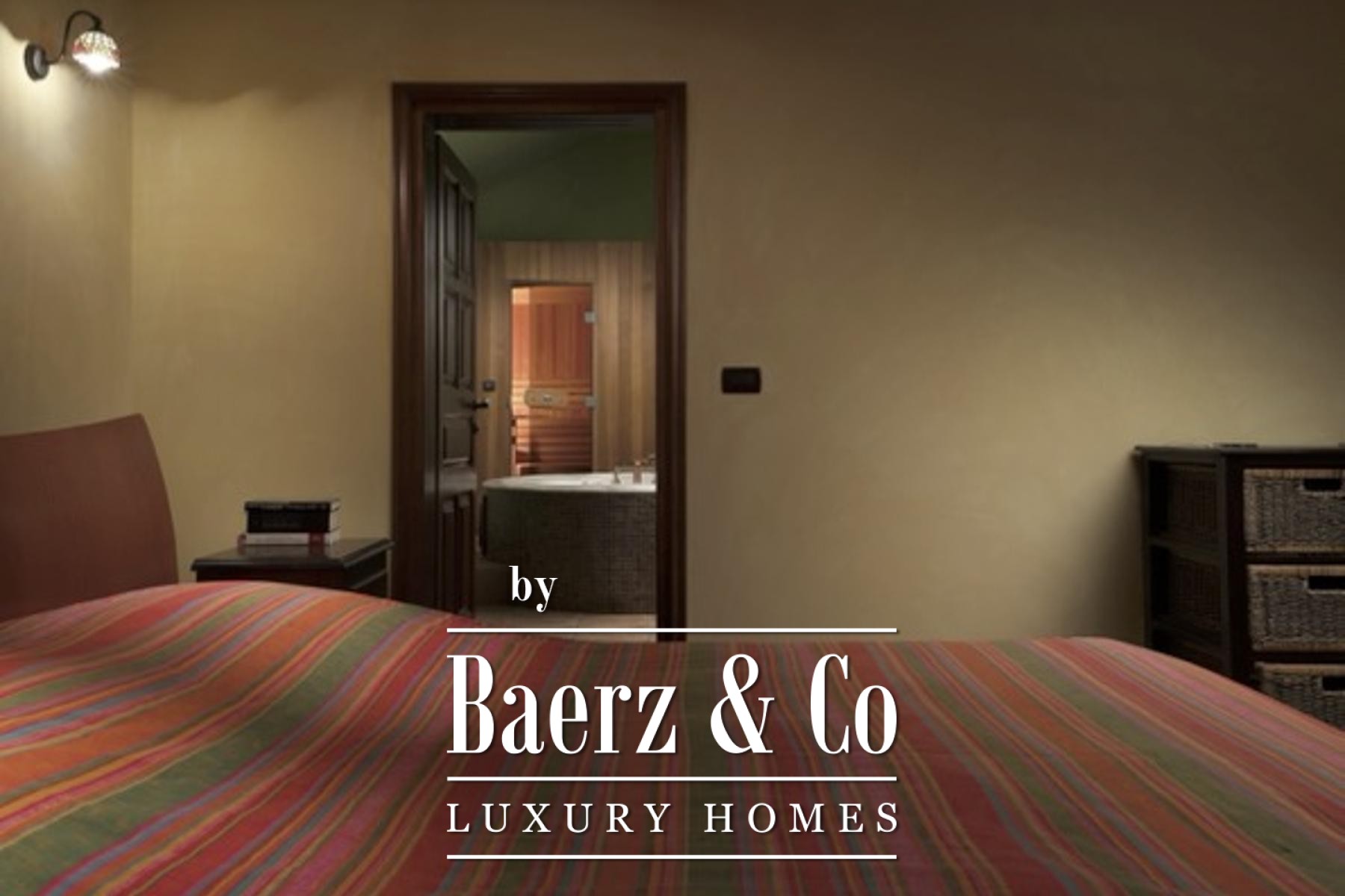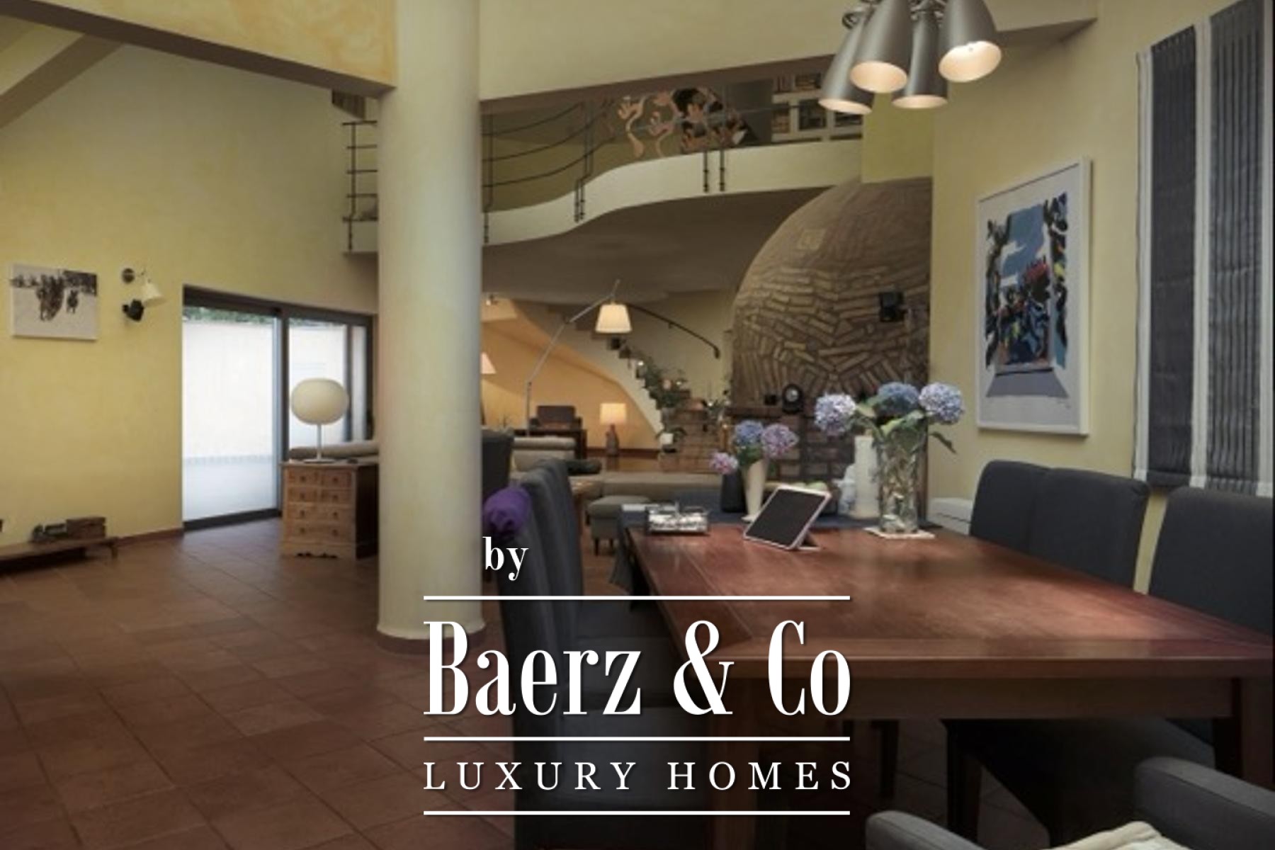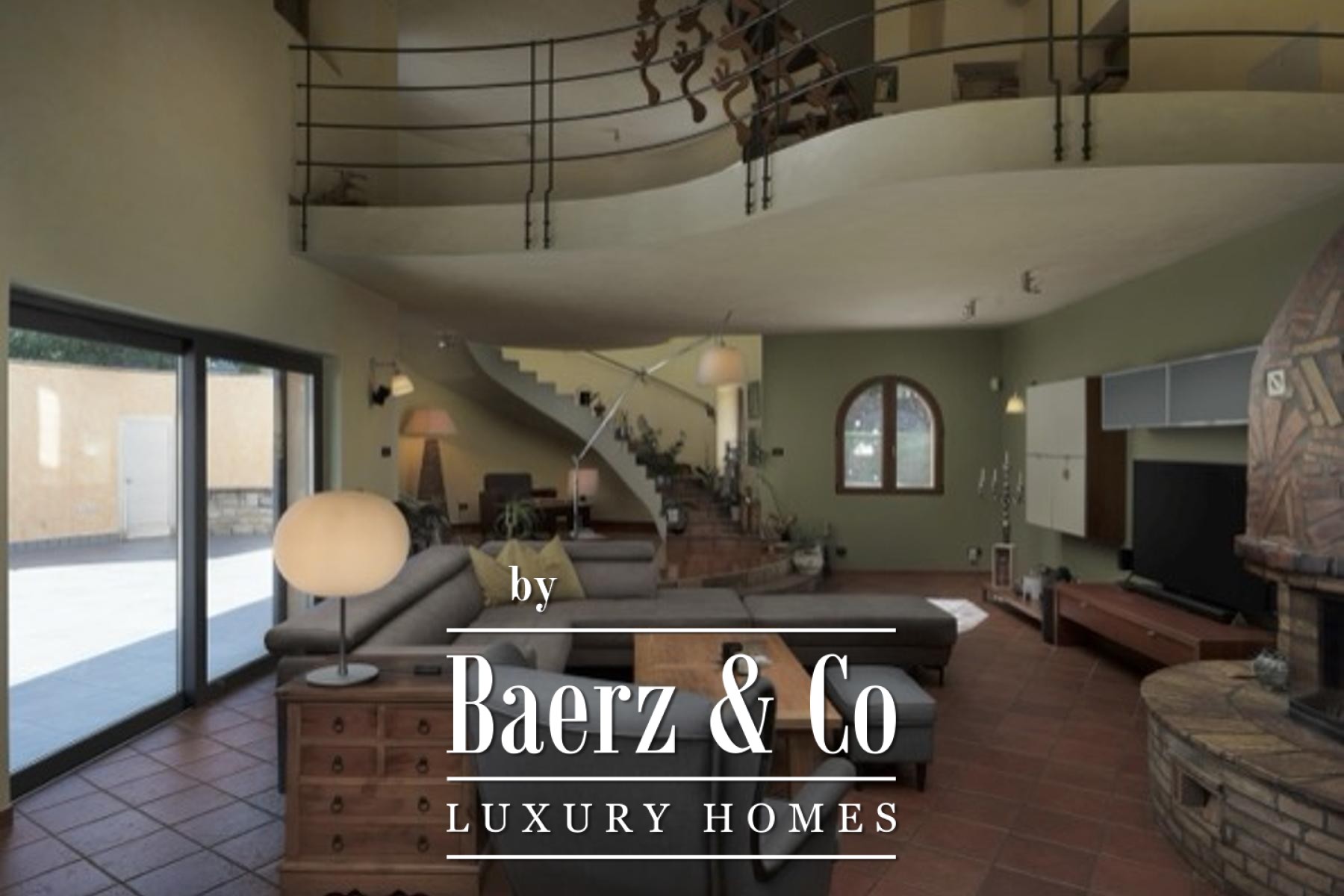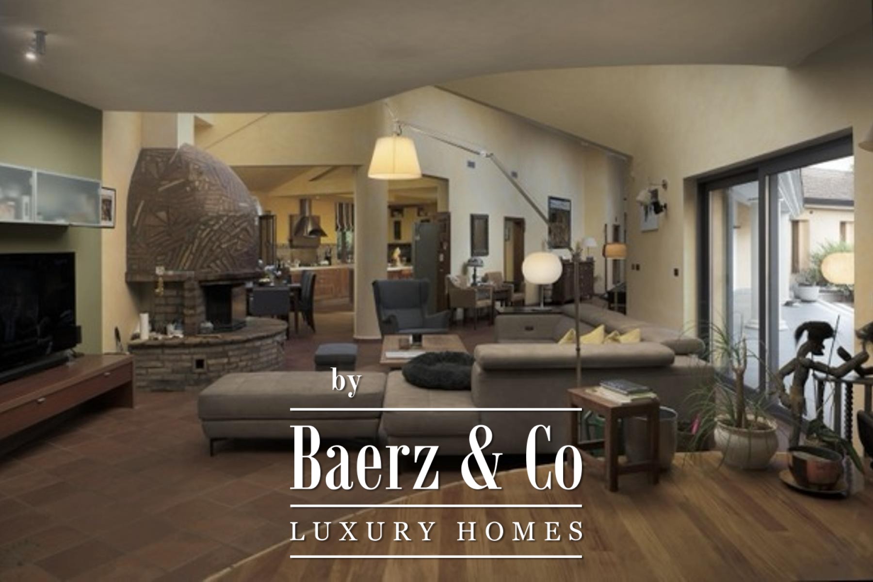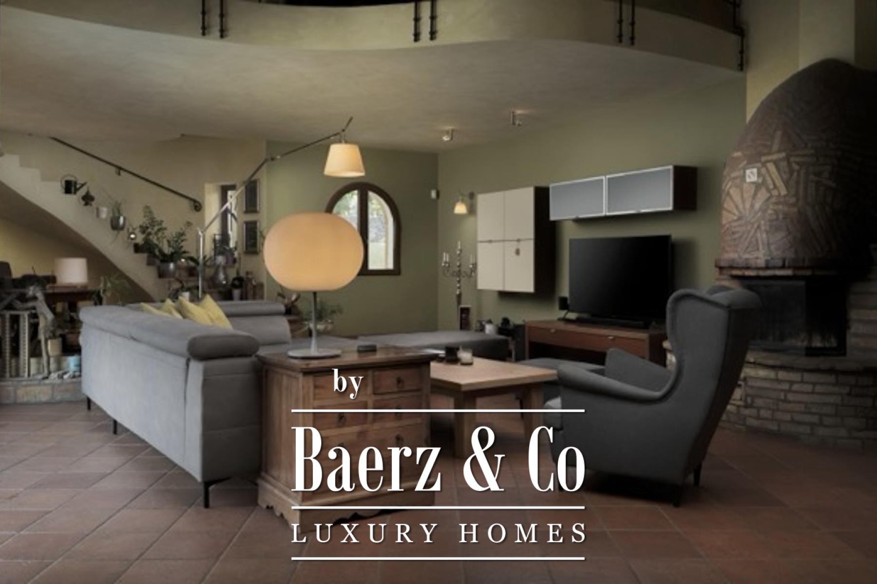Inside, the 350 m² of living space is meticulously arranged for both comfort and quiet luxury. Five bedrooms provide flexibility for family and guests, with a master suite that includes a private bathroom, walk-in closet, and sauna. The main living area is anchored by a fireplace and flows toward a terrace overlooking the garden. Modern conveniences include a smart home system, fully equipped kitchen, and photo-solar panels delivering 11 kW of energy efficiency. A spacious storage room and five bathrooms further enhance everyday ease.