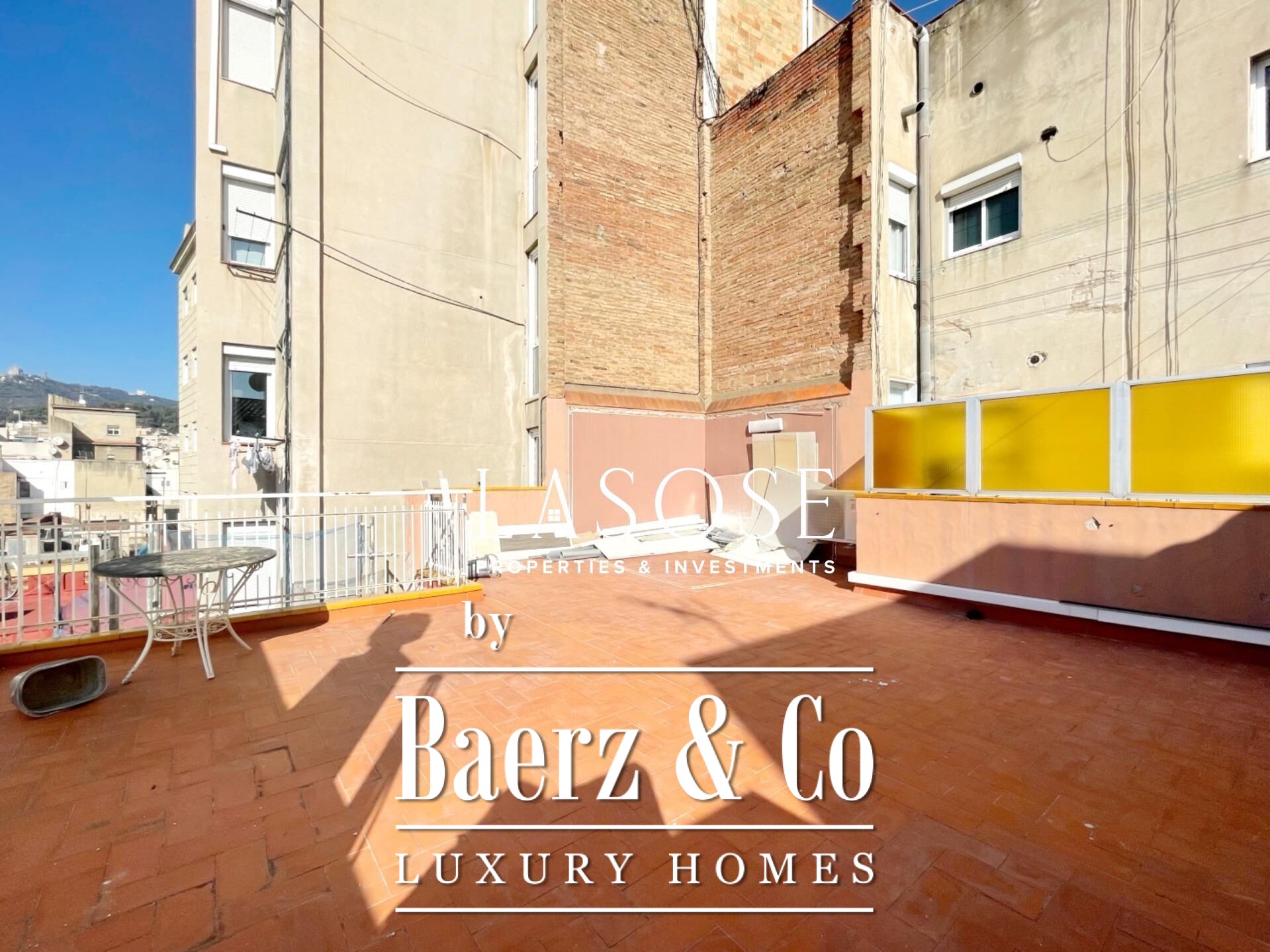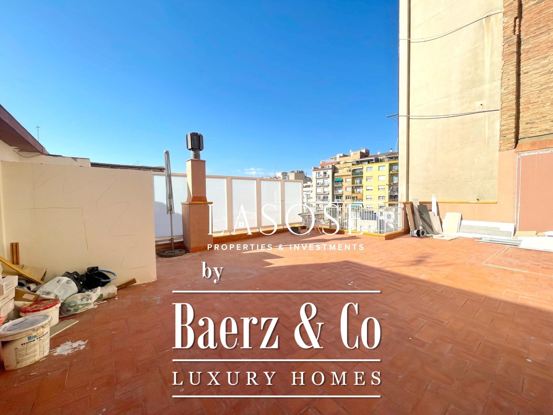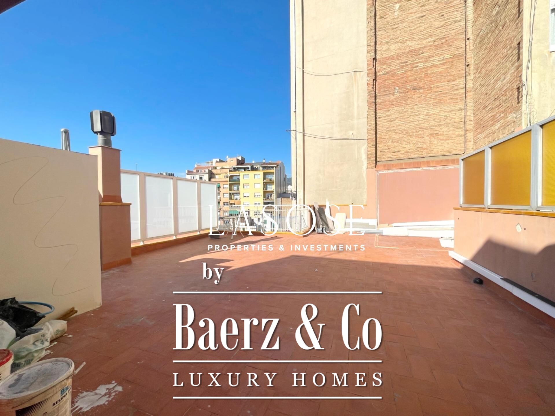 Penthouse Barcelona is the focus of this refined residence, positioned in the authentic enclave of Vila de Gràcia near Putxet. The 96 m² interior is complemented by a generous 60 m² terrace, offering a seamless flow between indoor and outdoor living. This penthouse Barcelona has been completely renovated, presenting a thoughtful division between night and day zones.