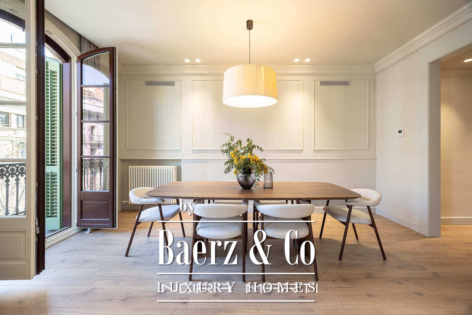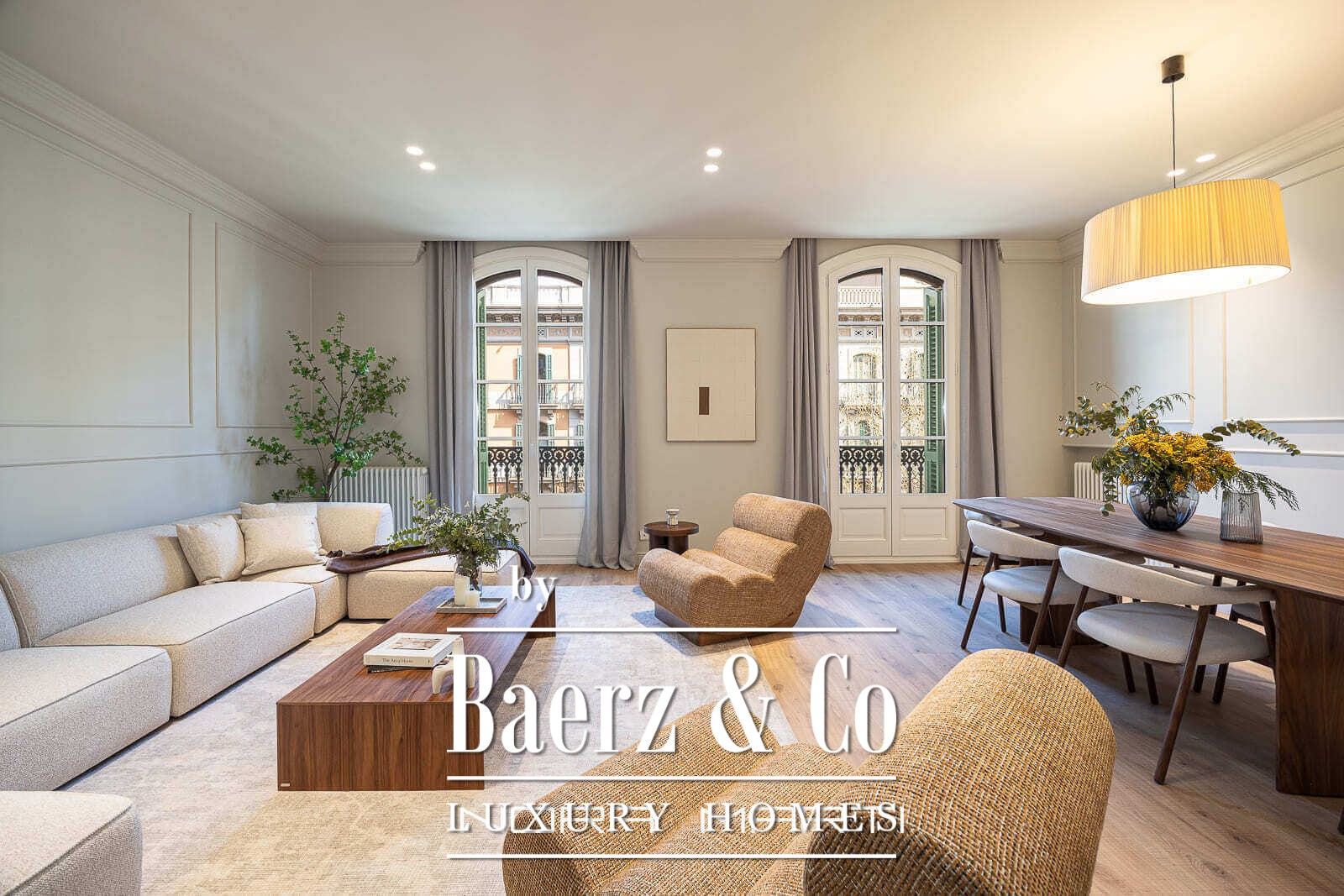 Apartment Barcelona with terrace defines refined city living in the highly sought-after Eixample district. This 203 m² residence presents a harmonious blend of classic architecture and contemporary finishes, all carefully renewed to honor its stately heritage while embracing understated modernity.