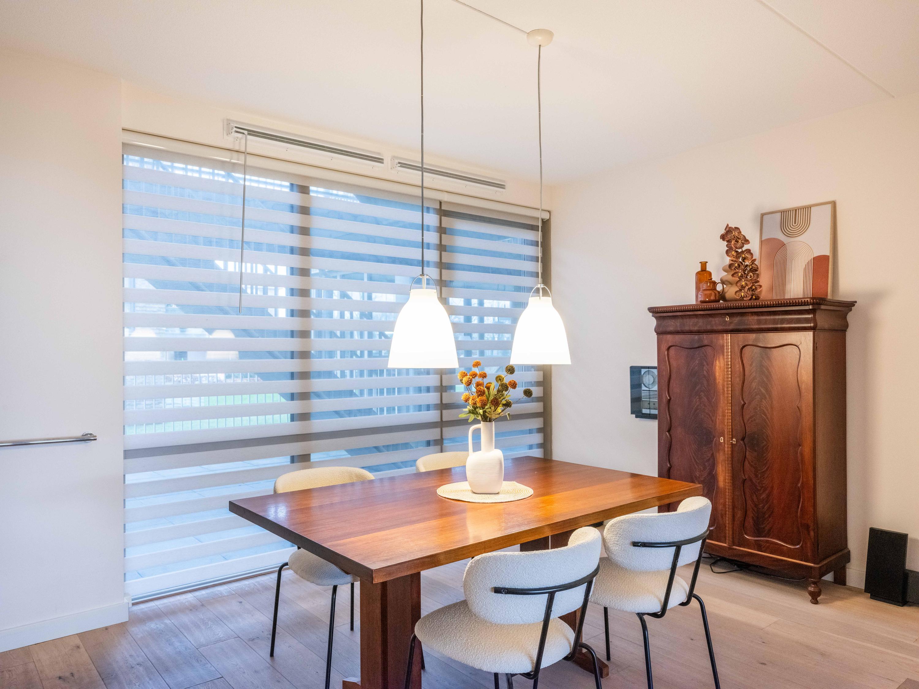 From the living room, the balcony and the lower terrace, you can enjoy beautiful cloudy skies, birds and the greenery of the polder all day long. The modern open kitchen contains various built-in appliances and a dining area.