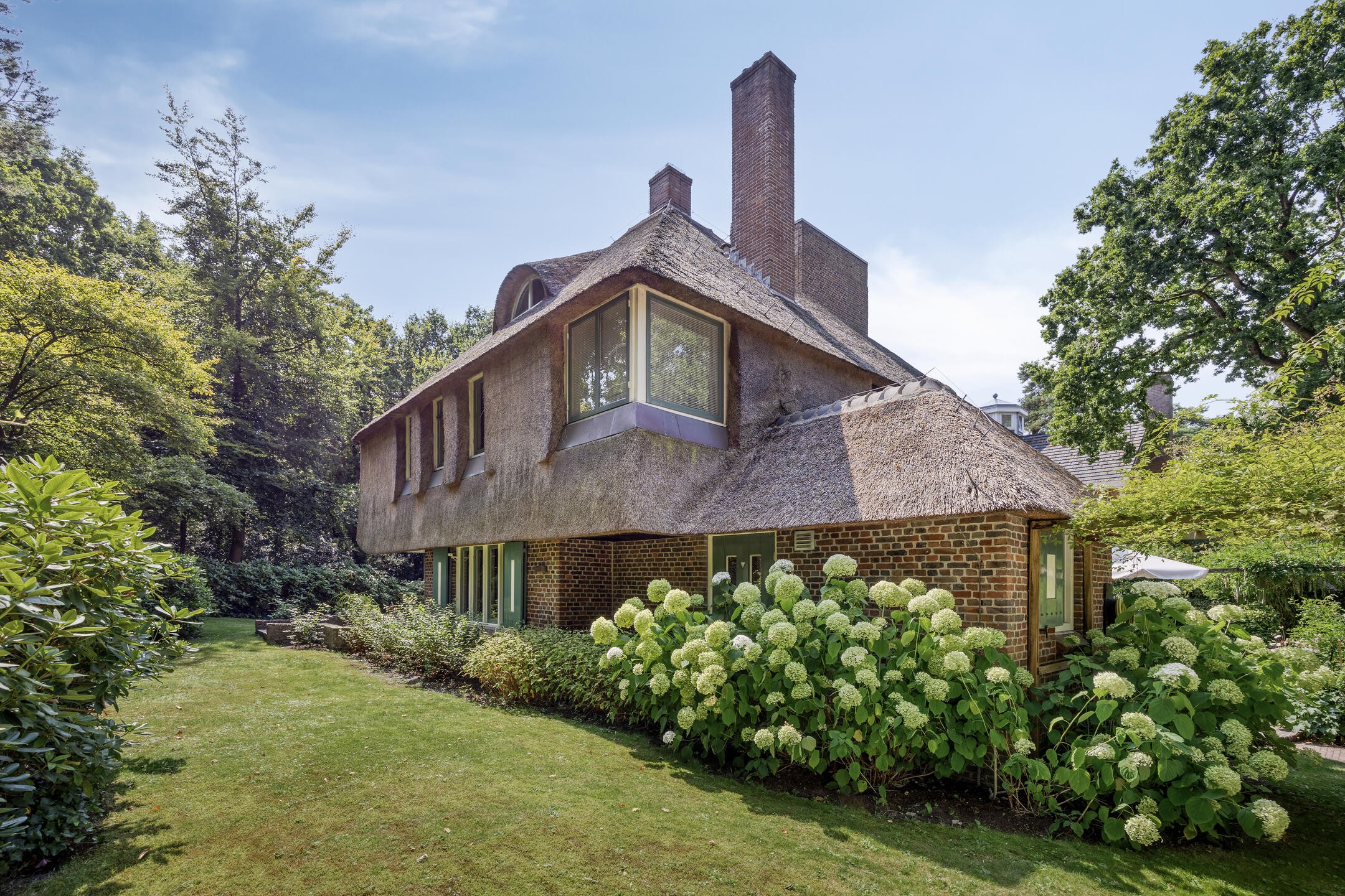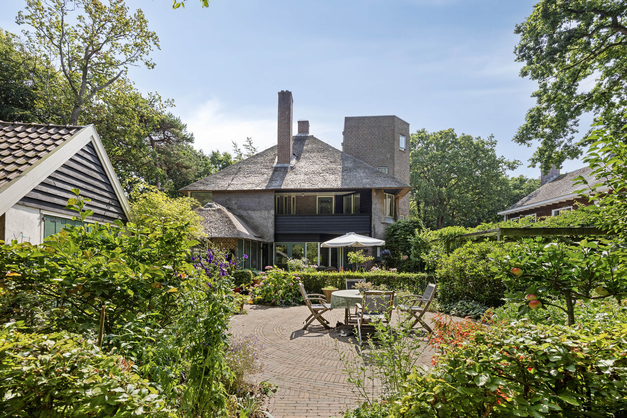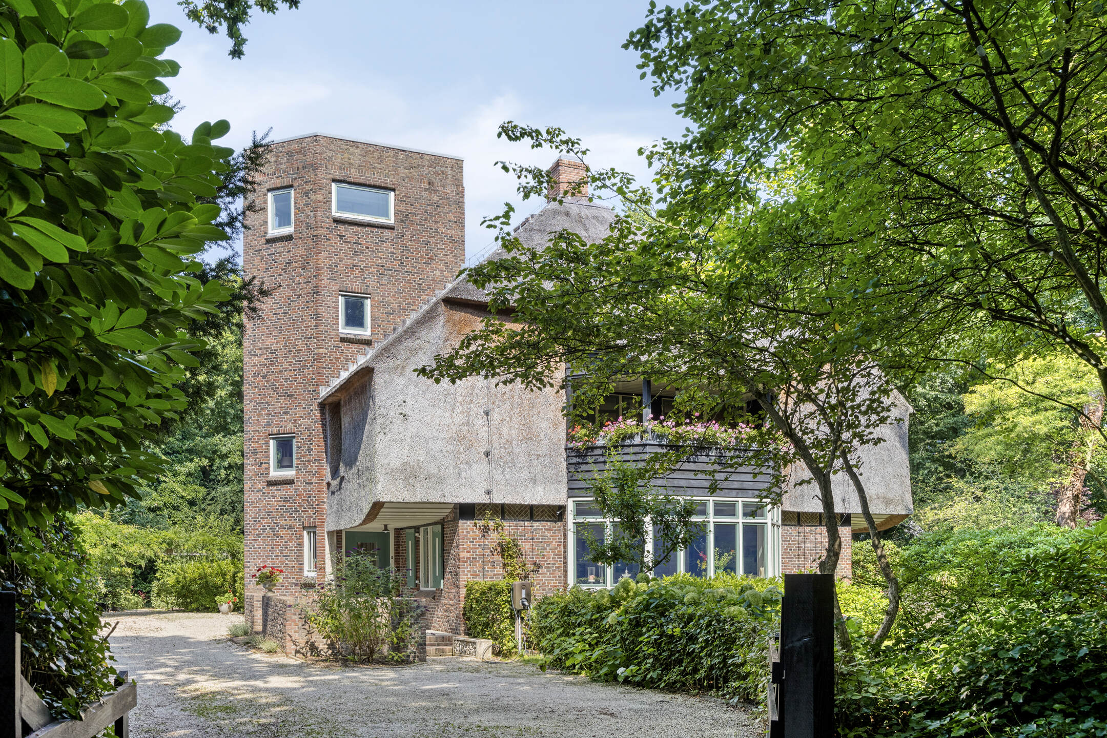 This distinctive villa combines the architecture of the Nieuwe Bouwen movement with modern living comfort. The property stands out thanks to the iconic Reigertoren, the thatched roof, original details and its beautiful green setting. Due to its size, layout and location, this is an ideal family home in Bergen for those seeking detached and spacious living close to nature and amenities.