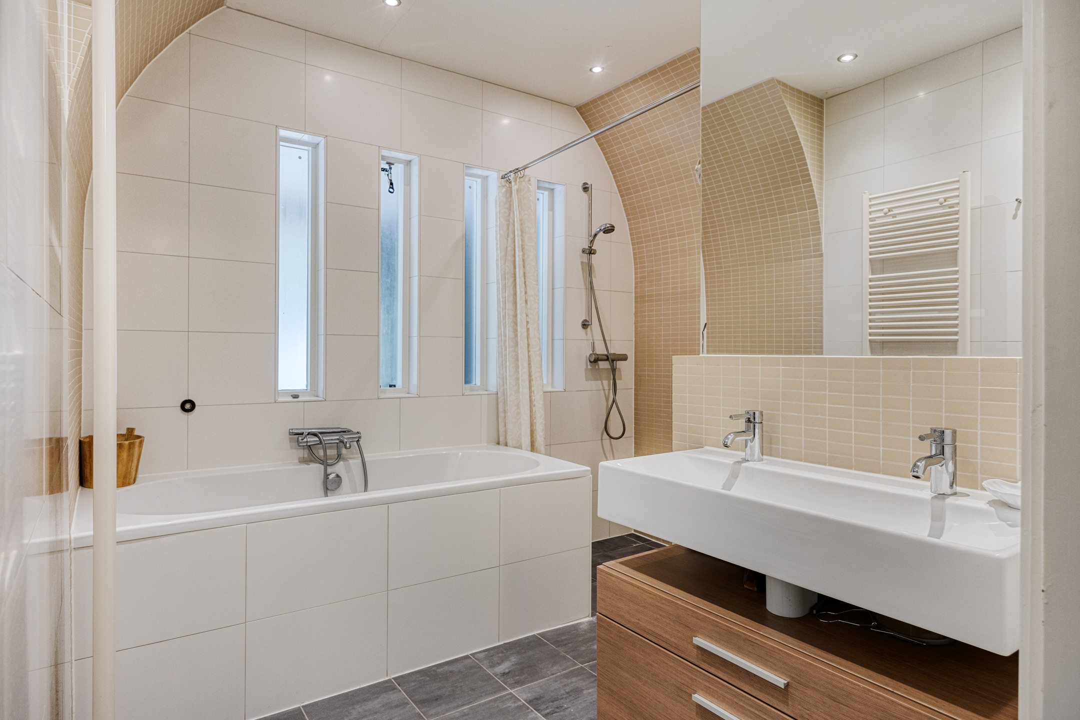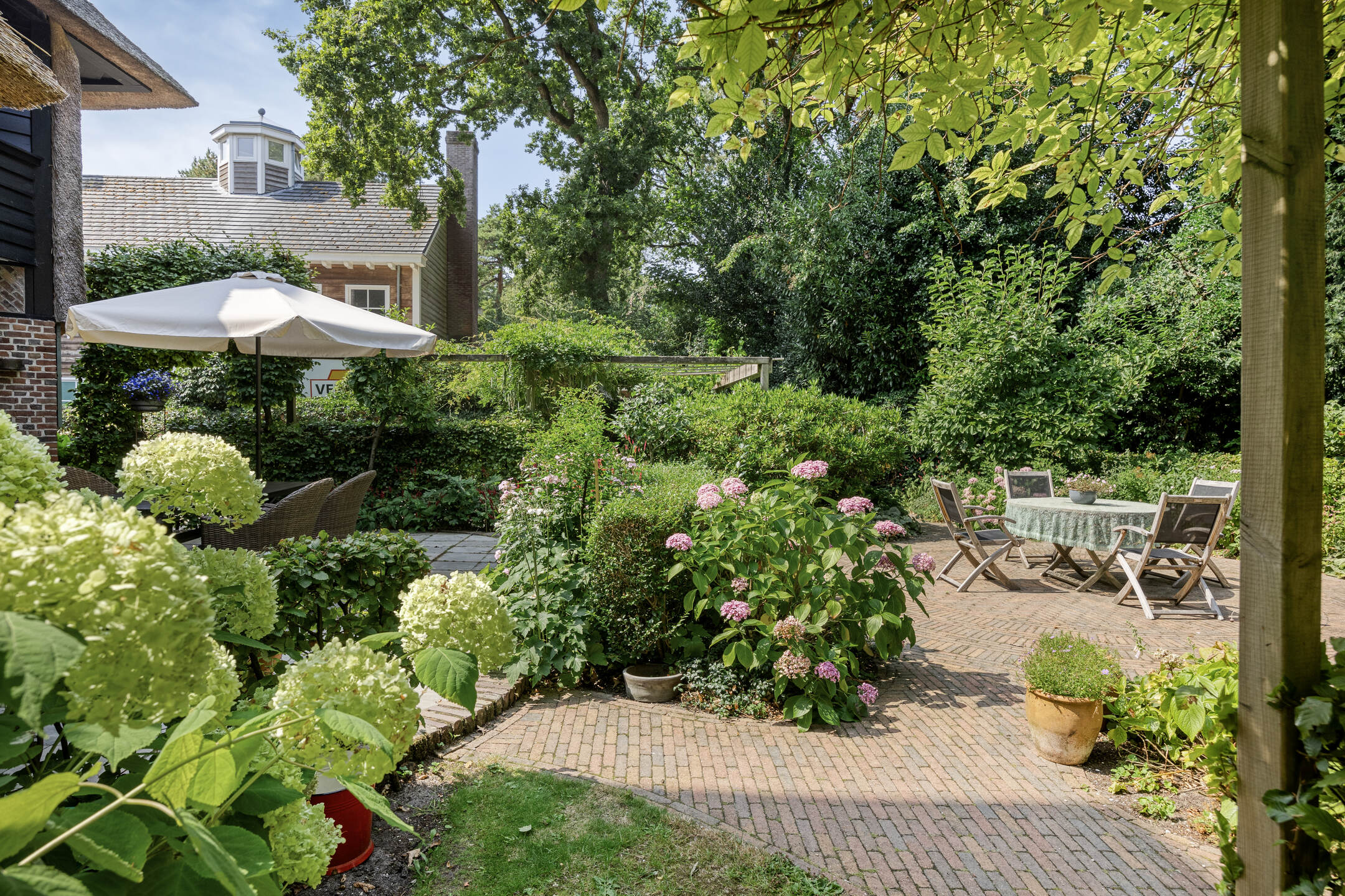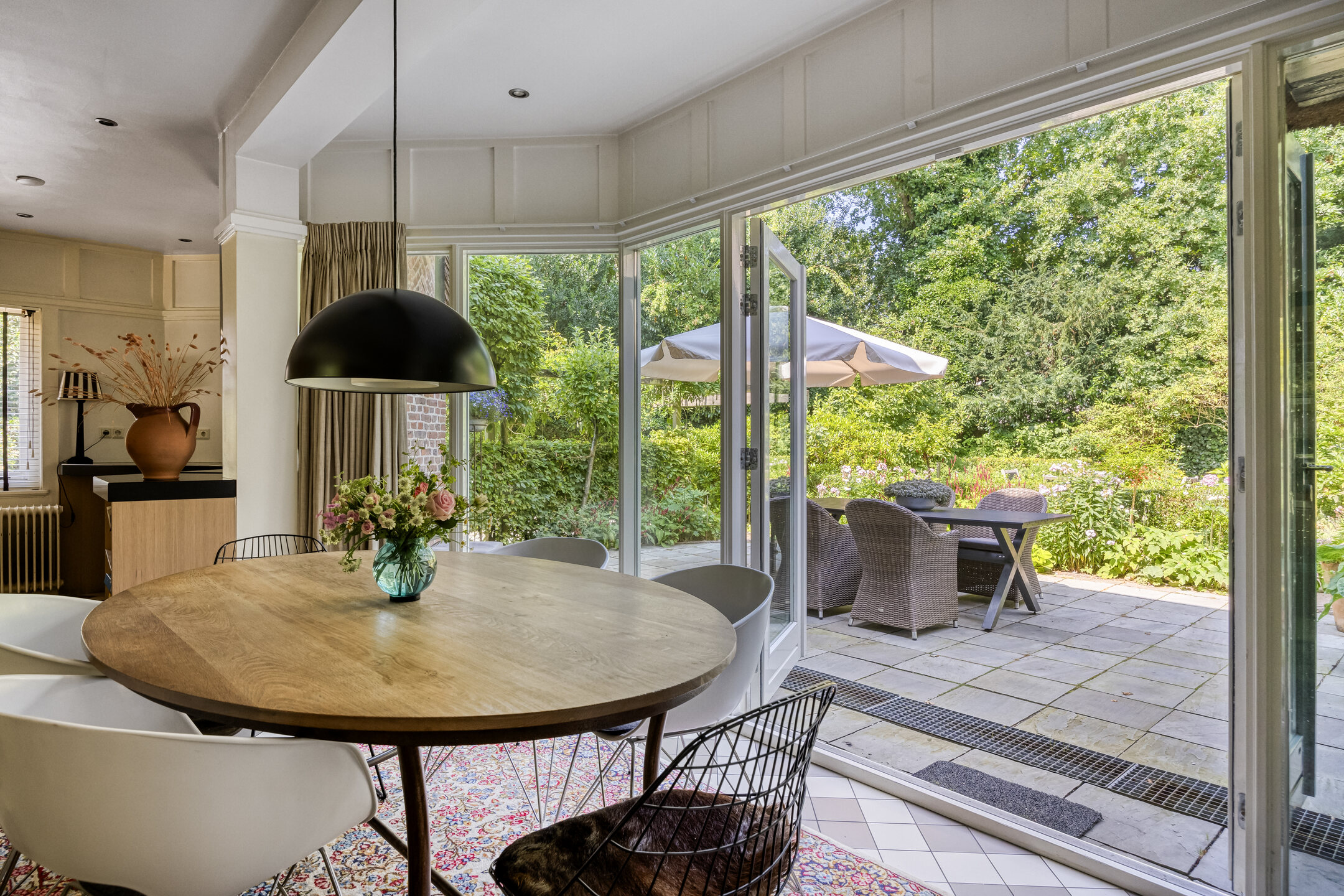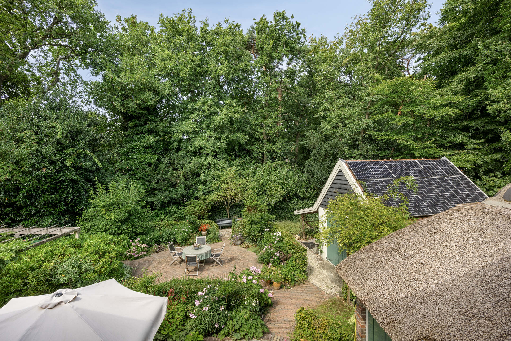 The beautifully landscaped garden surrounding the villa completes the outdoor living experience. On the generous 1,310 m² plot you will find mature trees, well-maintained borders and several sunny and sheltered terraces. The spacious driveway accommodates multiple cars and features a charging station with its own sub-meter.