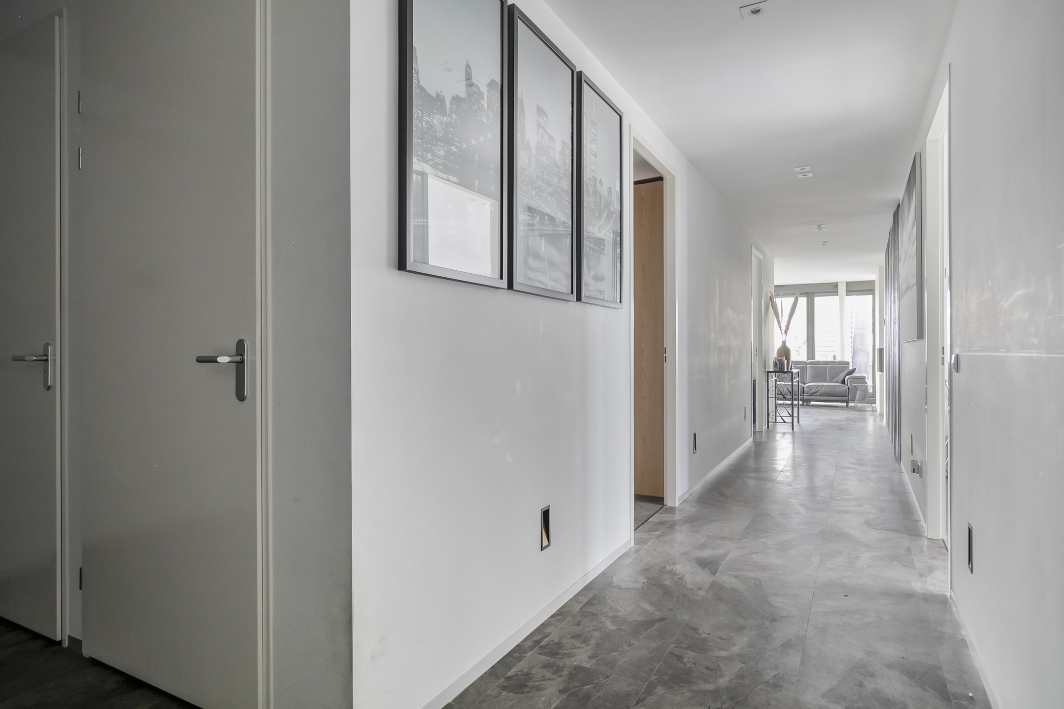 Secured main entrance with elevator access to the 4th floor. Internal access to the penthouse, spacious hallway with toilet, laundry room, access to all rooms, and a large built-in closet.