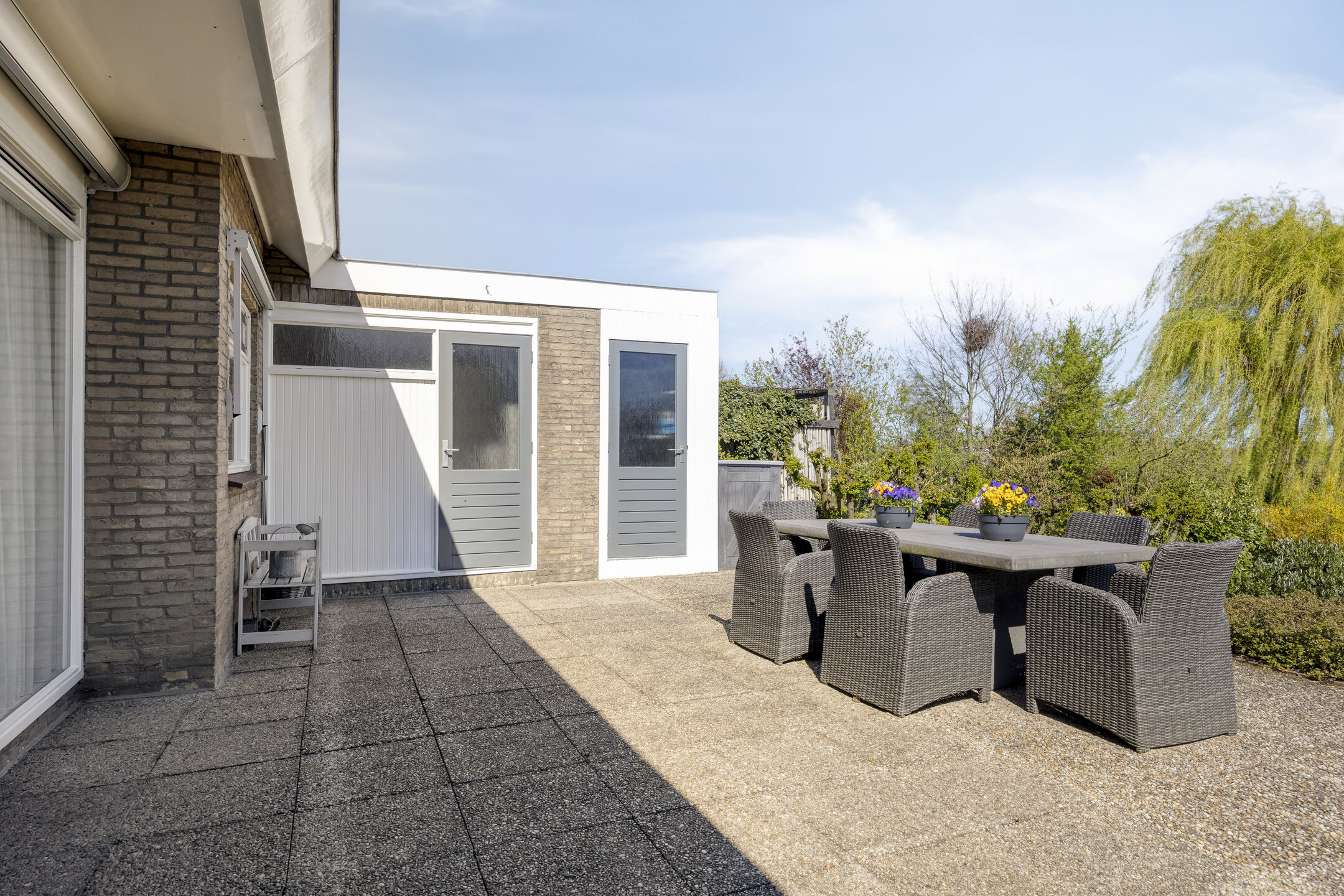 Outdoors, the garden, set across 830 m², is composed for privacy and a sense of natural retreat. Wide sliding doors unite the main living spaces with a deep, sunlit terrace, while automated awnings provide shade as needed. The setting is discreet yet within reach of local amenities, making this detached house Bleiswijk a rare opportunity for those who value space, sunlight, and village access.