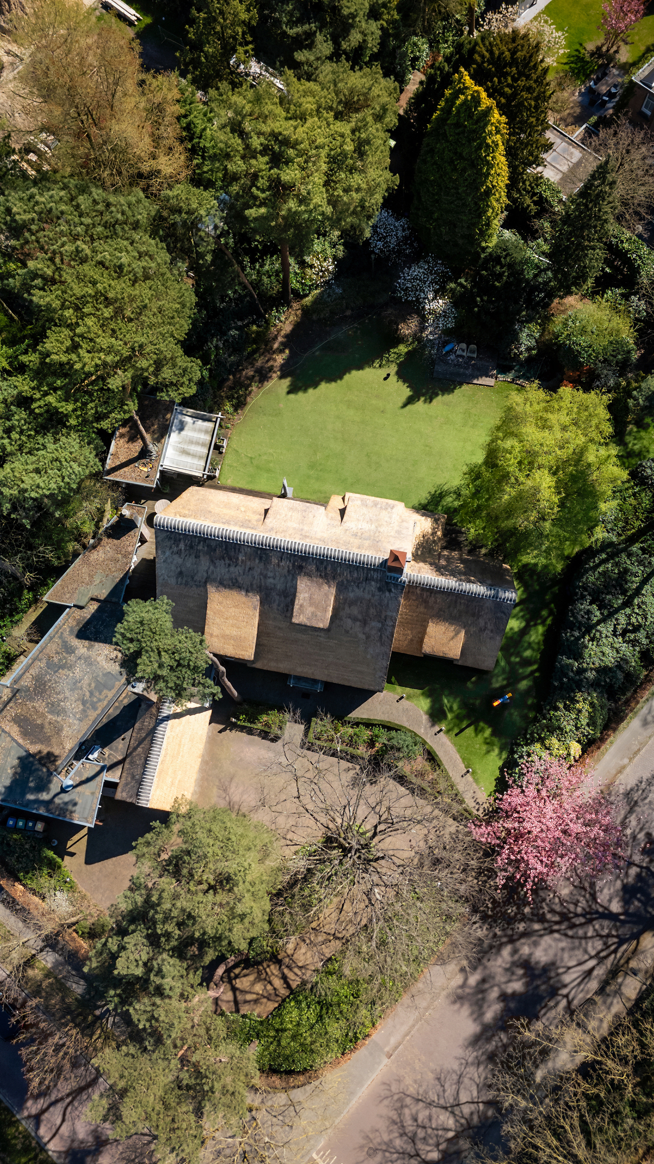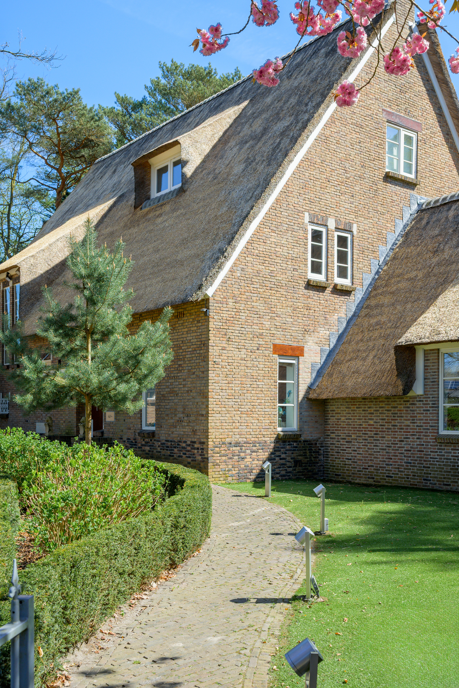 Very unique, perfectly maintained, thatched country house with, among other things, a luxurious wellness area with indoor swimming pool and fantastic outdoor space, situated at a prominent point in the middle of the popular and stately residential area "Ruitersbos" with its beautiful trees and within walking distance of the Mastbos.