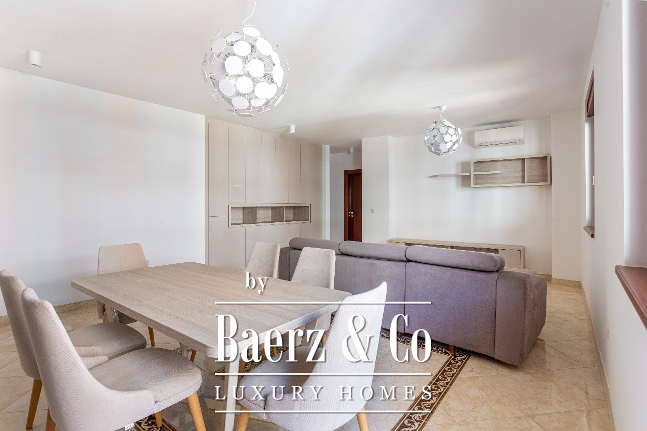 Structure of the apartment: hallway, living room with kitchen and dining table, 3 bedrooms, 2 bathrooms and a terrace. The apartment itself has 95m2 while its terrace has 25m2. It has a view of the sea and the mountains that surround it. The apartment is fully furnished and ready for moving in.