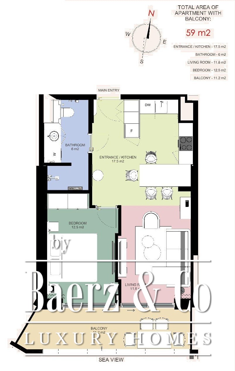 The development is conceived for contemporary living, rising over eight floors and integrating an array of premium amenities: indoor and outdoor swimming pools, a two-level casino, gym, private beach, spa, and a curated selection of retail, restaurants, and boutique shops. Residents benefit from services aligned with the adjacent hotel, optional managed rental programs, and secure underground parking. Upon completion in December 2026, the apartment will be fully furnished, ready for immediate occupancy or seamless short-term accommodation.