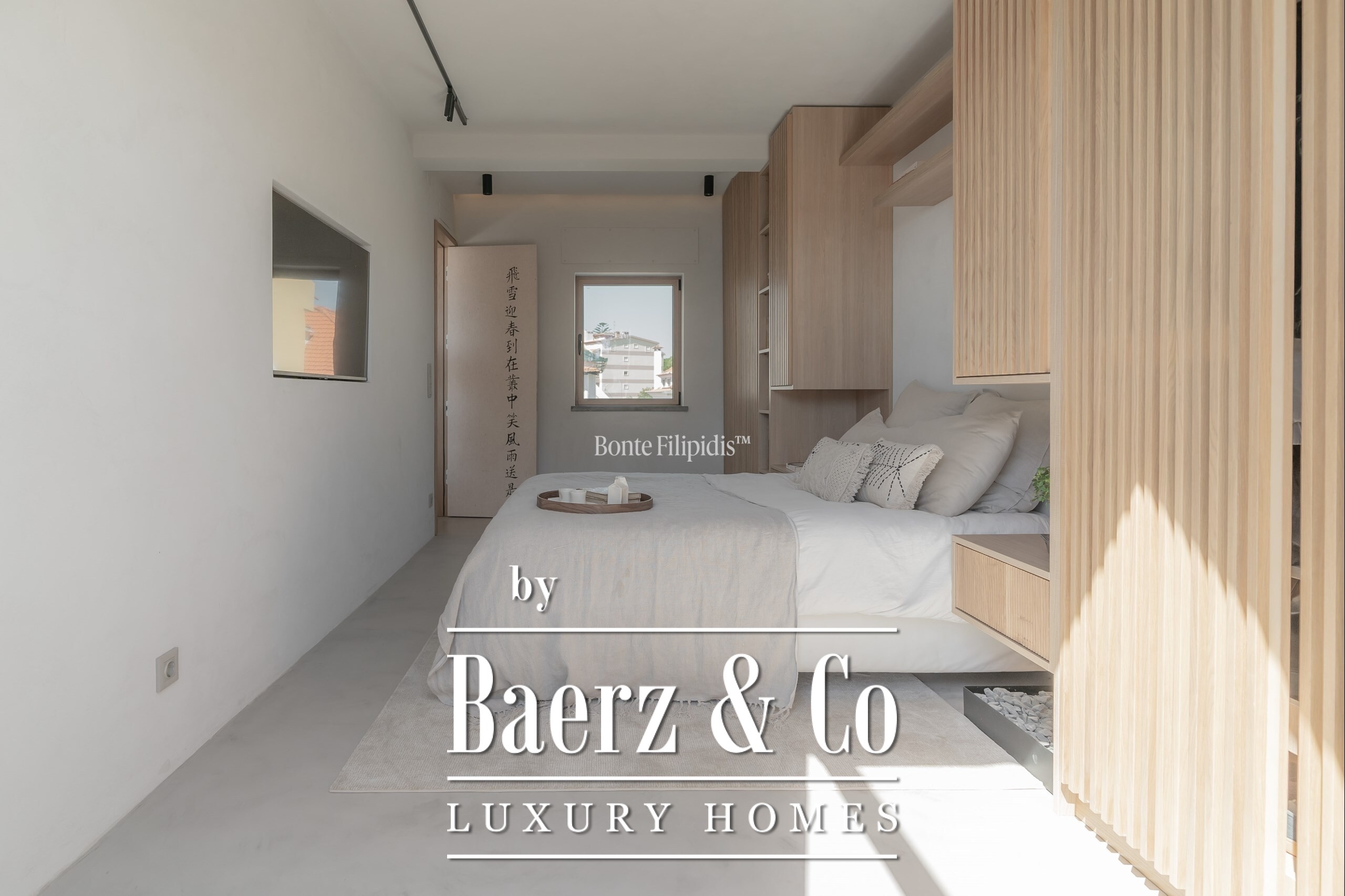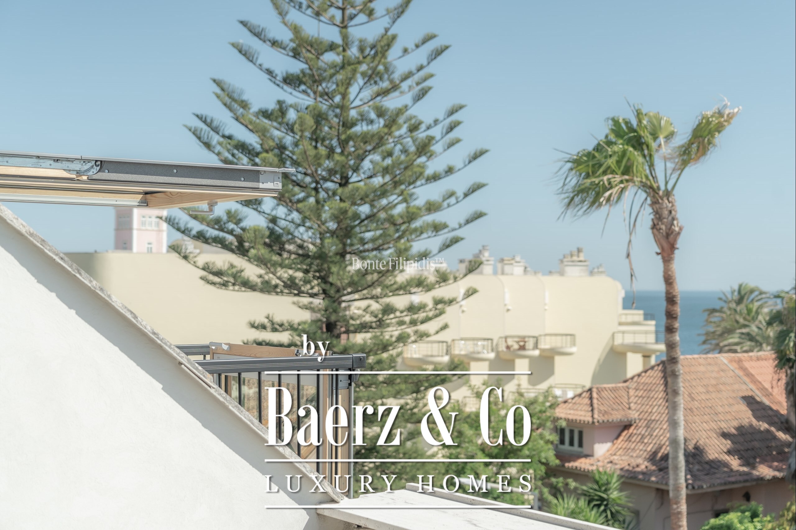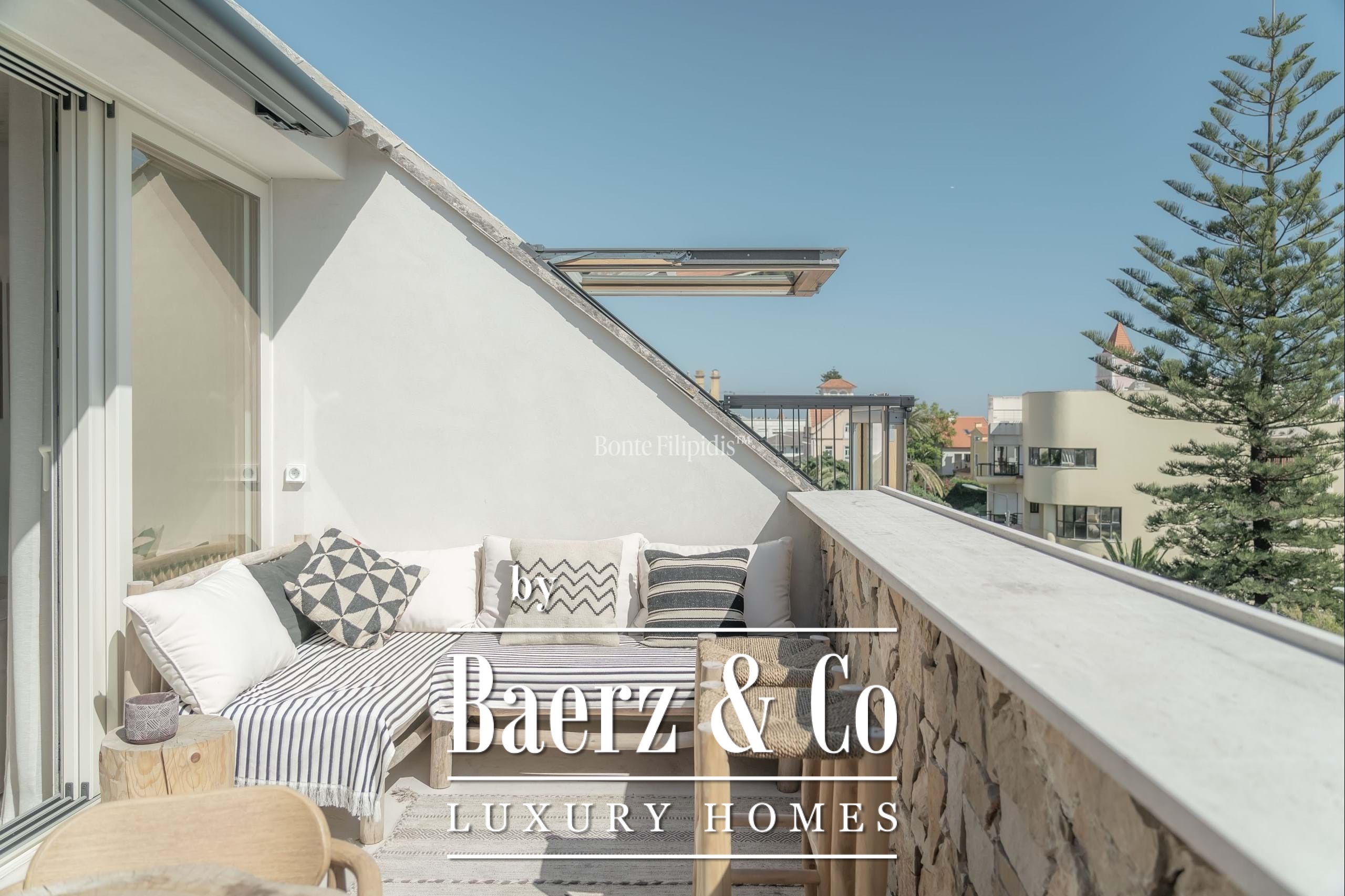 Apartment Cascais is situated directly on the seafront, occupying the top floor of a preserved building in Cascais. Fully renovated in 2024, this two-bedroom residence embodies Scandinavian design, balancing clarity with practical elegance and creating an inviting sense of openness and light. Natural light streams in throughout the day thanks to south-facing orientation, illuminating living spaces that look out to Cascais Bay, the Atlantic, and the Palácio dos Duques de Palmela.