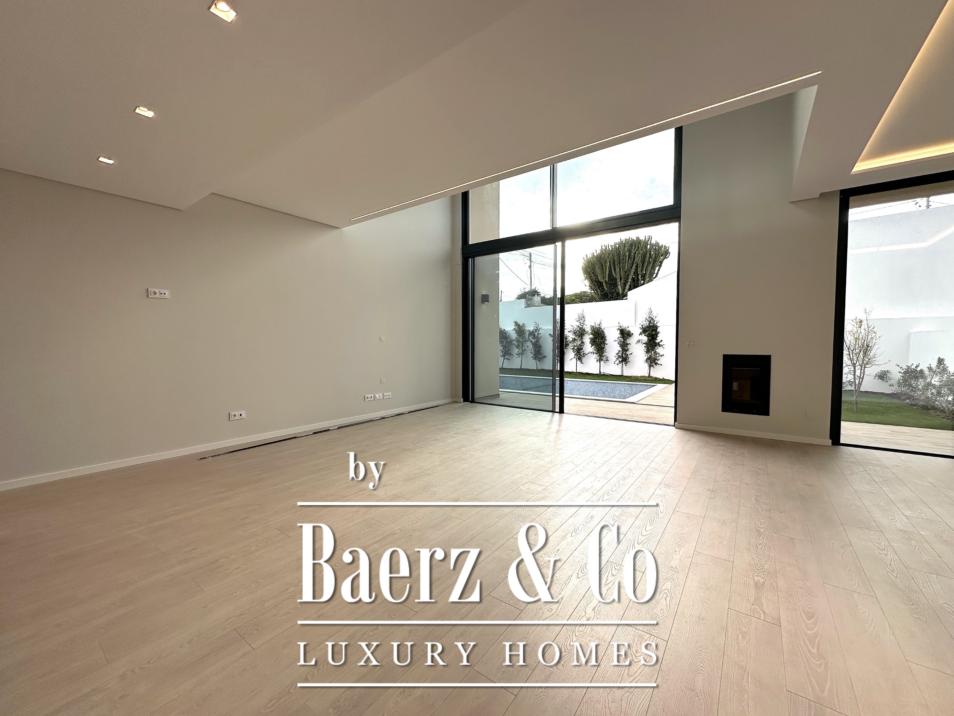 Villa Cascais stands as a discreet statement of modern architecture within an exclusive closed condominium of only four units. The residence offers 570 m² of living space and a plot measuring 2,743 m², creating a rare sense of privacy close to the rhythms of Cascais. This villa features four bedrooms and six bathrooms, its design anchored by a 62 m² living room seamlessly connected to a contemporary kitchen, ideal for gatherings where light is the central element. The ground floor includes a tranquil suite of 12 m², while three additional suites on the lower level—measuring 27 m², 13.43 m², and 12 m²—offer generous space, high-standard finishes, and remarkable potential for personalisation.