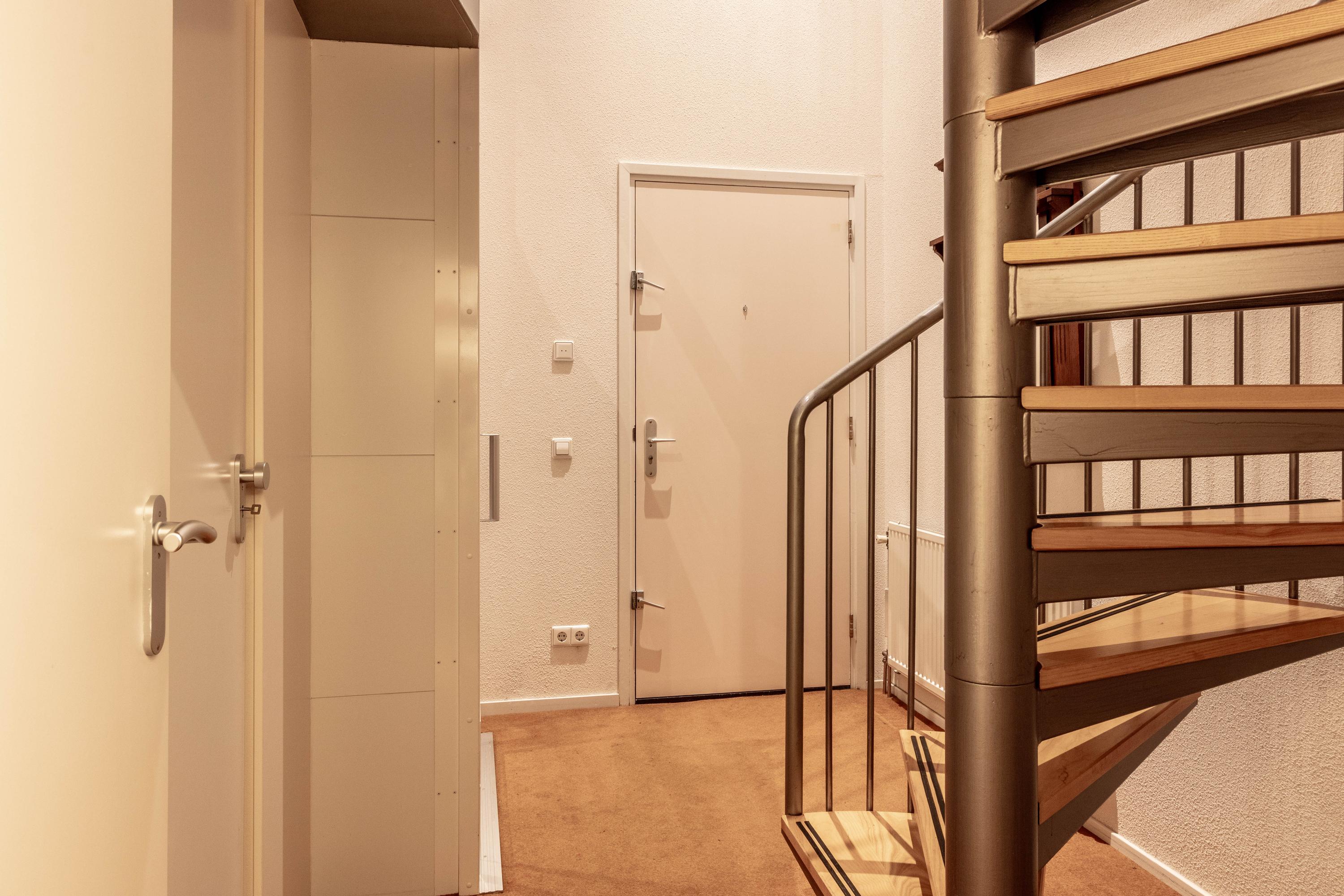 Entree van het appartement met hal, binnenlift en een praktische berging.