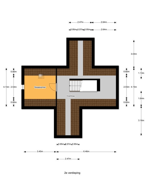 Spacious landing with skylight. Large master bedroom with built-in wardrobes and adjoining luxurious bathroom featuring a whirlpool bathtub, walk-in shower, toilet, and double vanity. Rear-facing bedroom with dormer window. Two additional bedrooms (3.14 x 3.84 m and 3.50 x 3.84 m), both with dormer windows and playful loft spaces. Second bathroom with double washbasin and walk-in shower. Separate toilet with wall-mounted WC and washbasin.