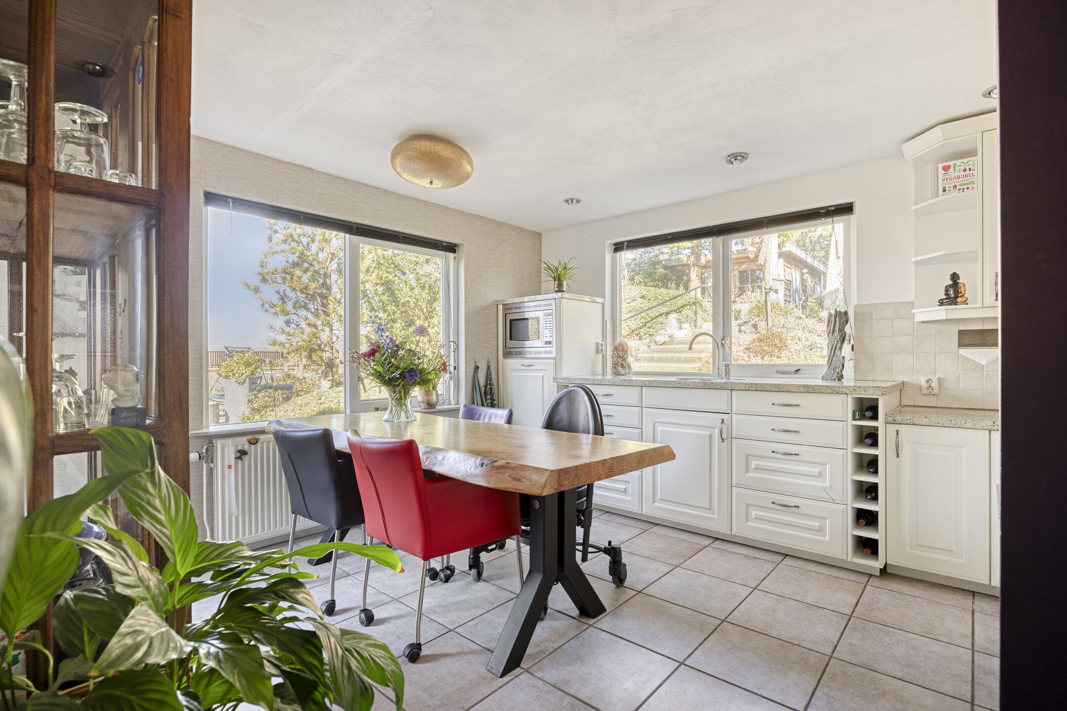 This charming home is set on a generous plot of no less than 1,640 m² and has a green energy label C. Thanks to the single-level living program, the property is suitable for a wide range of buyers. Inside, you will find a comfortable layout with a spacious living room and a bright conservatory offering beautiful views of the landscaped garden, adjoining a waterway with private mooring docks. In total, there are four bedrooms and the home benefits from extensive insulation and, among other features, air conditioning, contributing to a pleasant indoor climate in all seasons.