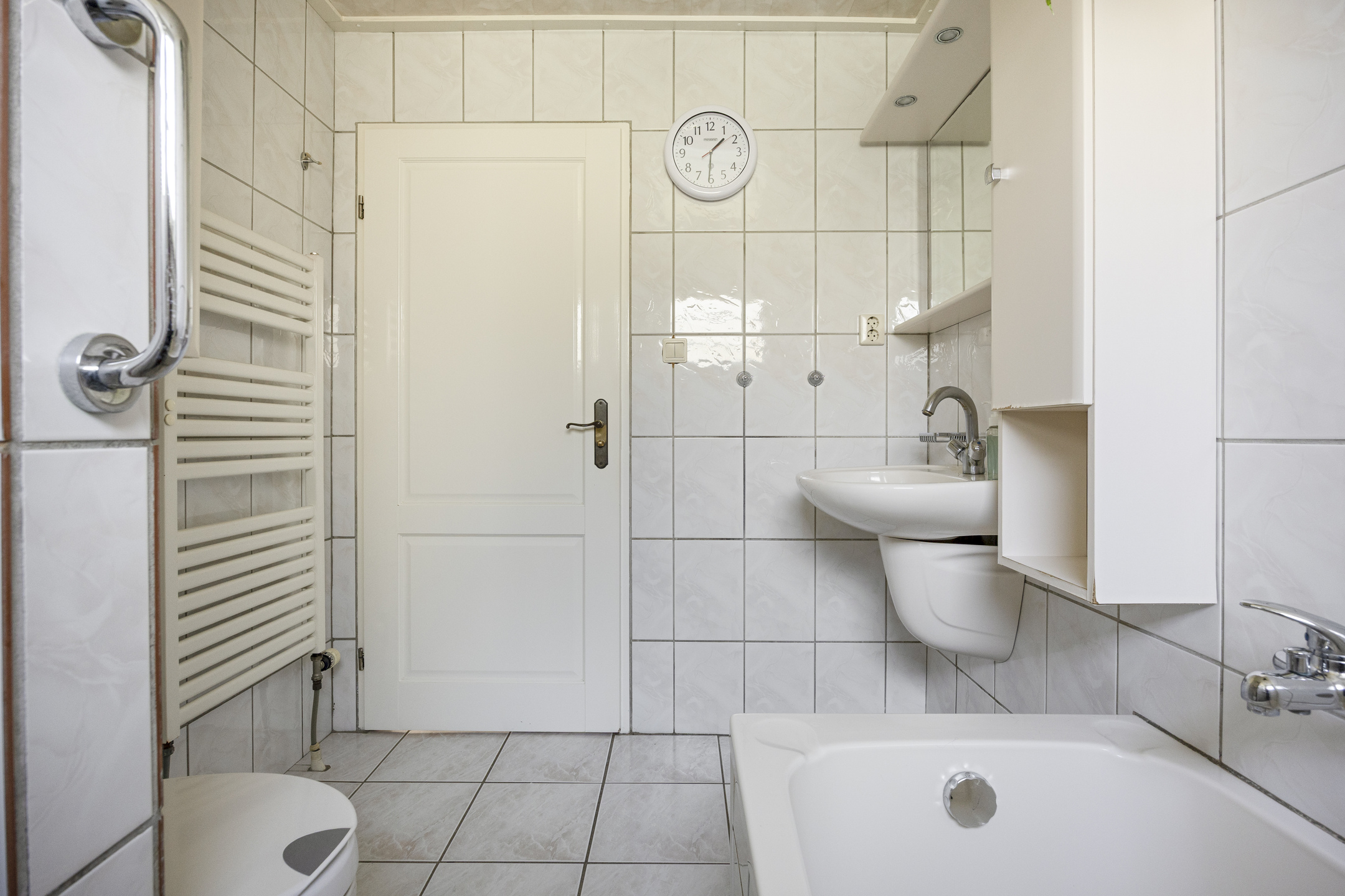 tiled toilet with washbasin;
