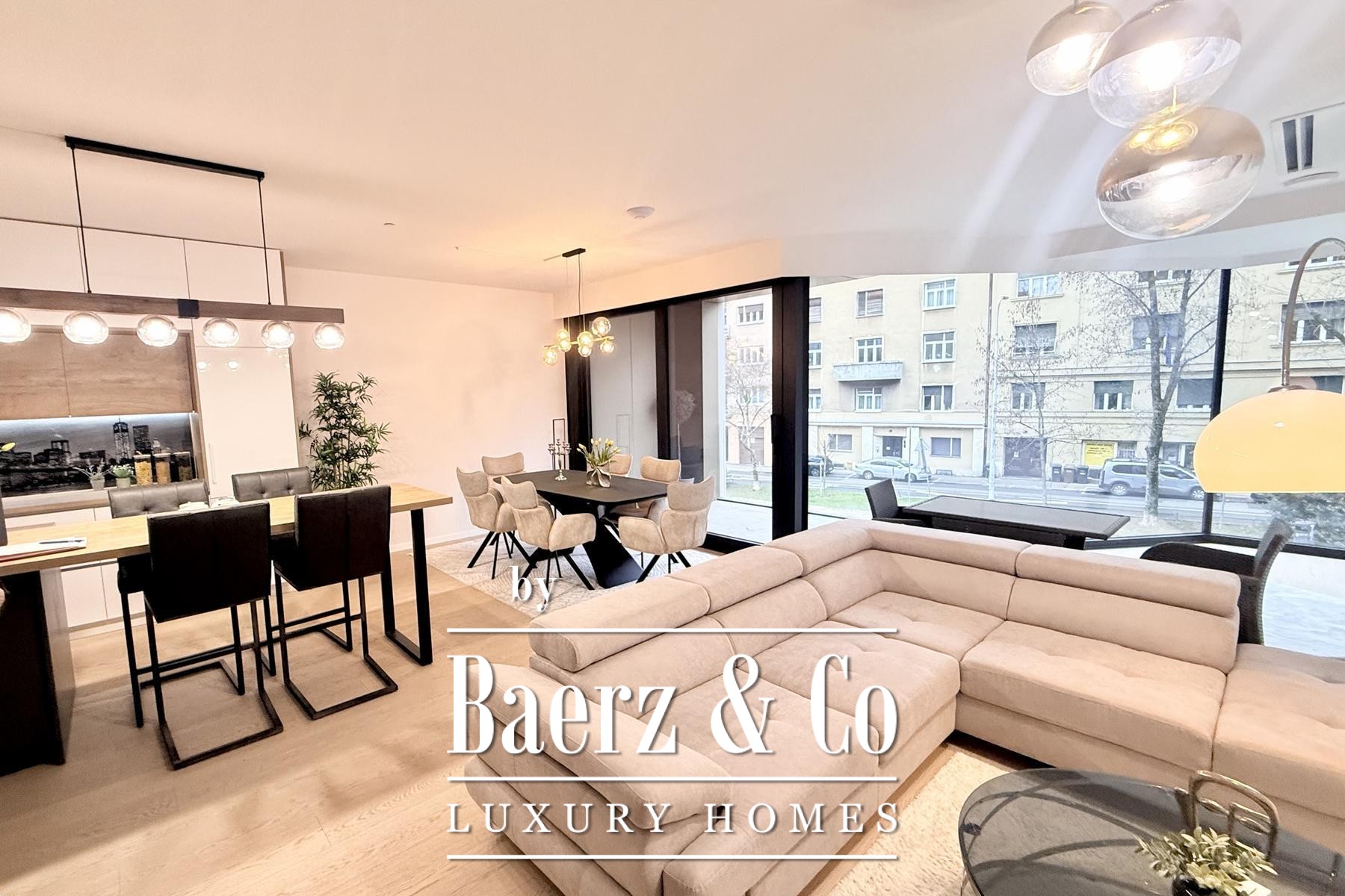 Apartment Donji Grad presents contemporary living in one of Zagreb’s most coveted residential quarters. This apartment Donji Grad, measuring 122 m² in total with two loggias of 10 m² each and an intimate garden of 20 m², is arranged for both privacy and openness to light. The modern layout includes an entrance hall, guest toilet, a spacious living room that merges with dining and kitchen, and a covered loggia for seamless indoor-outdoor transitions. Two bedrooms offer restful separation, with direct loggia access from one room and a well-considered bathroom arrangement.