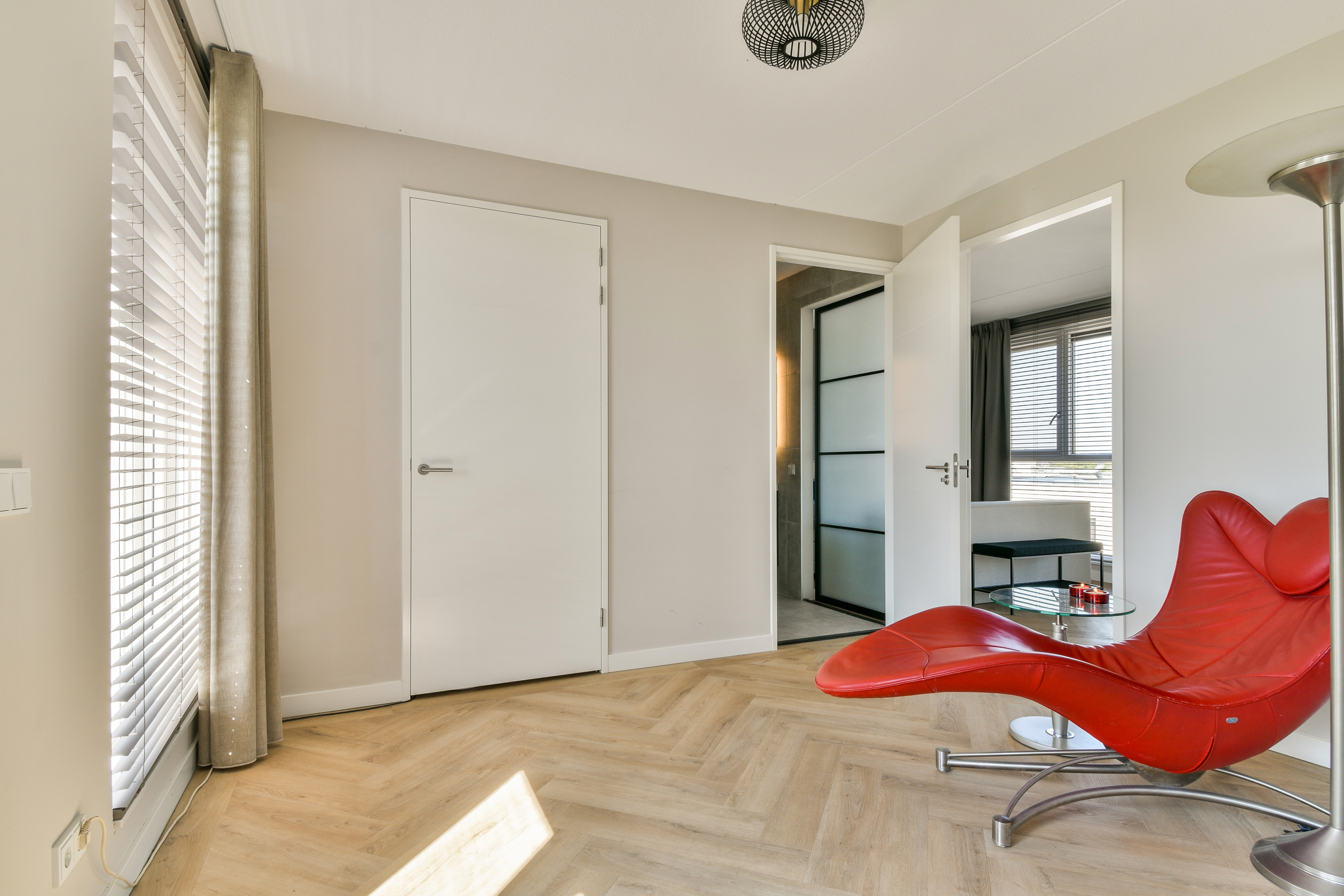 Third floor: master bedroom with en-suite bathroom and access to a spacious rooftop terrace with stunning views over the Stadswerven area.