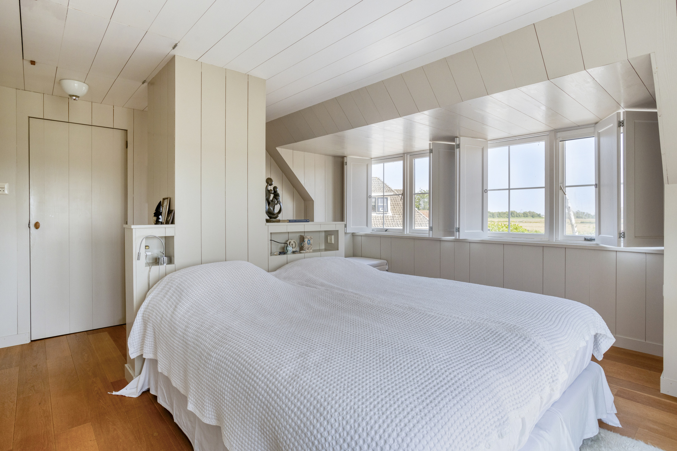 Located in the idyllic village of Driehuizen, in the heart of the De Eilandspolder nature reserve, this atmospheric detached home consists of a charming front house dating from 1957 and a spacious rear extension from 1977, which was completely renovated in 2004. The exterior cladding is made of high-quality Red Cedar and Meranti wood. Inside, you’ll find a luxurious oak floor, handcrafted character doors, and abundant natural light from the large windows, most of which are fitted with classic shutters.