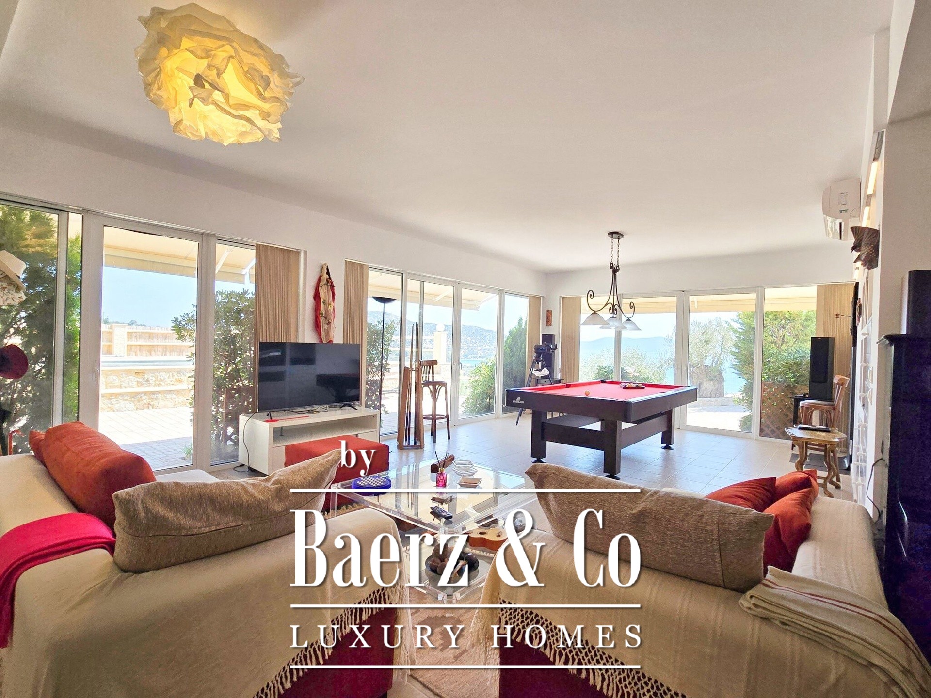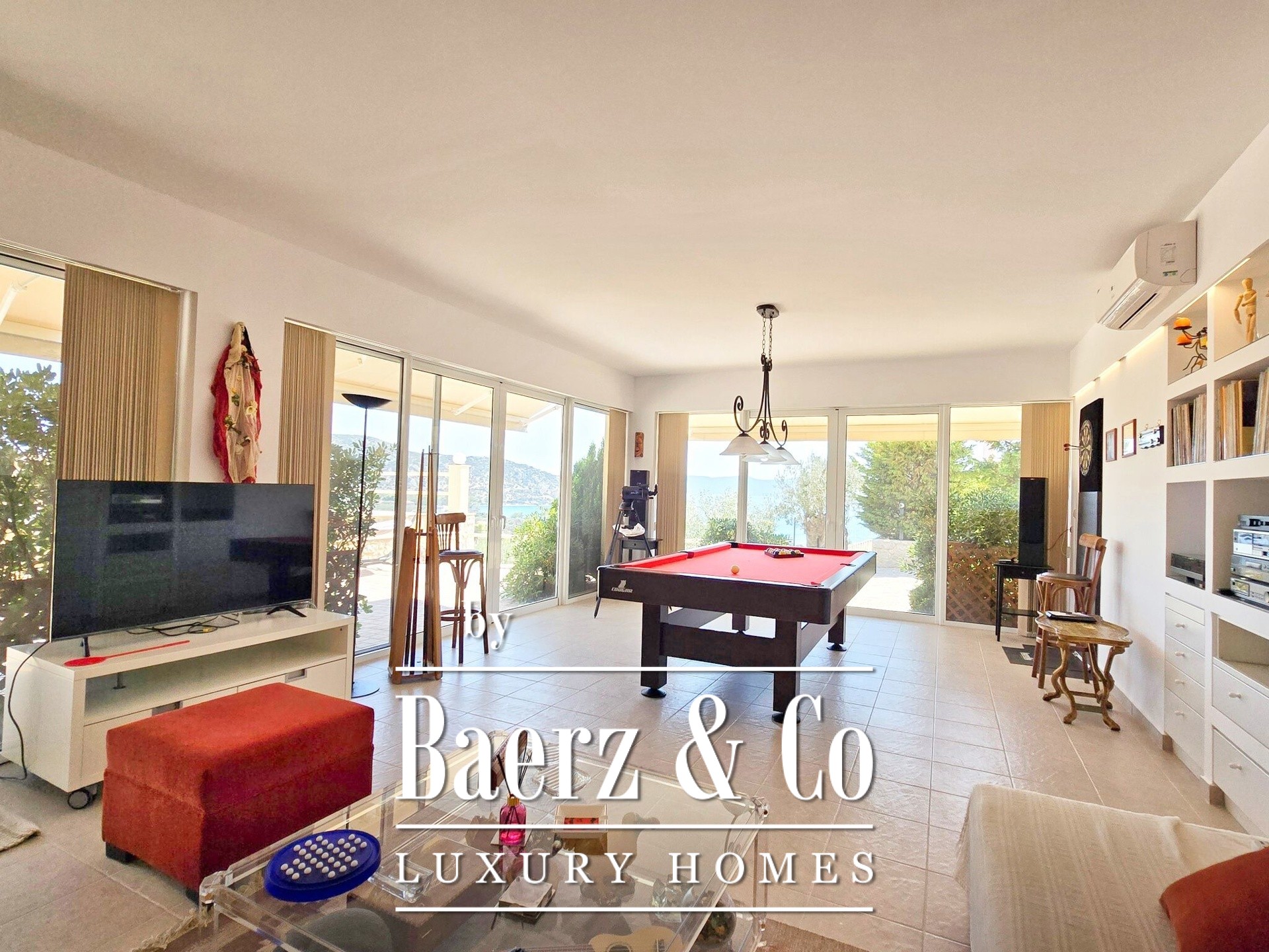 Villa Ermioni with Sea Views and Contemporary Design is set just 500 meters from the coastline in one of Ermioni’s most serene and well-kept enclaves, surrounded by exclusive holiday residences. This villa, offering 296 m² across two levels, is defined by tranquility, contemporary Mediterranean aesthetics, and panoramic sea vistas. Built on a landscaped, fully fenced plot of 2,000 m², the residence reflects a commitment to lasting quality, comfort, and understated sophistication.
