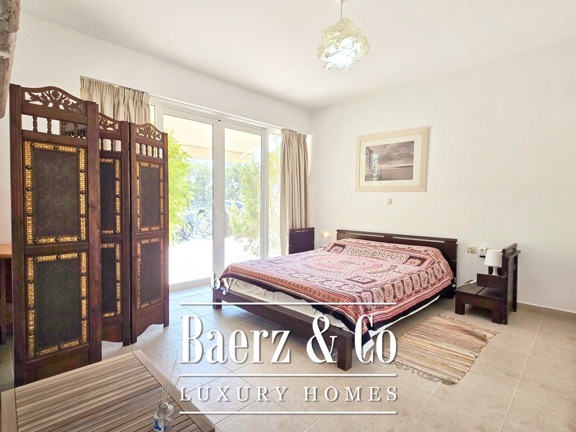 Throughout Villa Ermioni, elements such as a photovoltaic system, heat pump, air conditioning, security alarm, cameras, borehole, and double glazing ensure efficiency and peace of mind. The surrounding gardens are planted with fruit trees and ornamentals, blending stonework and cobblestone paths to encourage a relaxed Mediterranean lifestyle. This luxury villa for sale in Ermioni harmonizes quality construction, privacy, and access to Greece’s storied beaches.