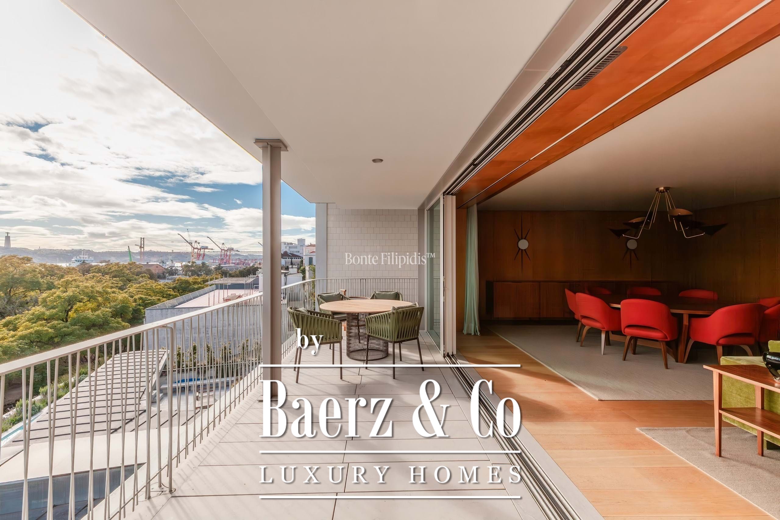 Apartment Estrela Lisbon is set in the creative enclave of Santos, known for its energy and riverside allure. This four-bedroom residence offers 248 m² of living space, where refined design and light are constant companions. A 46 m² private terrace, oriented south, connects interior and exterior, framing panoramic views of the Rio Tejo, Cristo Rei, and Largo de Santos, and offering sunlight throughout the day.