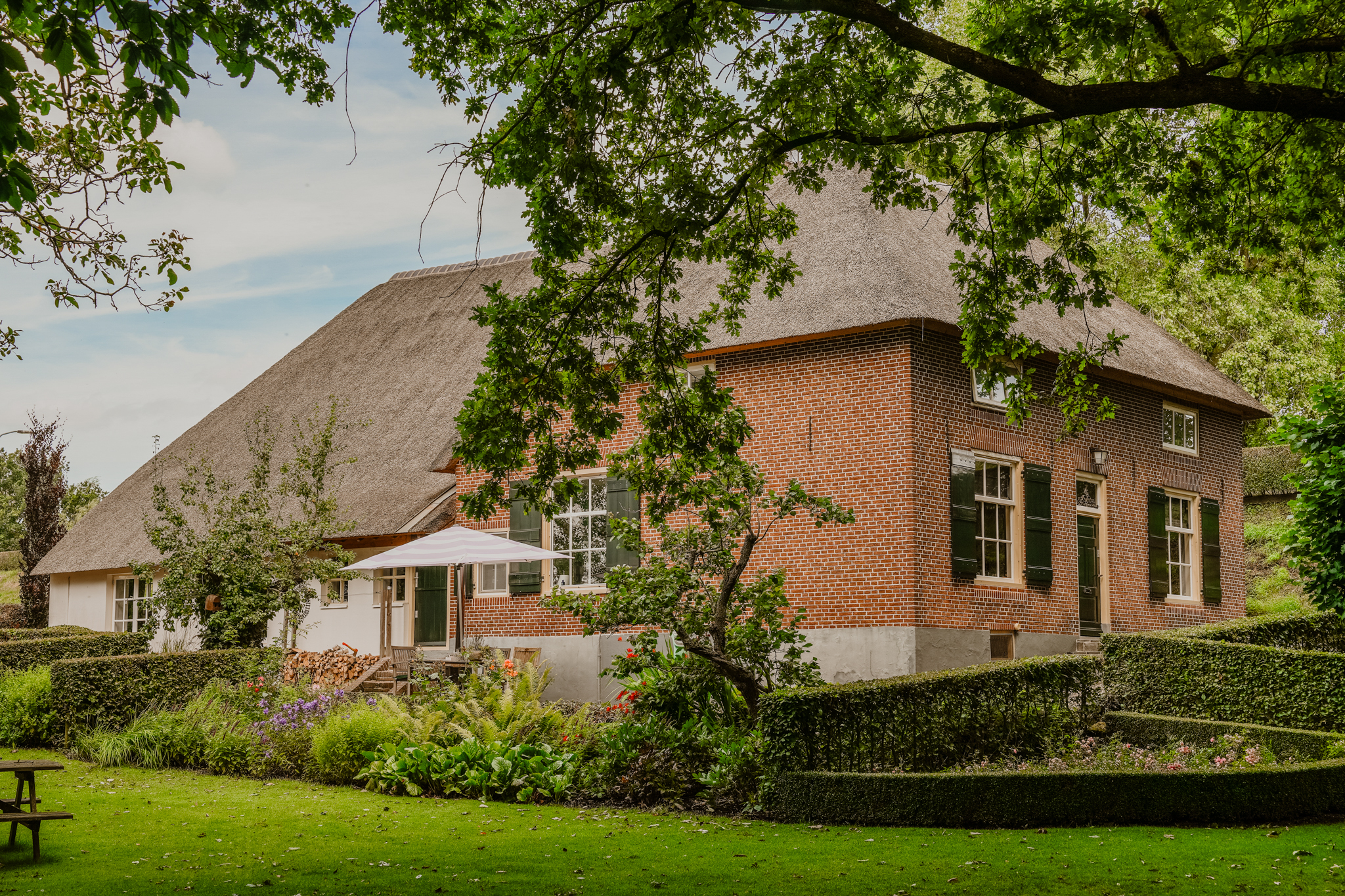 Close to the floodplains of the river Waal lies this luxurious, thatched