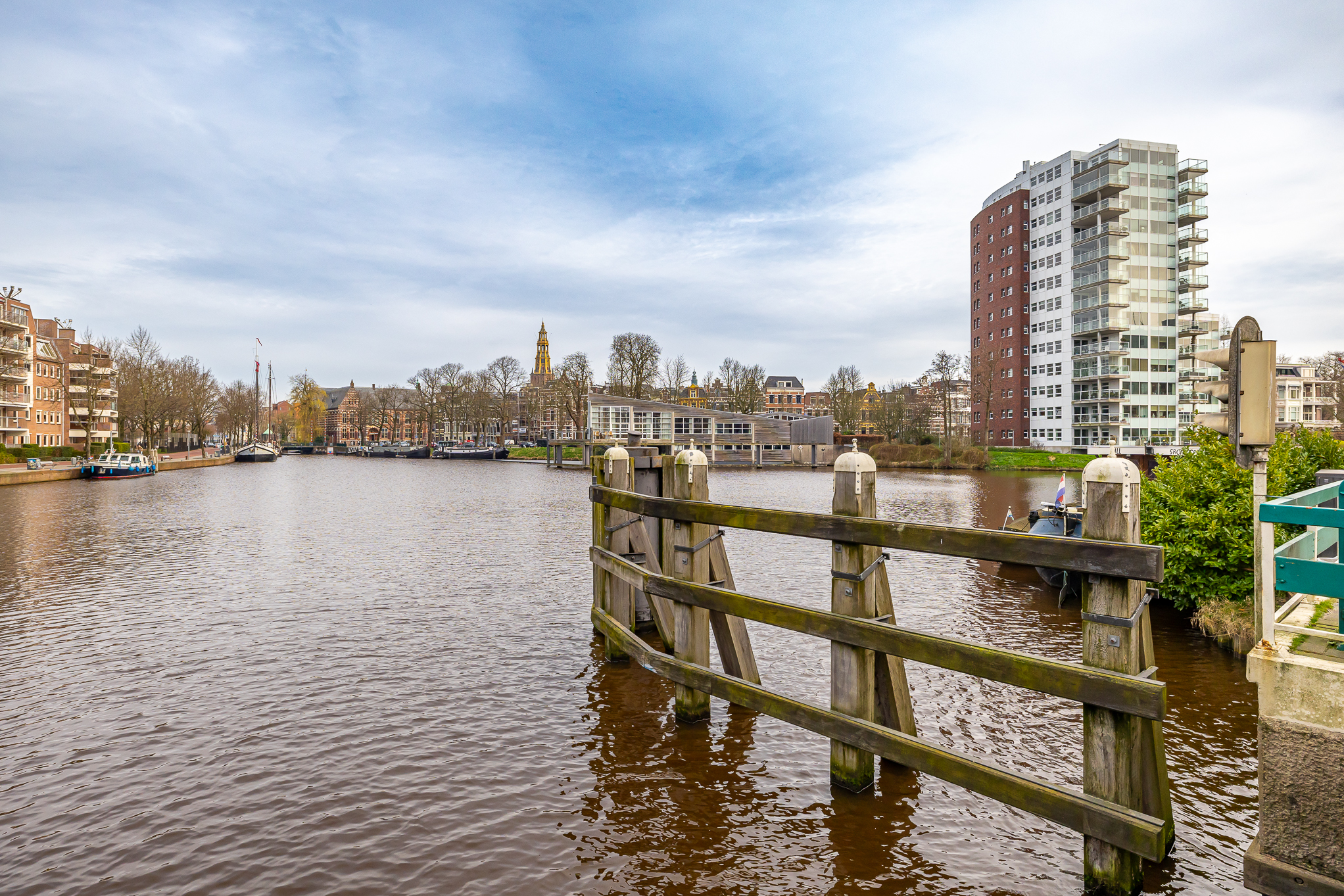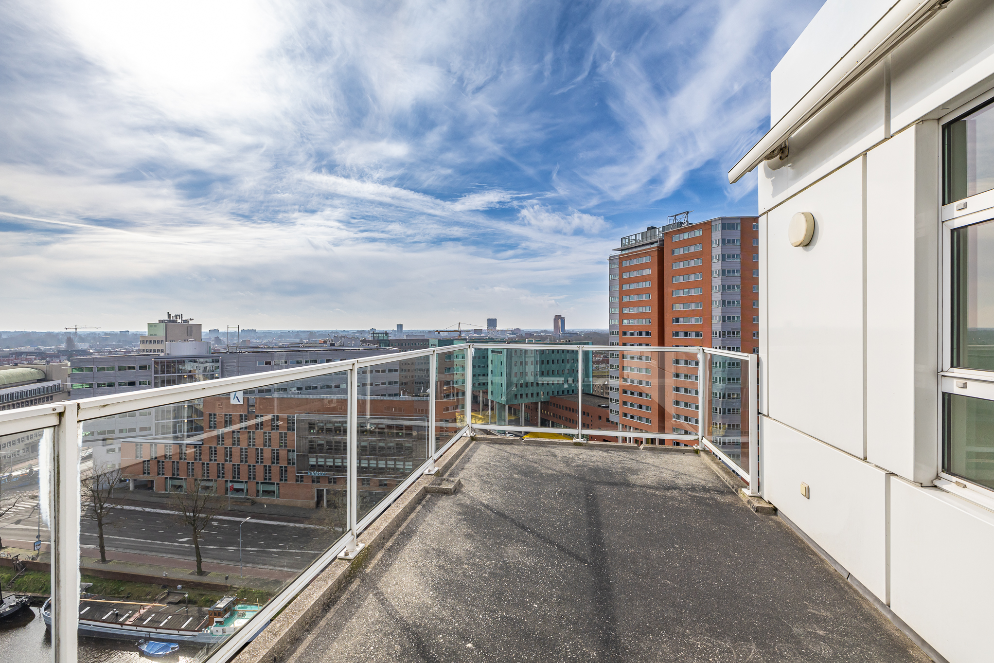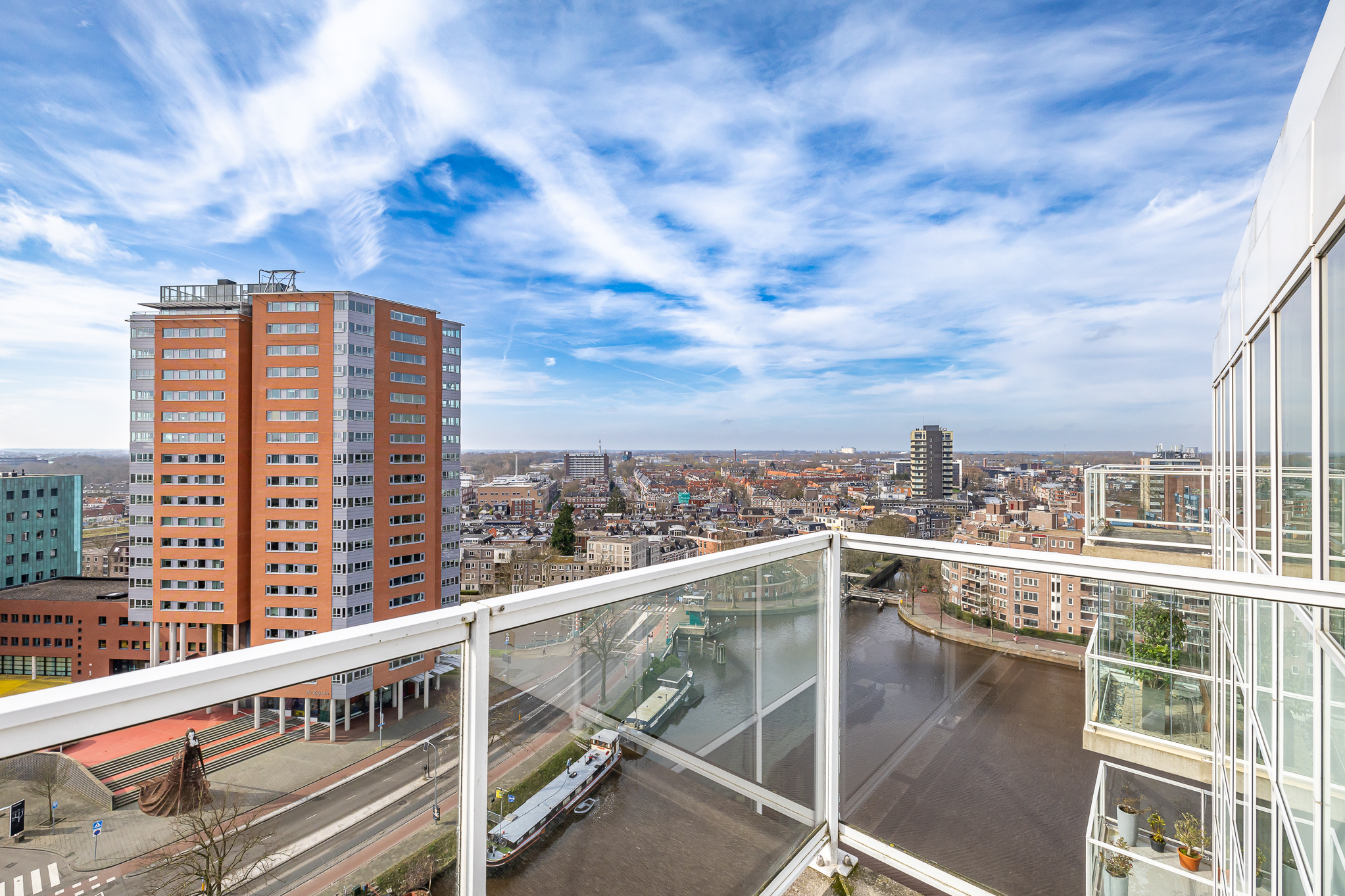 Penthouse Groningen is a rare residence offering refined urban living at the edge of the city’s historic heart. This exclusive penthouse provides 263 m² of living space, where floor-to-ceiling views extend over the Verbindingskanaal, the Zuiderhaven, and the tree-lined Praediniussingel. The property’s distinctive design, achieved by uniting two penthouses, creates a spacious layout with four bedrooms and two bathrooms, including features such as a whirlpool, sauna, and steam cabin.