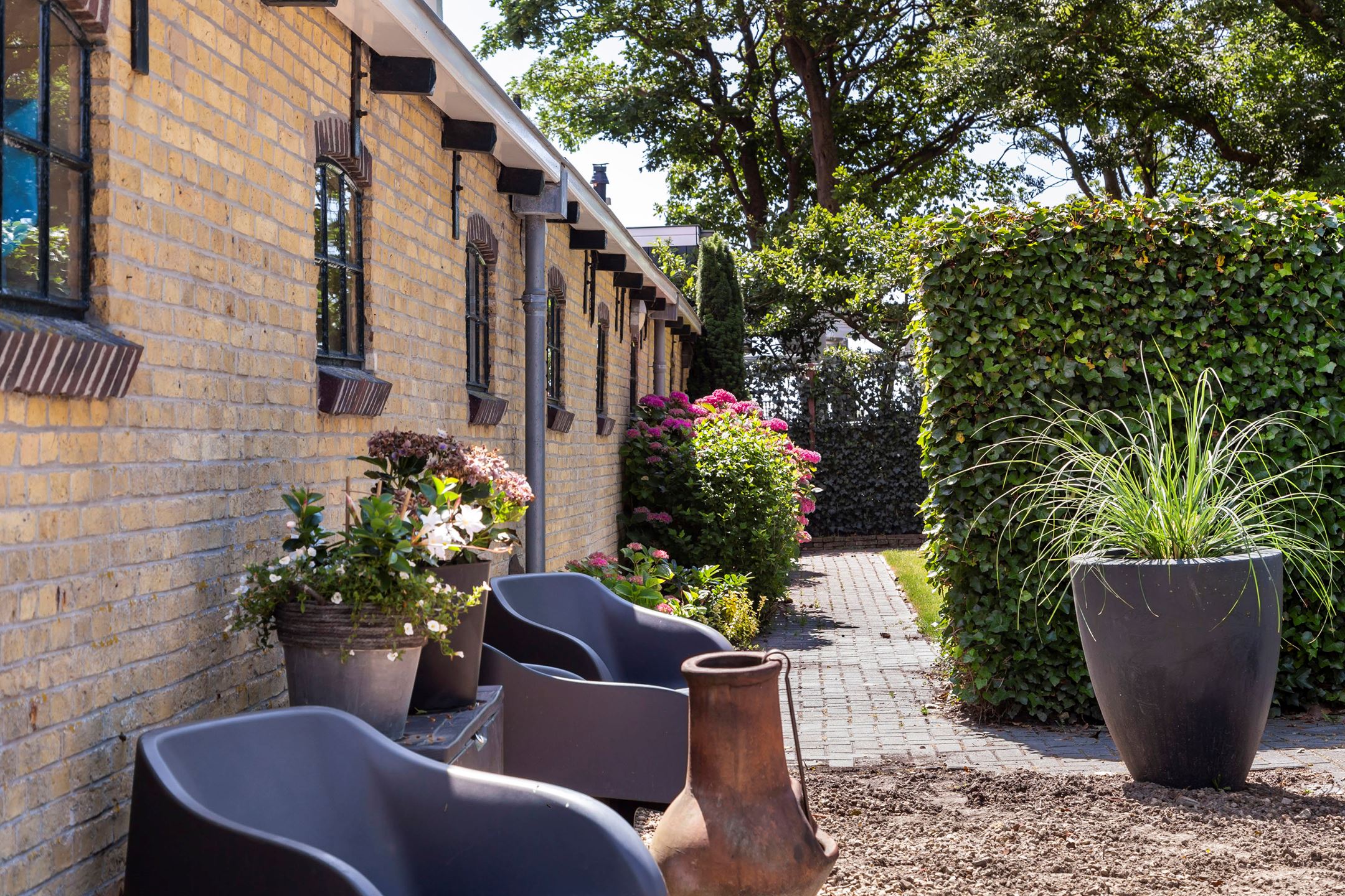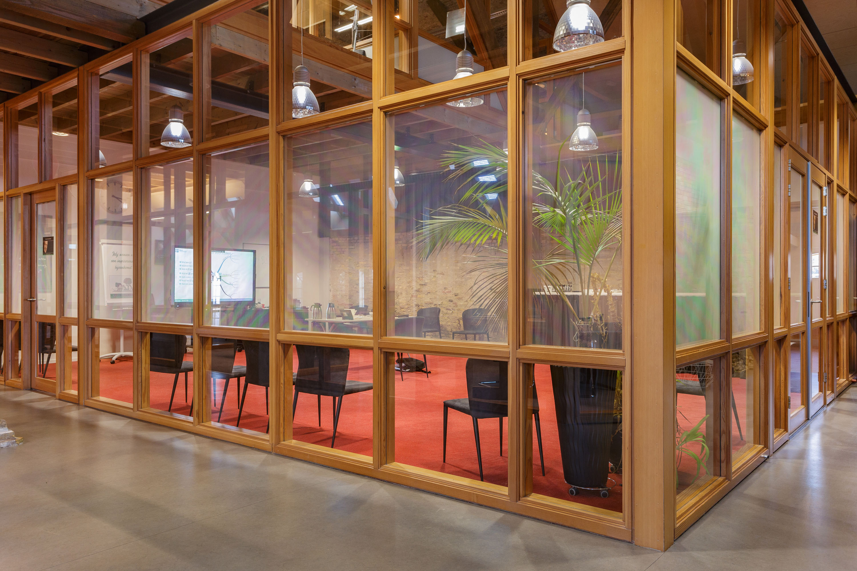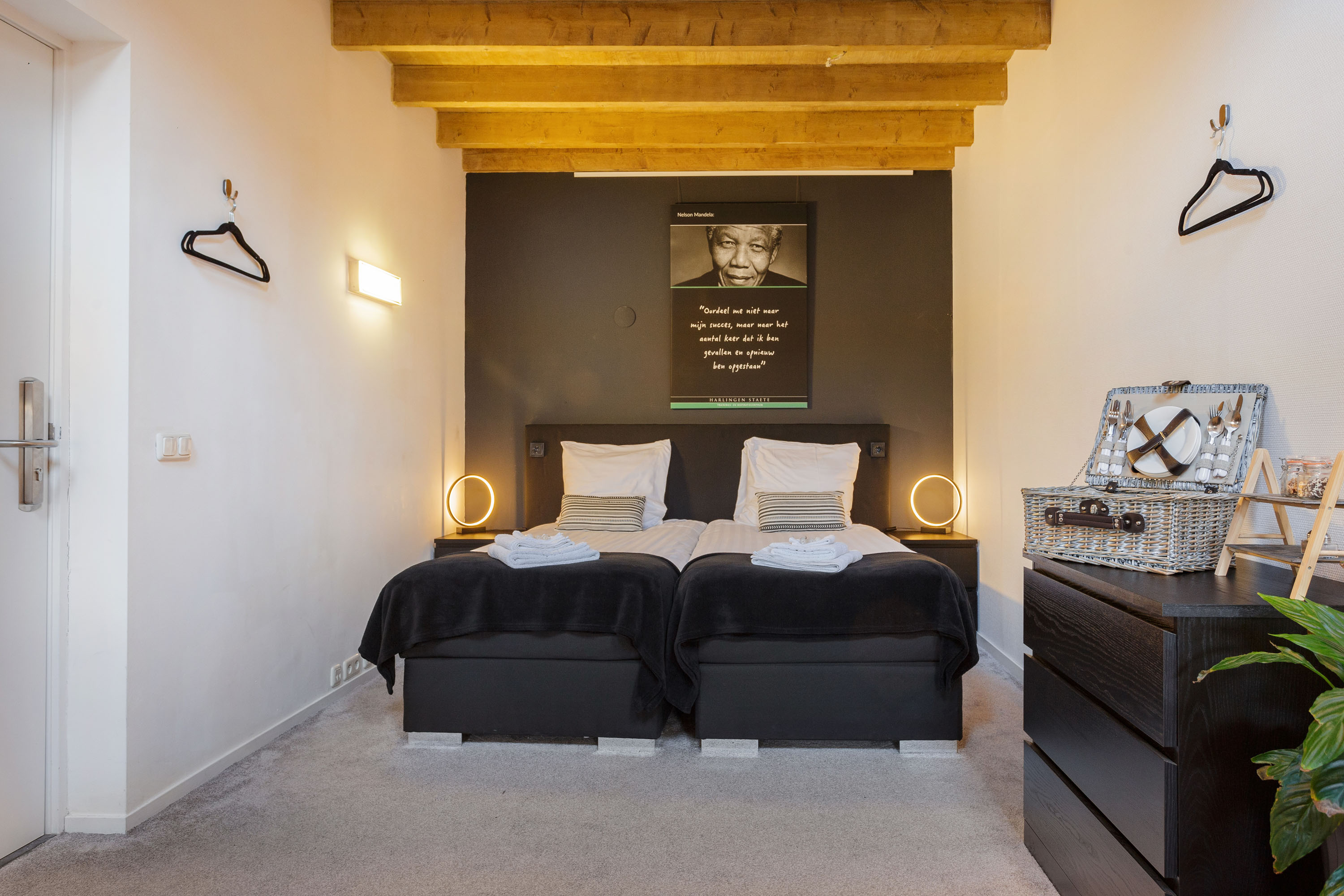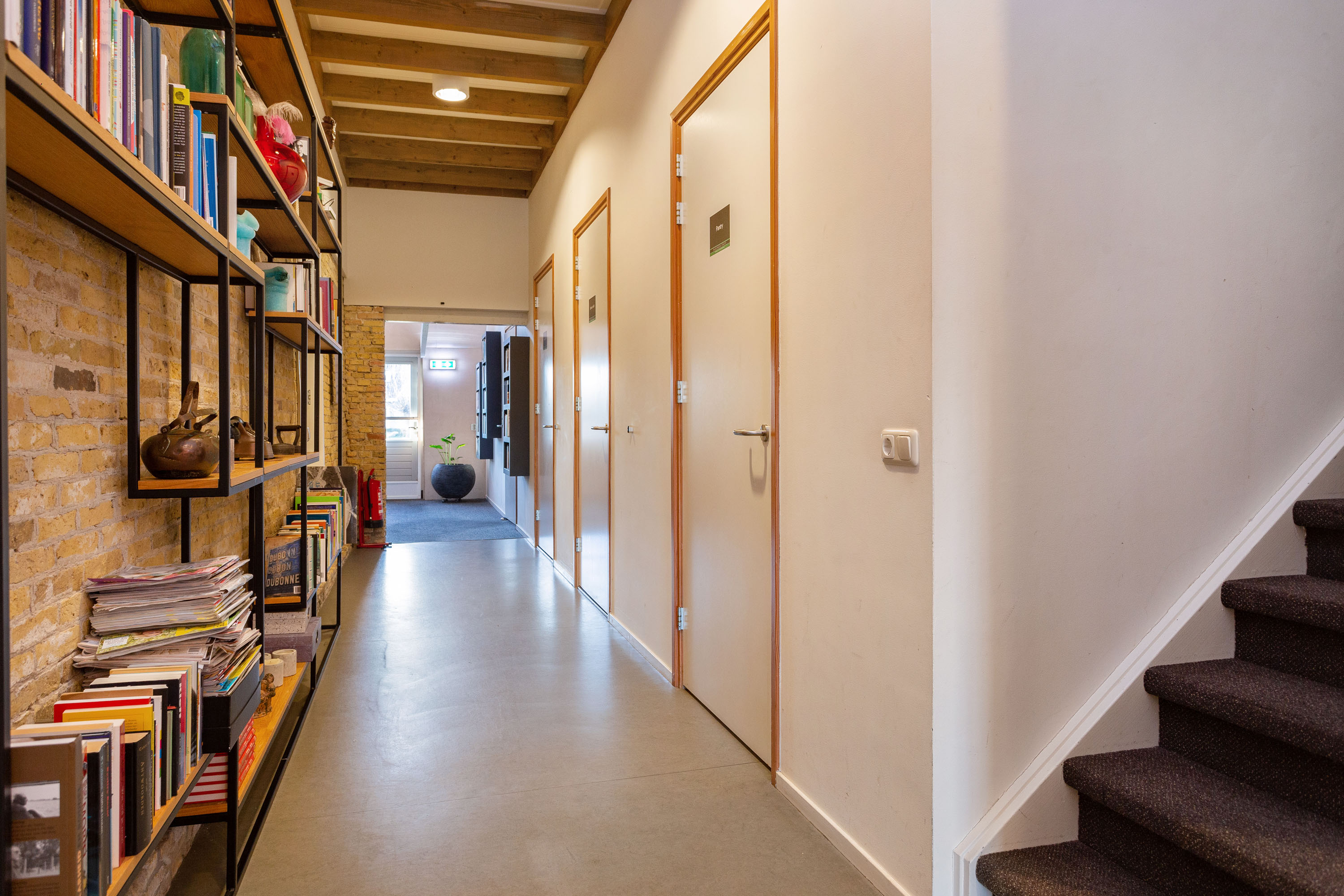 The former barn has been professionally renovated and completely modernized. Imposing open stable doors with glass entrance, is a striking feature upon arrival at Harlingen Staete. There are now 4 beautiful fully furnished rooms with en-suite bathroom. Furthermore, downstairs are 3 spacious multifunctional rooms situated around a large open-plan hall with a view of the imposing ridge in the middle of the barn. All rooms are light and atmospheric due to the use of a lot of glass, the preservation of the old stable windows and the beautiful old beams of the 6-sided part of the barn in sight. It goes without saying that all high-tech connections/wiring for internet, light, presentations etc. are present as well as a pantry and separate toilet groups.