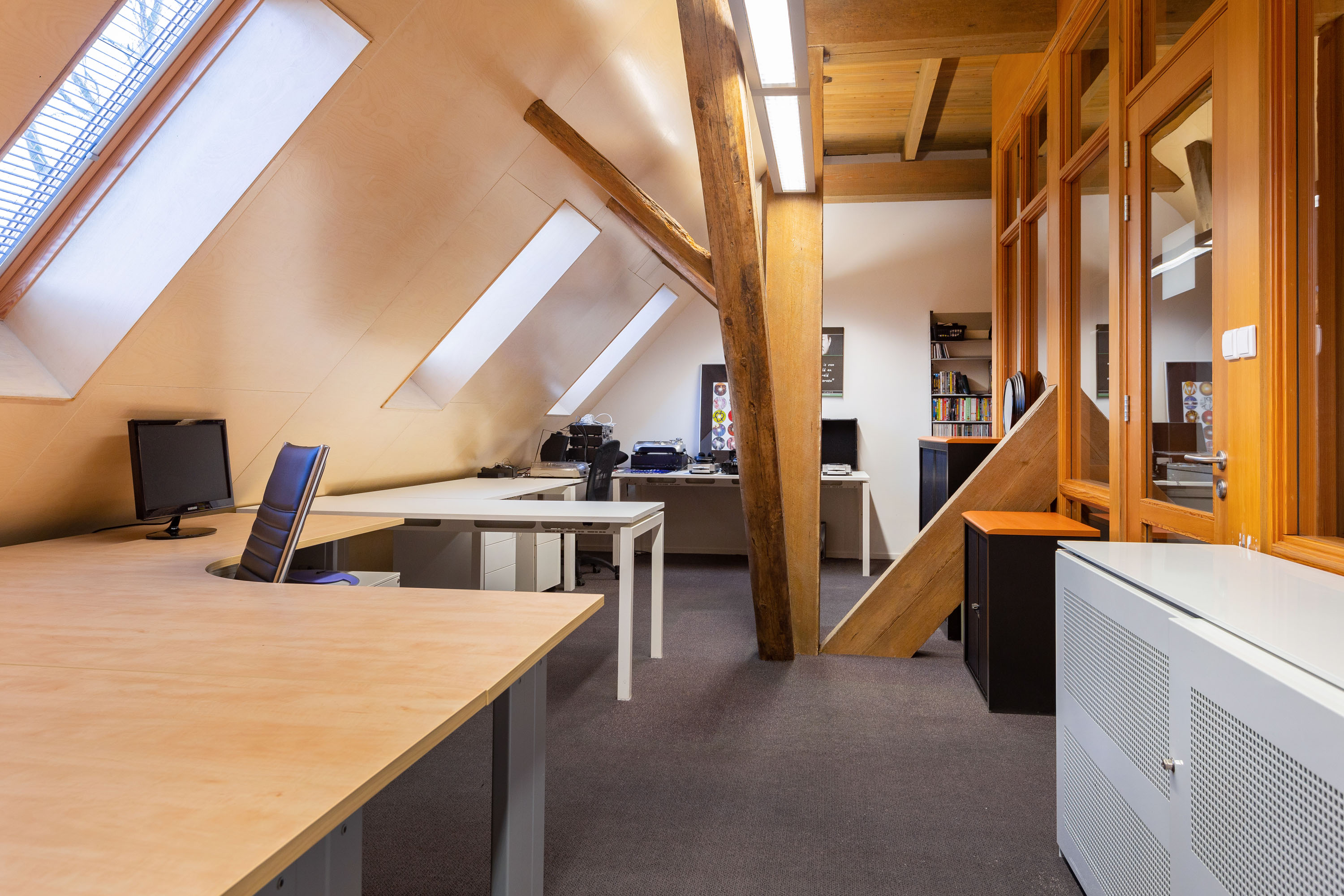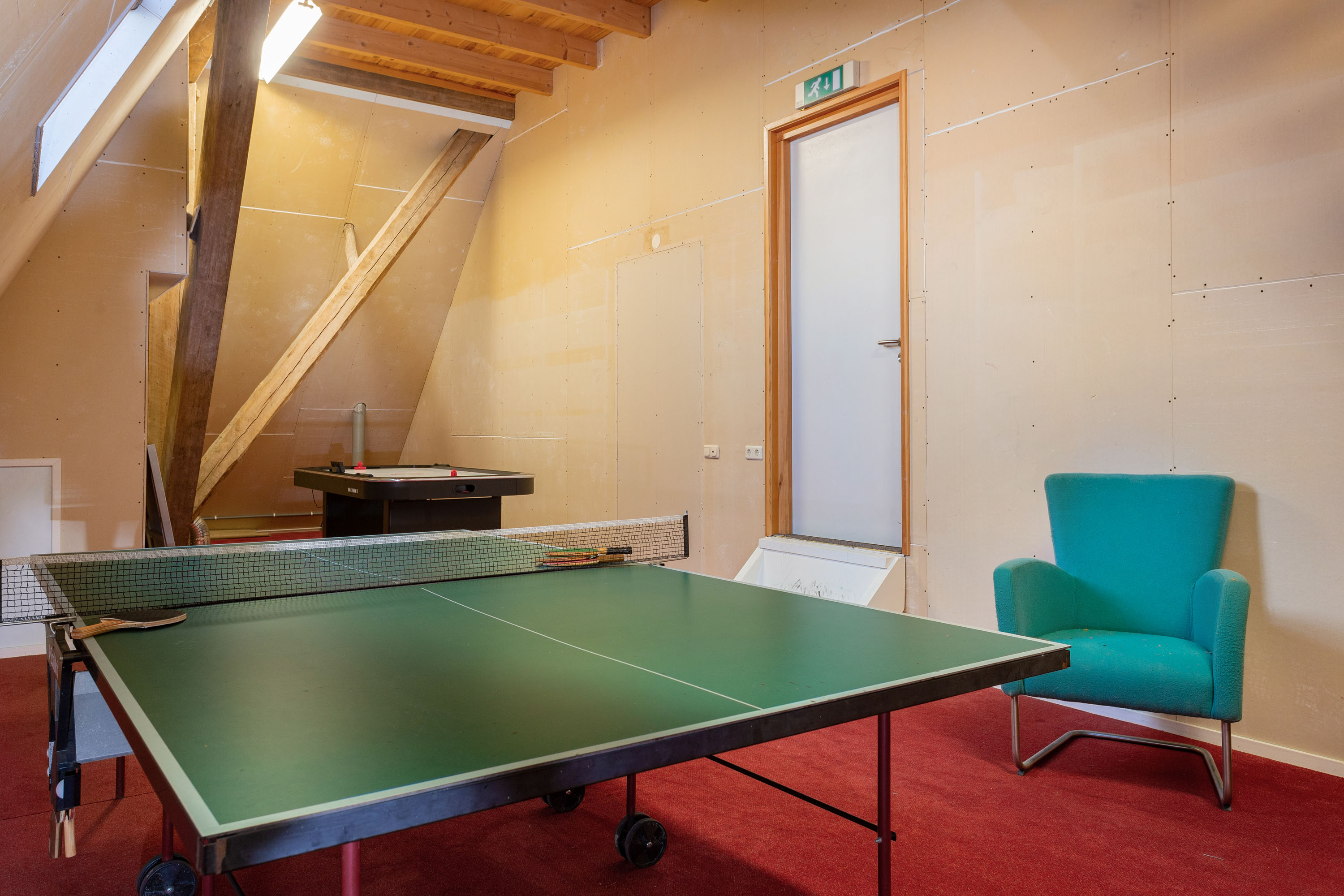 At the top of the former barn is a spacious attic with headroom. The attic can be reached via a staircase in the entertainment room on the first floor.