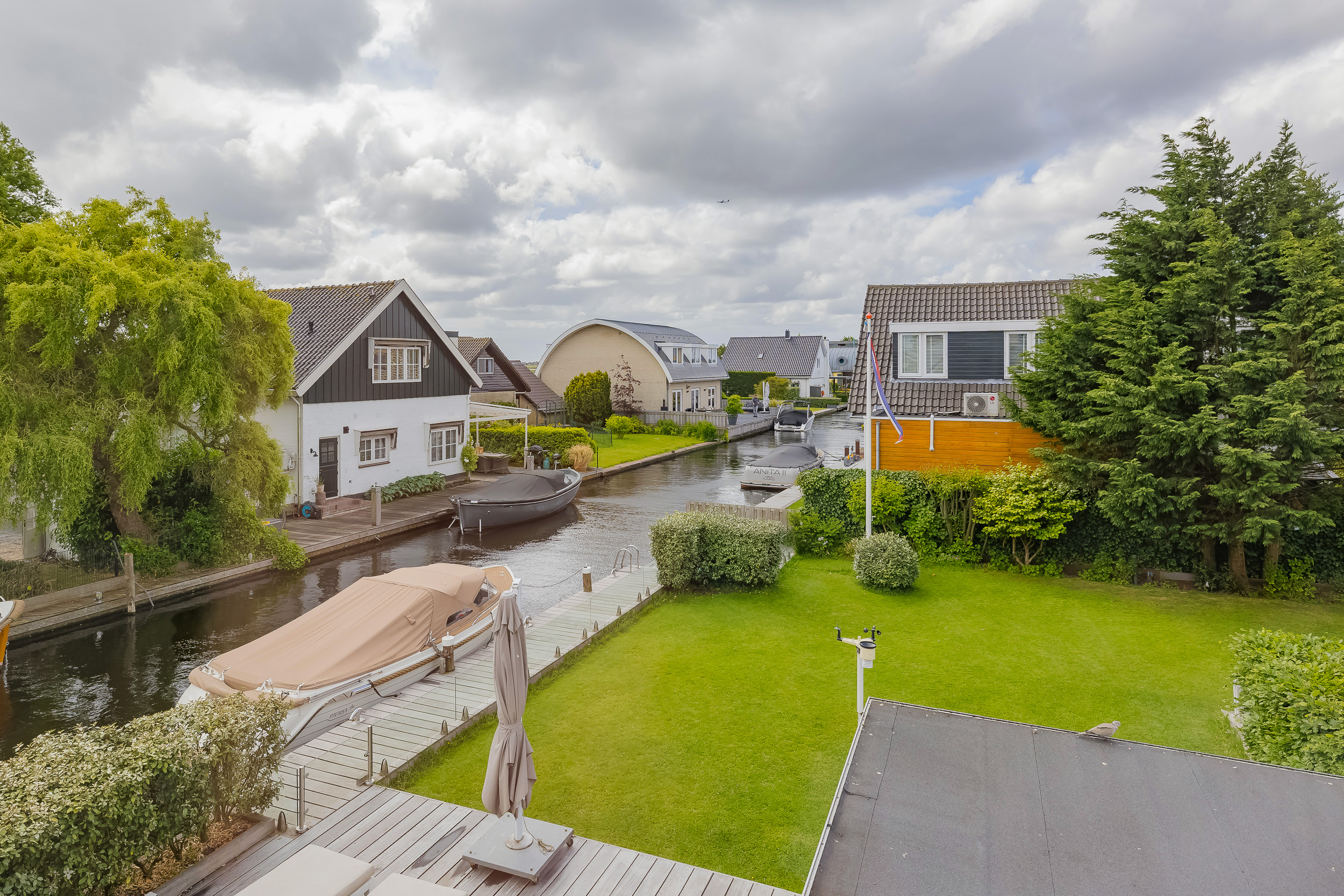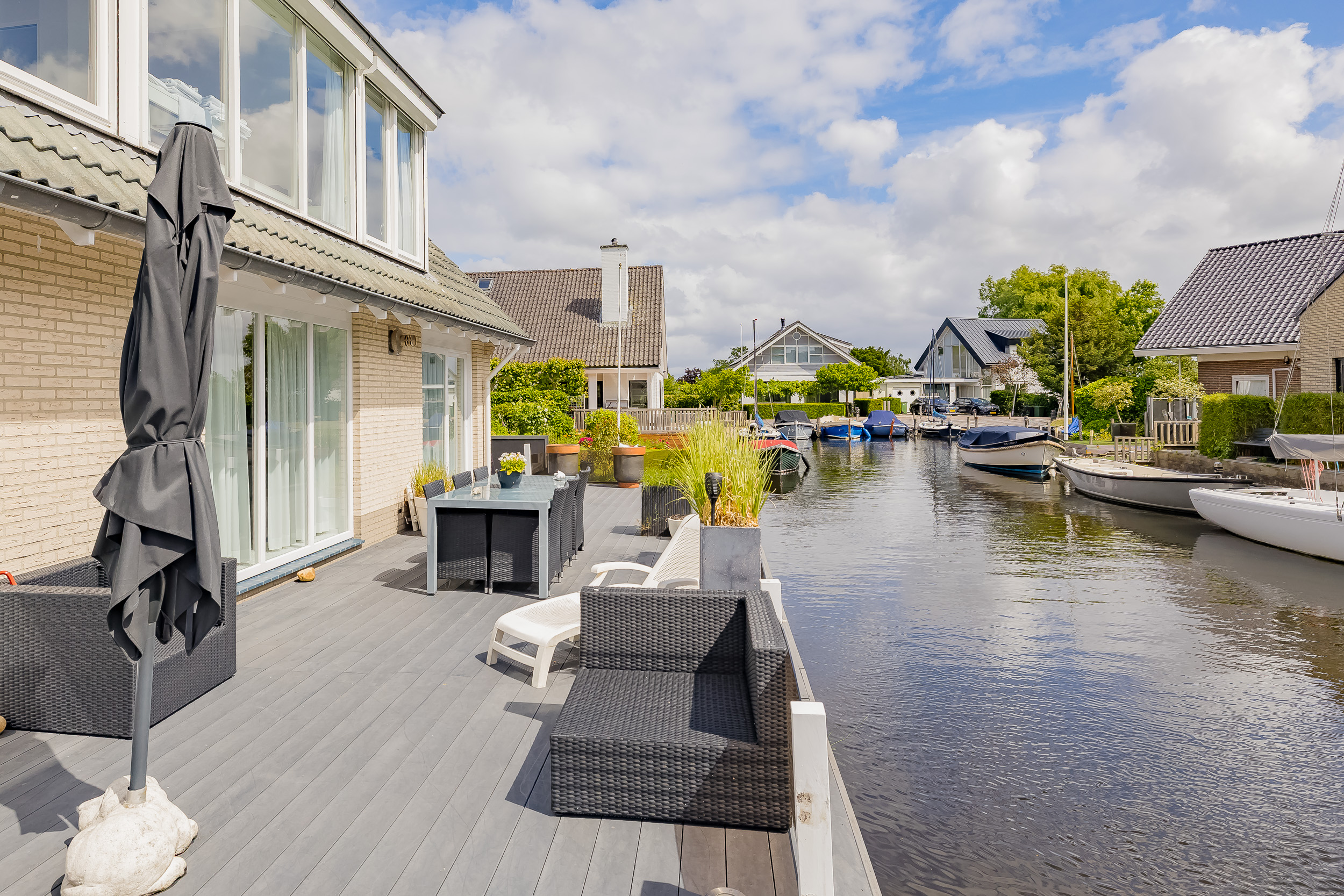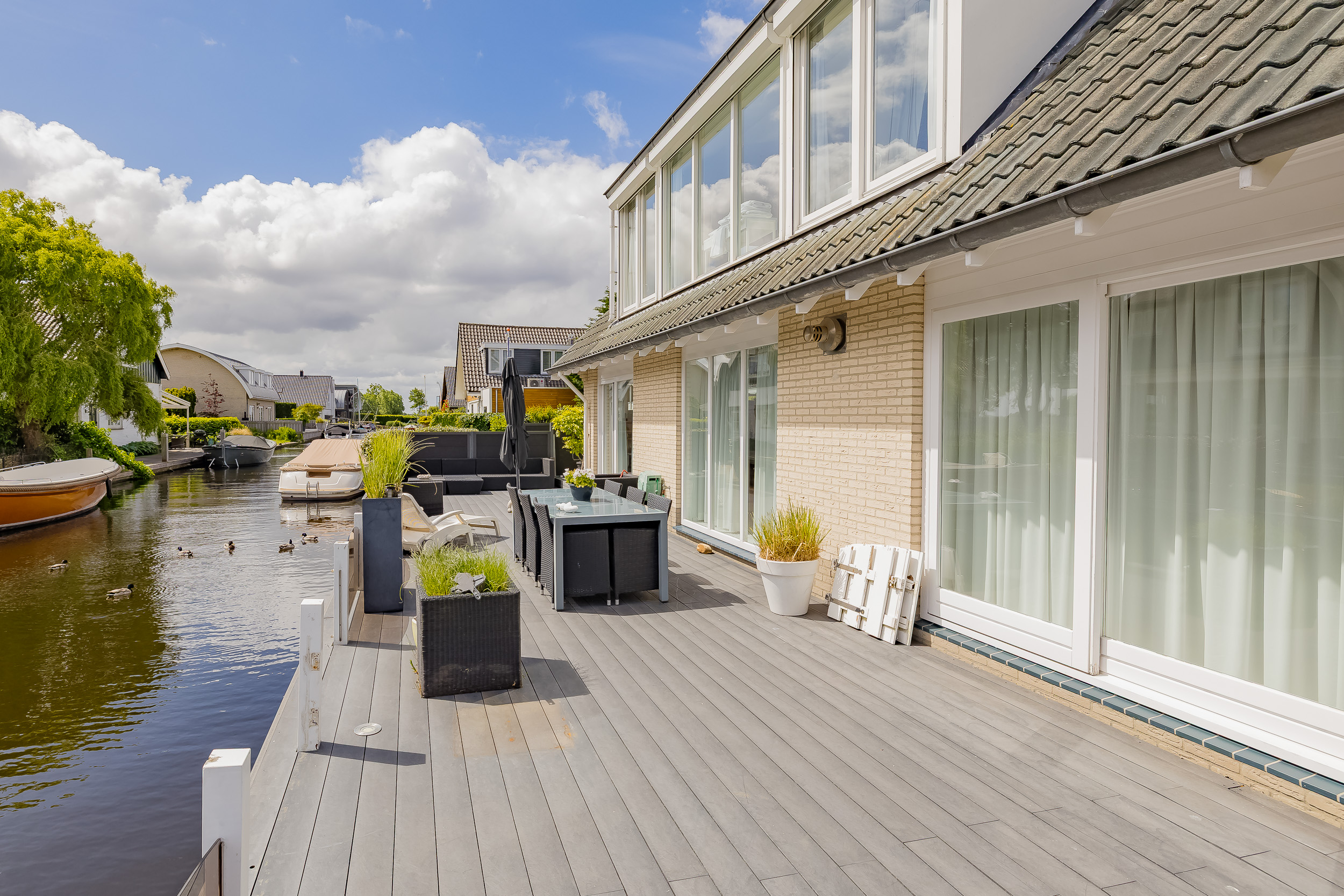 Living where others vacation? This detached villa on Kaag Island makes it possible. Located in the middle of the Kagerplassen, surrounded by water and directly on water with its own jetty, this property offers everything you are looking for: space, comfort and privacy. Here every day begins with the gentle lapping of water in the background and ends on your own deck terrace while the boats slowly sail by.