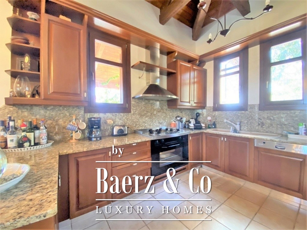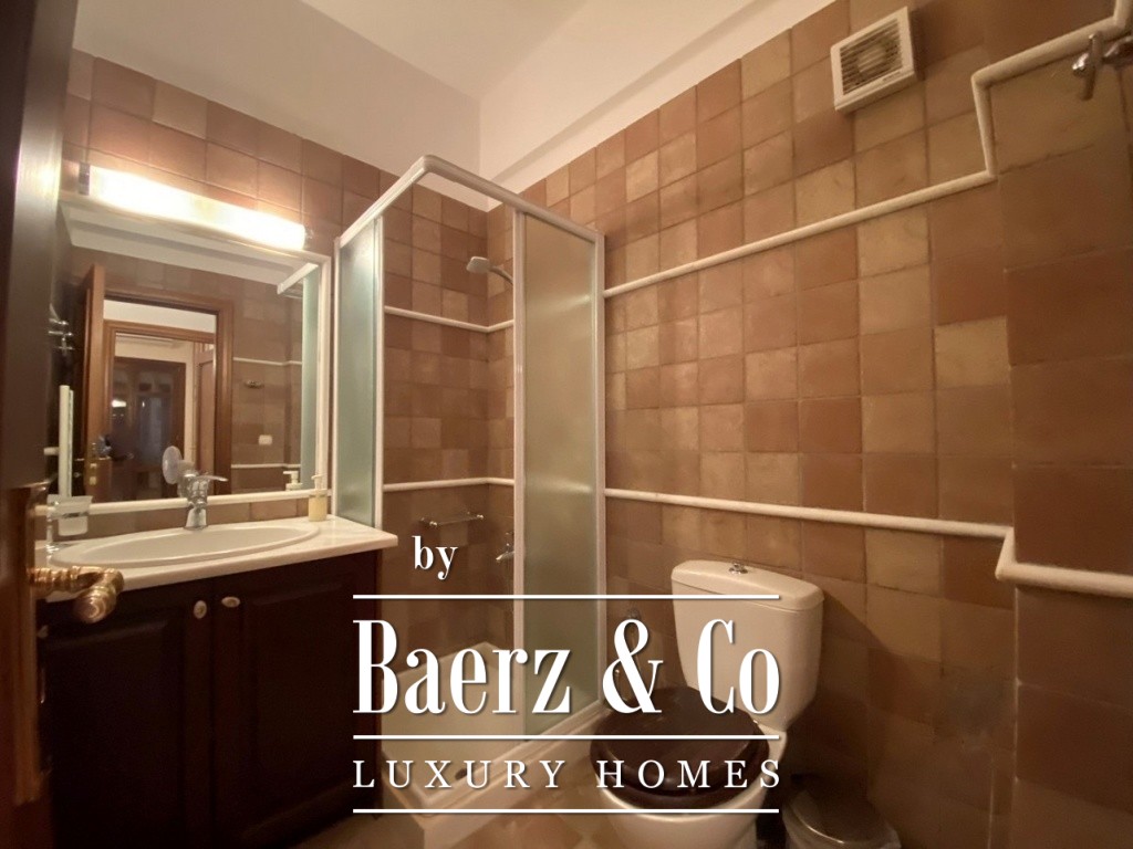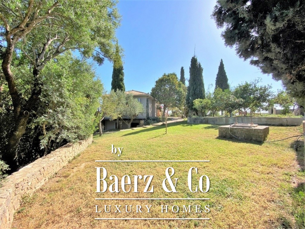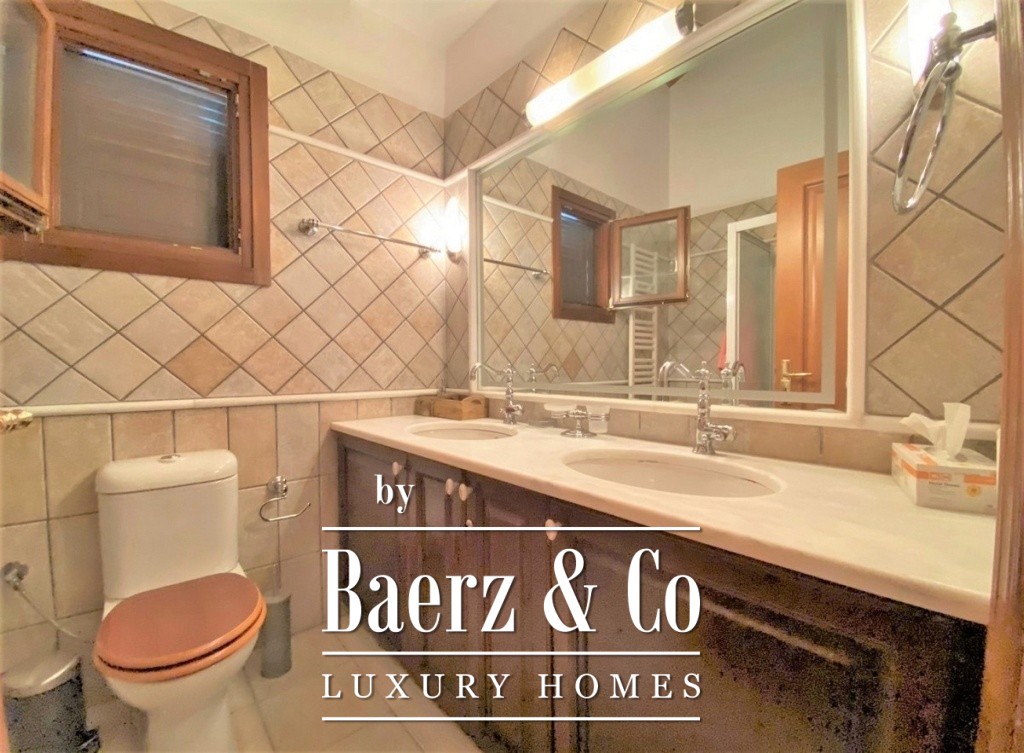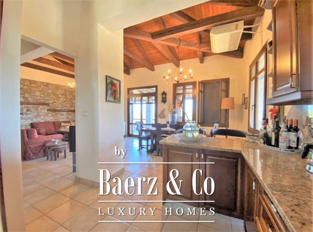 access to the terrace of the building from which one can enjoy the sea view. Continuing we find the two bedrooms, along with a bathroom and a small WC. On the lower elevation one finds two different apartments. Each has an open plan living and kitchen area, bathroom as well as bedroom areas. The surrounding area offers all amenities as it has been landscaped with a BBQ, a covered seating area by the pool and stone decorative details. This is a property of excellent construction and beauty that can combine both permanent home ownership and holiday home use.
