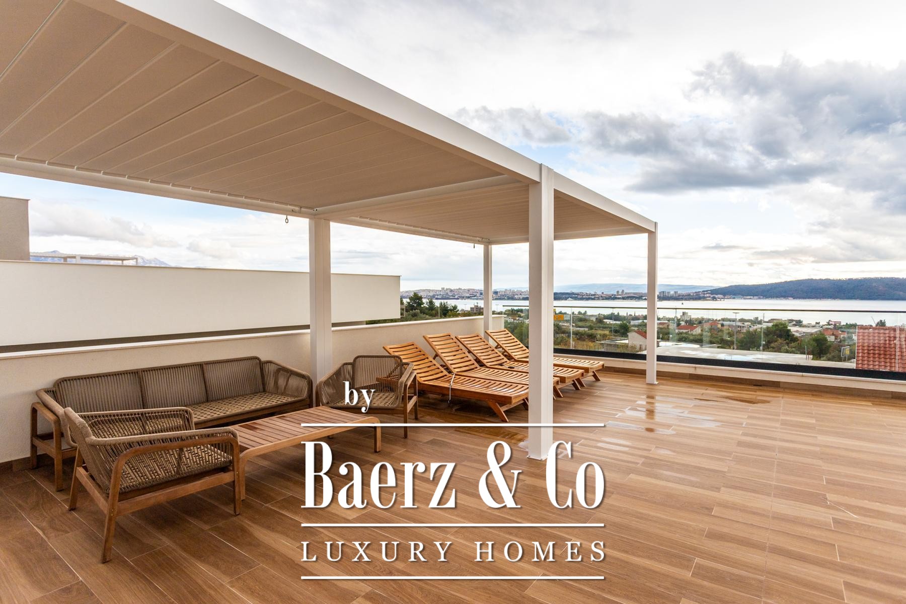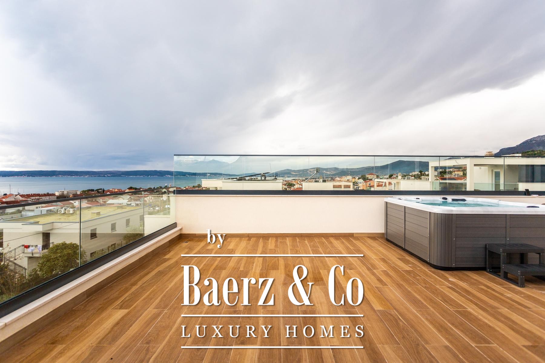Each room is fitted with its own air conditioning and underfloor heating. As a further advantage, this villa for sale in Kaštela is offered free of the usual 3 percent purchase tax due to company ownership. The result is contemporary living, oriented around measured luxury and convenience, within easy reach of Split’s urban energy and international airport connections.