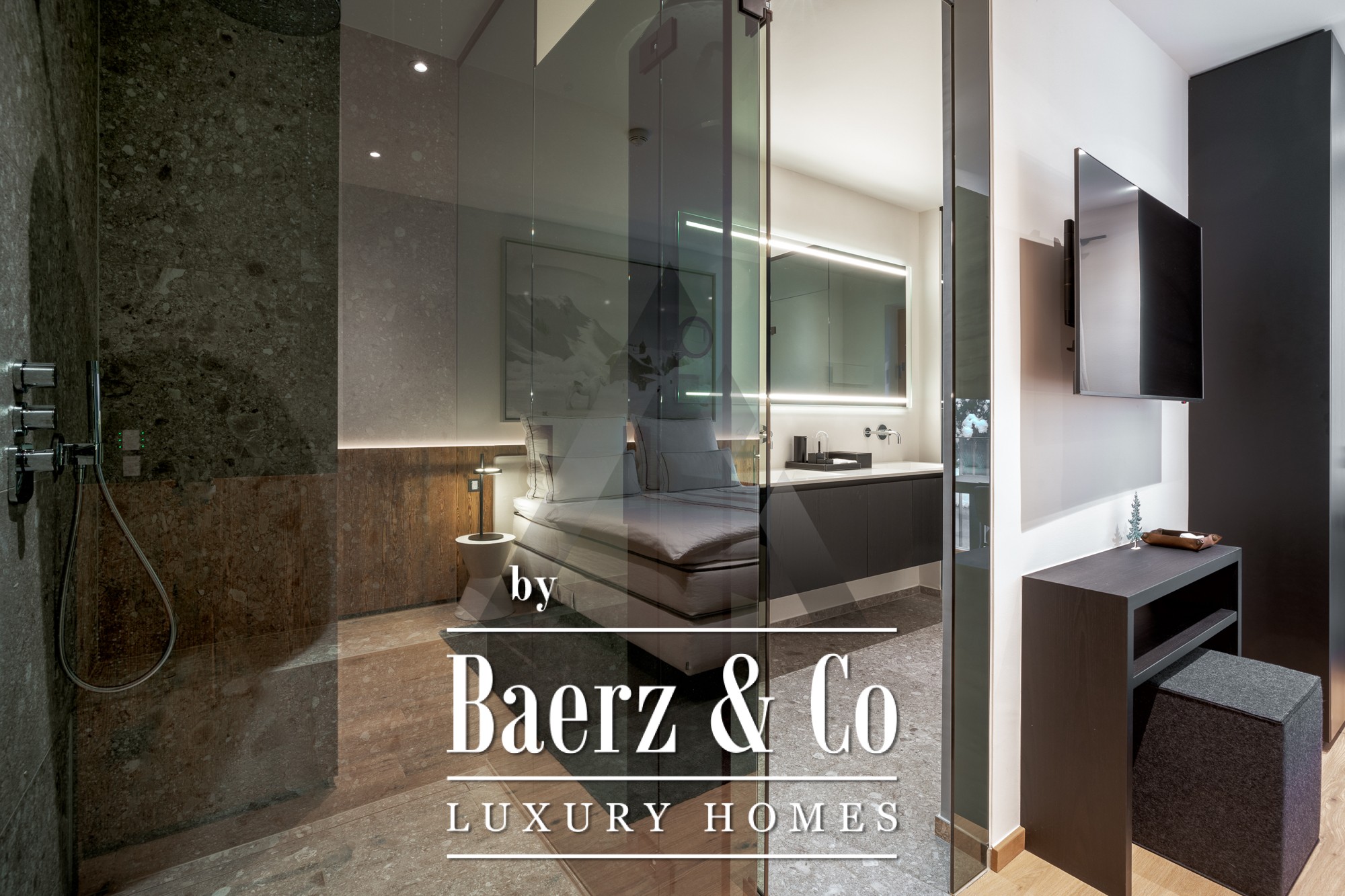 Attention to detail includes Occhio designer lighting, geothermal heating, air conditioning, and an elevator. A 2-car garage and outdoor parking accommodate both vehicles and equipment for alpine pursuits. All interior fittings, custom finishes, and furnishings curated by a renowned designer are included.