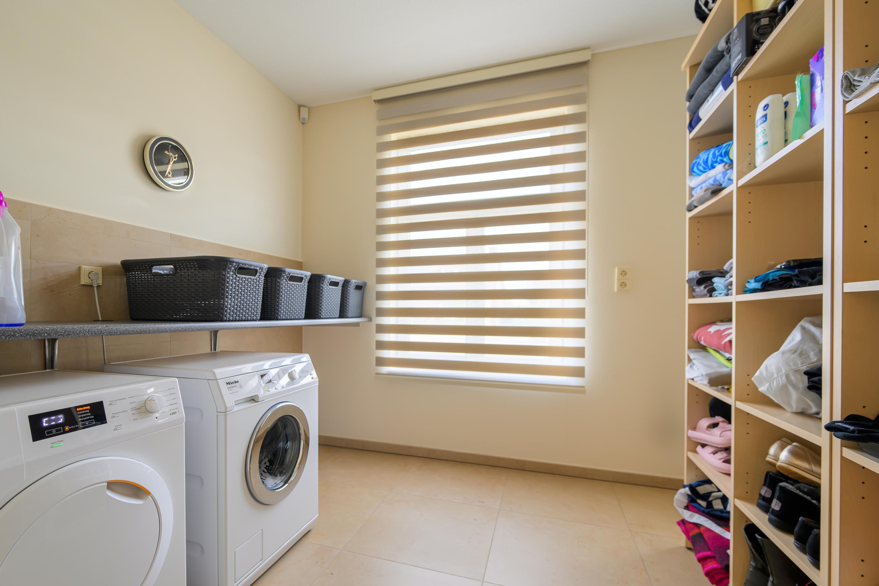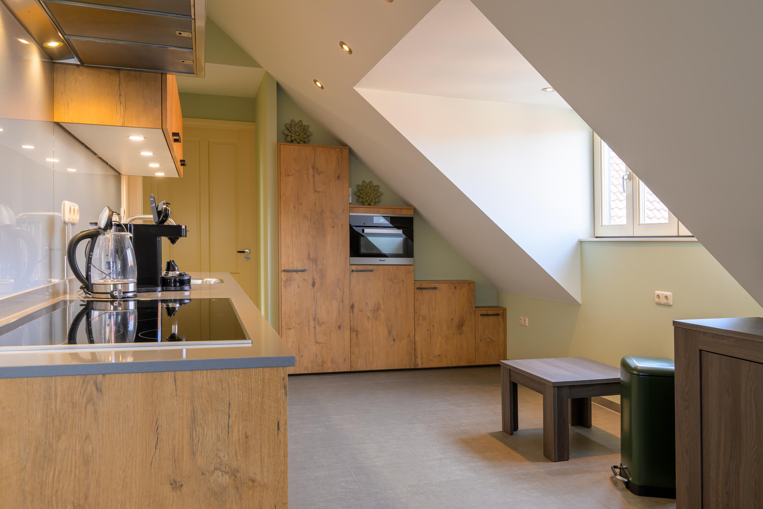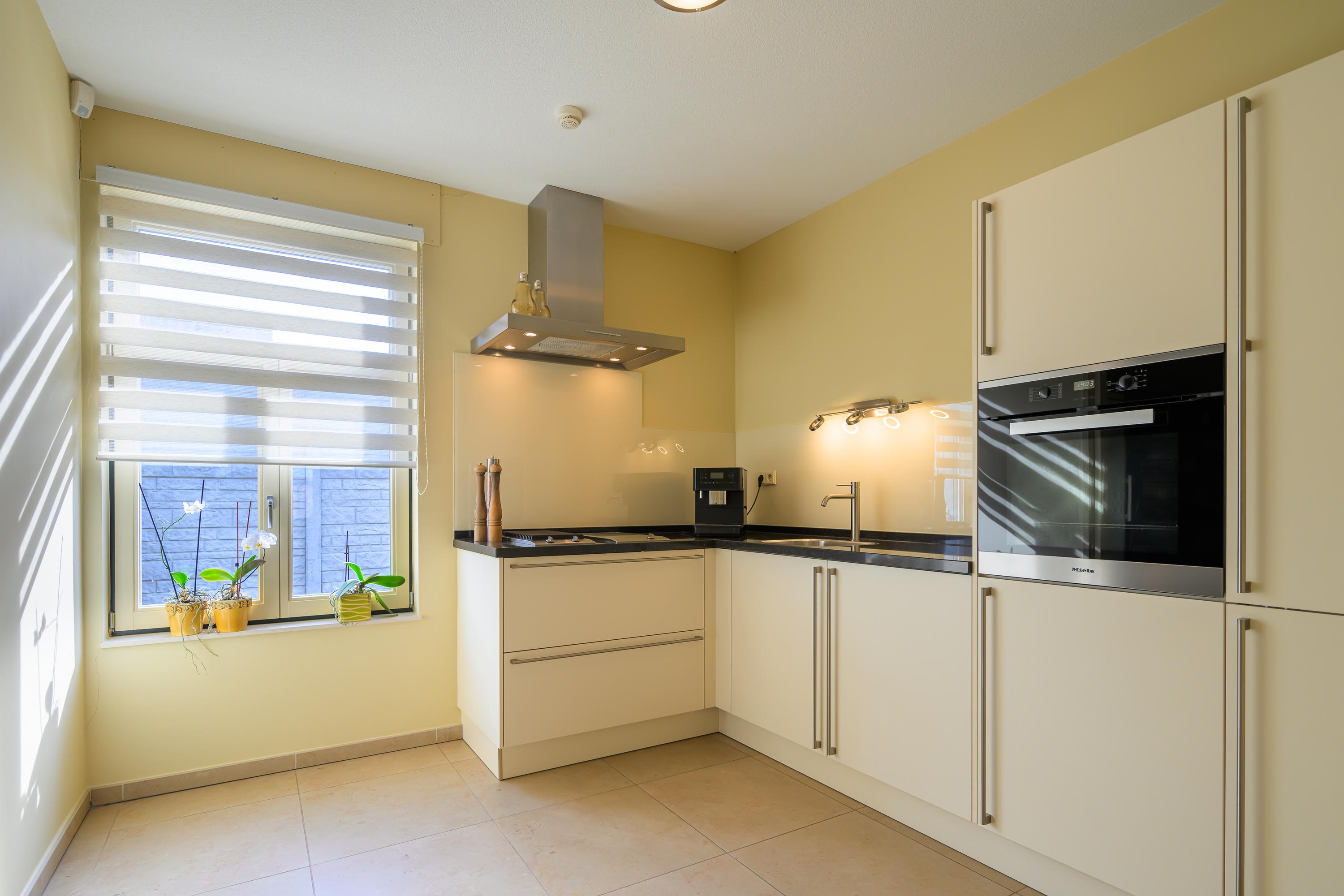 Dankzij de open verbinding tussen de keuken en zowel het eet- als het leefgedeelte is er genoeg ruimte om gezellig met het hele gezin samen te zijn. De moderne halfopen keuken is geplaatst in een praktische wandopstelling, aangevuld met een kookeiland, waardoor je over meer dan voldoende werk- en opbergruimte beschikt. Daarnaast is het geheel voorzien van alle wenselijke inbouwapparatuur, zoals: een inductiekookplaat, spoelbak, vaatwasser, stoomoven, combimagnetron en koelkast. De keuken heeft veel daglicht en biedt een mooi uitzicht op de tuin. Aangrenzend bevindt zich de bijkeuken, voorzien van een hoekopstelling met koelkast, combi-oven, ingebouwde grill en frituurpan, en een afzuigkap. Er is tevens een handige provisieruimte.